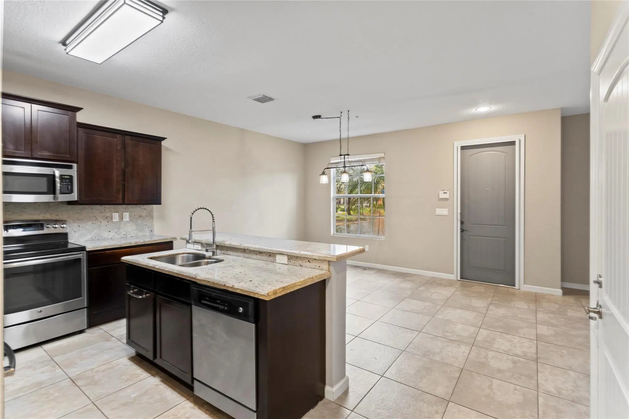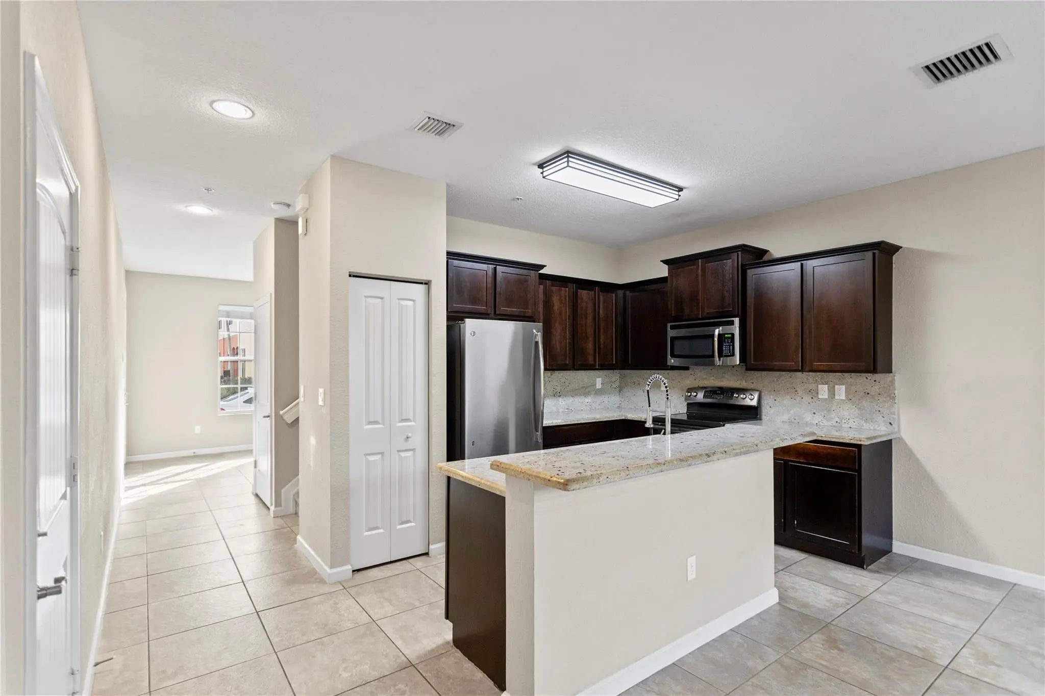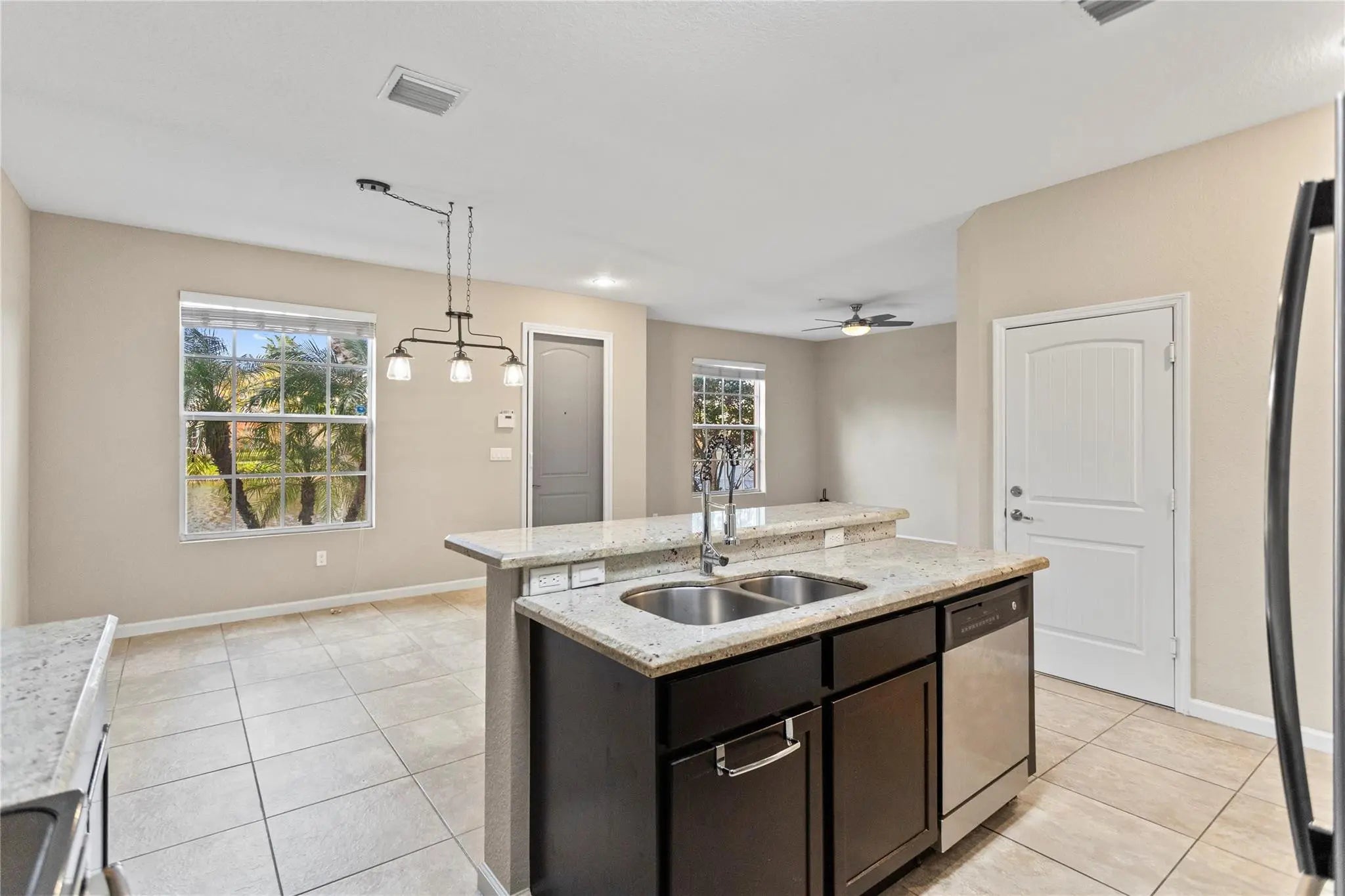 Welcome to this beautifully designed townhome in the desirable Orchid Grove community, featuring one of the largest floor plans available. This elegant residence offers 3 bedrooms, 2.5 bathrooms, a den, and a one-car garage with driveway. The open-concept includes a spacious living area with 9.4-foot ceilings on the first floor, creating a bright and inviting space ideal for entertaining. The oversized primary suite features a walk-in closet, while serene lake views provide a peaceful backdrop enjoyed from the home. Residents enjoy resort-style amenities including a lake, pool, fitness center, clubhouse, jogging/walking paths, and on-site security. Ideally located near the beach, shopping, dining, nightlife, and schools, this home offers comfort, convenience, and lifestyle.