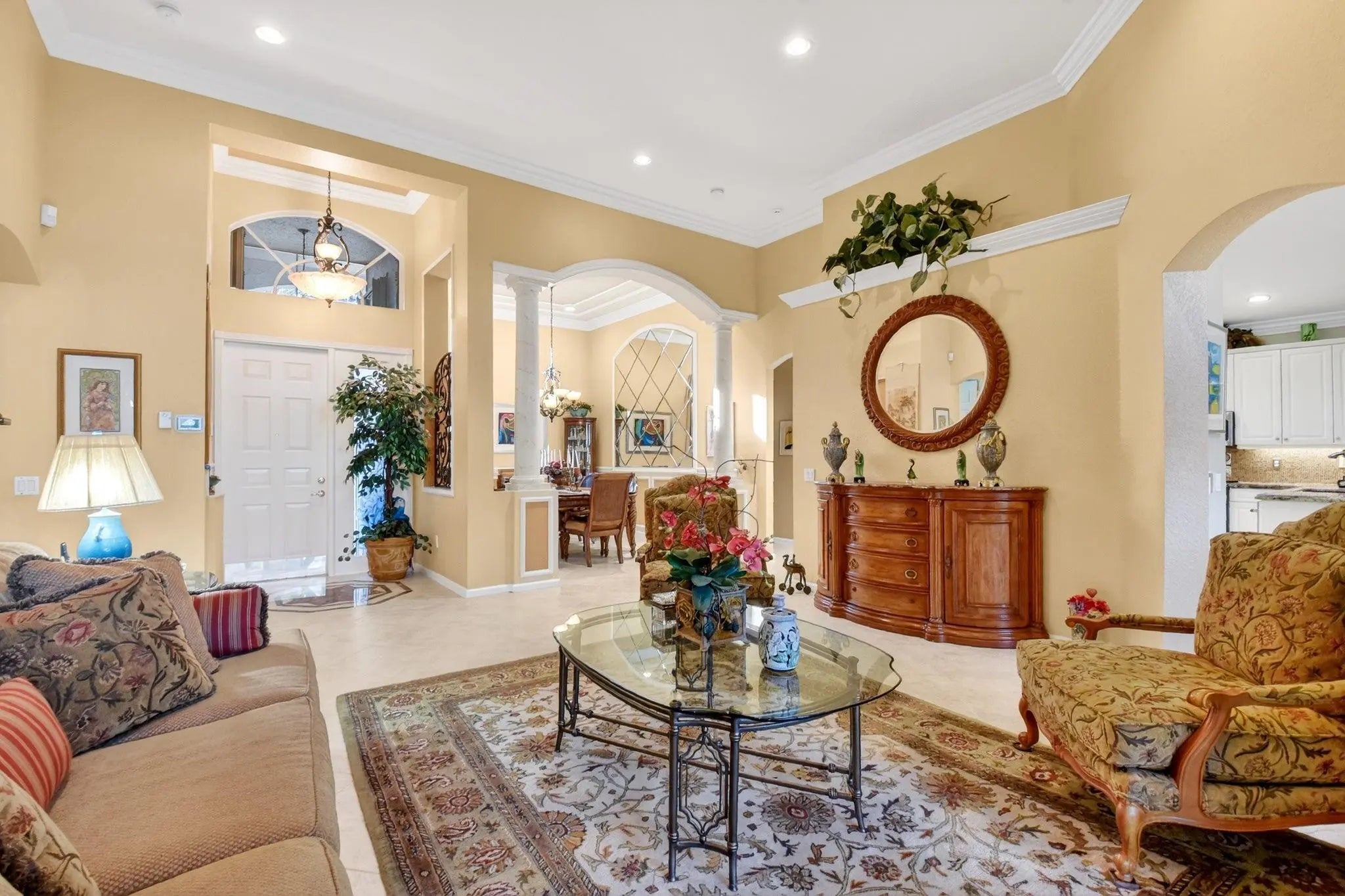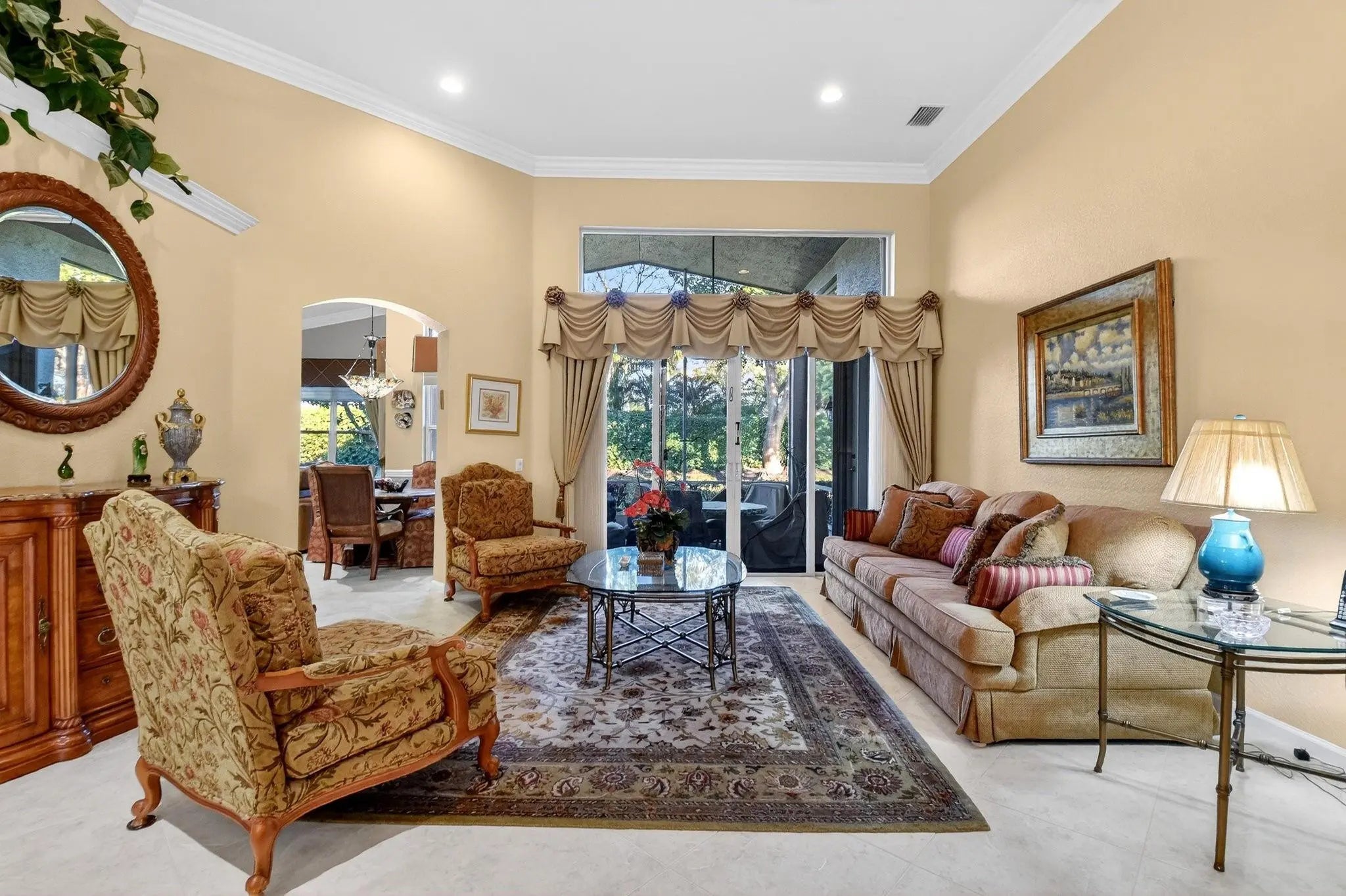 Rarely available Avila Model with 3 Bedrooms + den, and 2.5 baths on an extra spacious lot. Large kitchen featuring white cabinets, beautiful granite counters and an oversized sink. Stainless steel appliances with a BRAND NEW stove in 2026, Newer dishwasher, 2024, & wine refrigerator making cooking and entertaining a breeze! Formal dining room, and crown molding add elegance to the living areas. Designer Silhouette and Luminate window treatments enhance the décor. Enjoy peace of mind with 2 zone A/C and accordion hurricane shutters. Relax & embrace the Florida lifestyle on your screened lanai. Valencia Shores offers an active 55+ lifestyle, with something for everyone! You have found it all*Luxury*comfort*security & fun at this 55+ community!