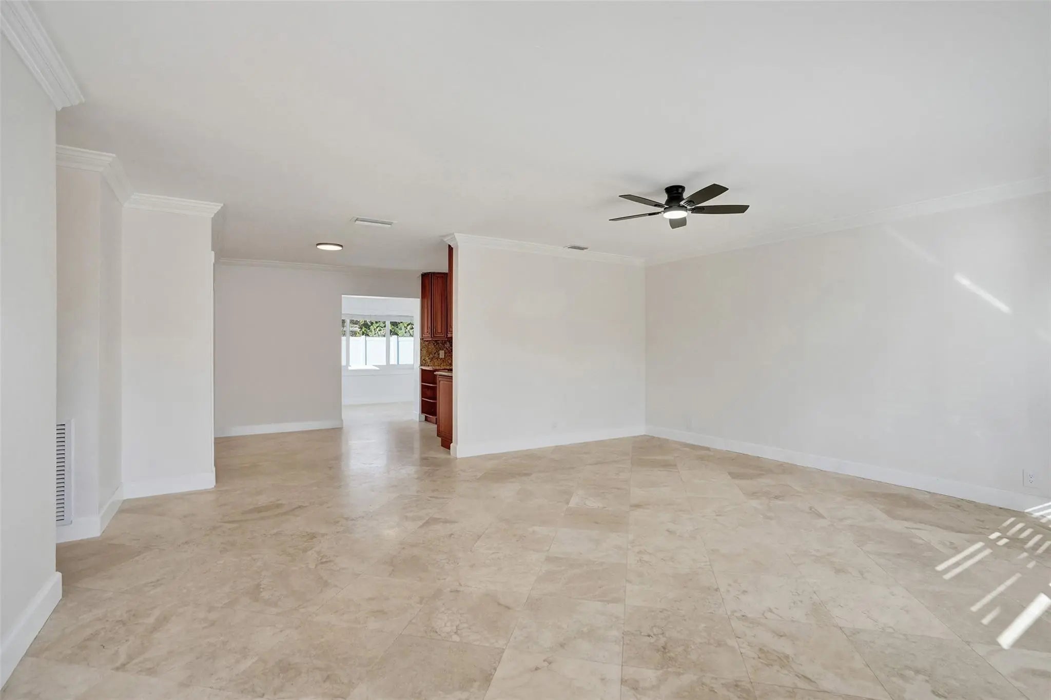Seller may contribute toward buyer’s interest rate buy-down, tucked away on a quiet dead-end street with no through traffic, this spacious, home offers privacy, comfort, & extensive updates. Features include Italian travertine tile & a converted living space under air. Major 2025 improvements include a new roof, interior and exterior electrical panels, outlets and fixtures, all new ductwork & insulation, washer, interior & exterior paint, new flooring in two bedrooms, new sod, & a fully fenced backyard w/ a new white vinyl fence, ideal for pets & ring system. Additional highlights include a 2024 A/C, impact windows and doors, a large private pool, 3 bedrooms with rare walk-in closets, & a custom circular paver driveway w/ parking for up to five cars. No HOA. Clean, open, and move-in ready.