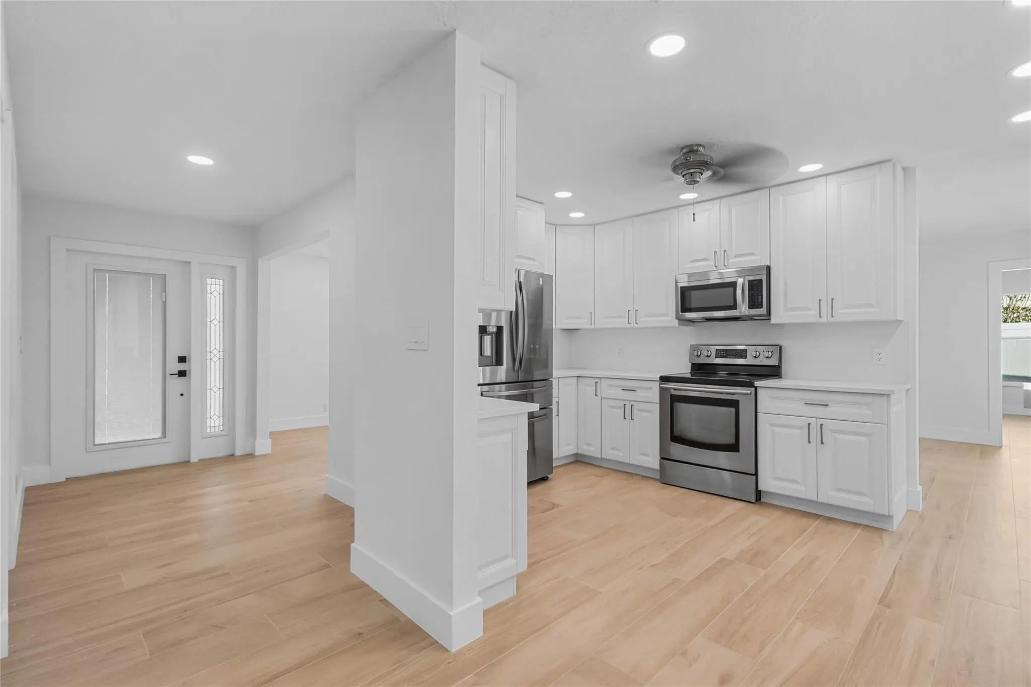 Welcome to this rare true 4-bedroom, 2-bathroom home located in the heart of Lighthouse Point. This residence offers a split floor plan, 2-car garage, office/bonus room, large backyard and an oversized laundry room with the potential to become a third bathroom. The kitchen and bathrooms are updated, and wood-grain porcelain tile runs throughout the home. Additional features include impact windows and doors, a 2024 roof, EV charging outlet, and a fireplace. Step outside to a travertine deck with a pool, perfect for entertaining. The side yard provides ample space for a boat or camper. The home is located within walking distance to Dan Witt Park and sits on one of Lighthouse Point’s most sought-after streets. The home offers comfort, functionality, and an exceptional location. Move-in ready!