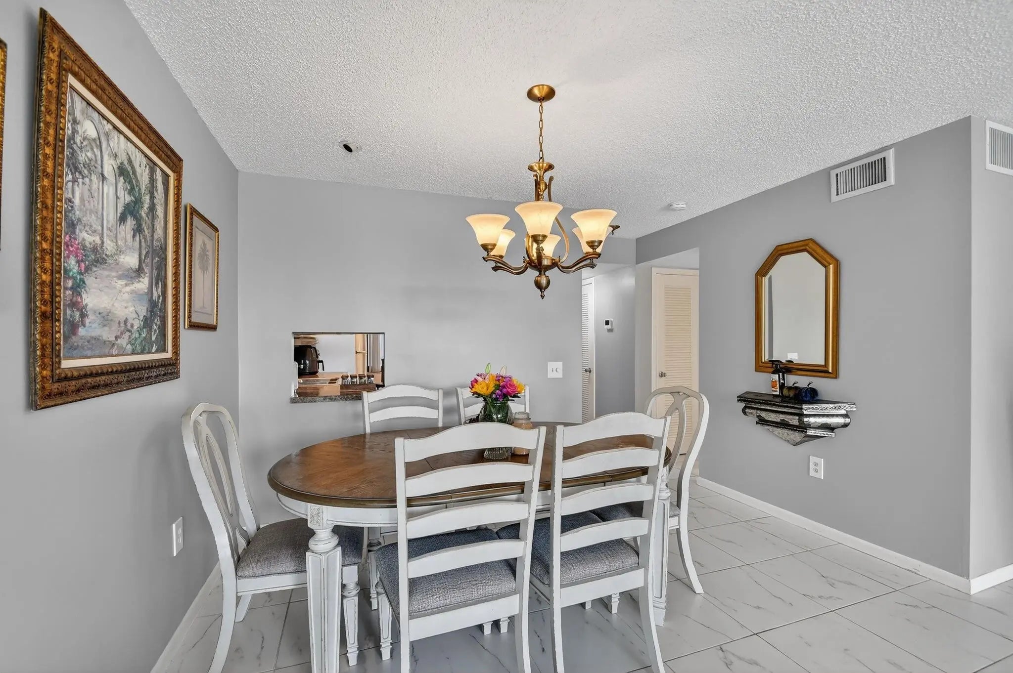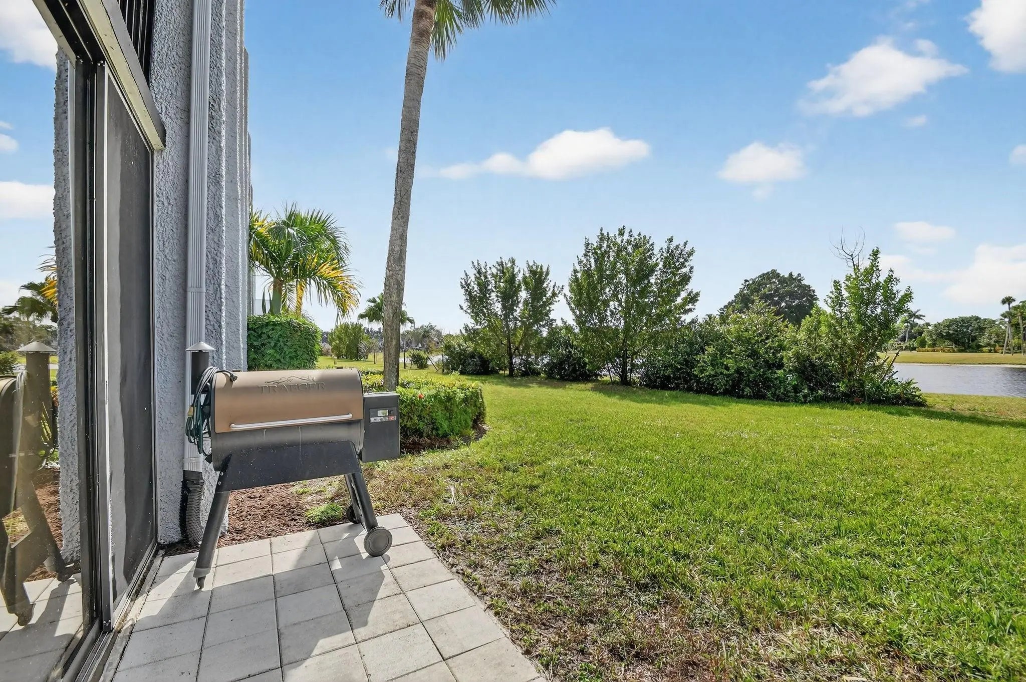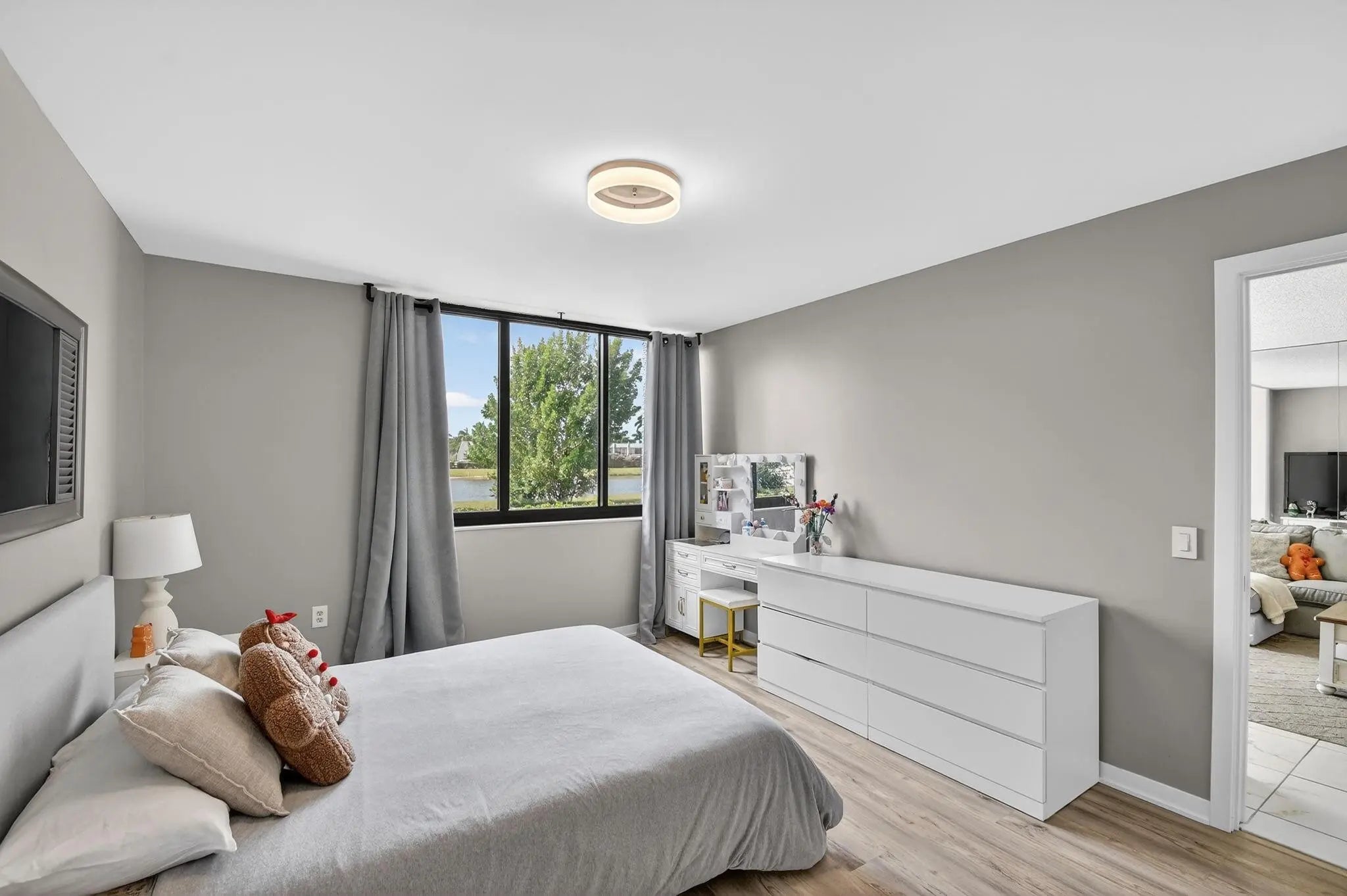 Best value in Deste Court! This first-floor residence features 2 bedrooms and 2 bathrooms and is move-in ready, while also offering an excellent opportunity for buyers looking to renovate and customize to their own taste. Enjoy serene lake views and beautiful sunsets from the back patio, just steps from the community pool. The condo is exceptionally clean, bright, and airy, with recessed lighting in kitchen, new flooring in the primary bedroom, fresh interior paint, and no carpet throughout. Additional highlights include a walk-in shower, white cabinetry eat-in kitchen, generous closet space, and room for a washer and dryer. Optional membership available at The Fountains Country Club. Gated community with 24/7 security. Must have 700+credit score. Only ESA allowed. Easy to show.