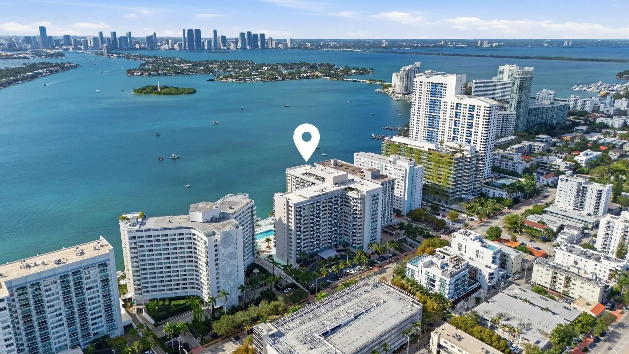 **LEAST EXPENSIVE STUDIO AT THE MIRADOR WITH BAY VIEWS** THE CONDO IS BEING SOLD ASSESSMENT FREE!! Amazing $31K reduction from original price! Fully remodeled studio with modern finishes & stunning views. Open kitchen features white quartz waterfall counters, gray cabinetry, & Samsung black stainless appliances. Engineered hardwood floors. Oversized balcony captures wide water views. Custom built-in bar & wine cooler adds style & function. Spa-inspired bath offers quartz vanity, charcoal cabinetry, & glass-enclosed shower. High-speed internet, cable, and a fitness center. Turnkey & move-in ready. Full-service building: bayfront pool, 24-hour front desk, & prime location near Lincoln Road, Whole Foods, & the beach. Great for full-time living, vacation use, or investment. Act fast!