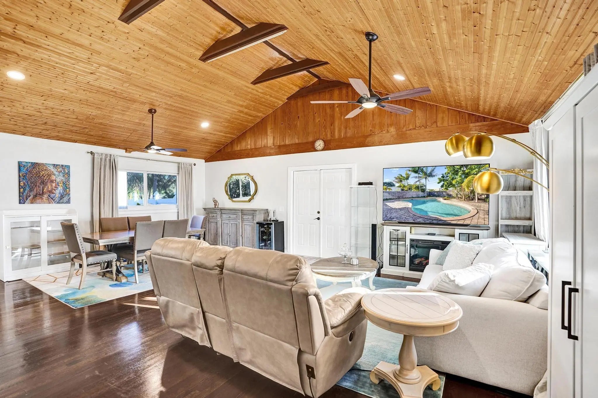 Move right into this EAST BOYNTON BEACH FURNISHED* 2 BD, 2 BA home located minutes from the ocean. Situated on a corner lot with an inground pool and plenty of room to grow! Charming open concept is great for entertaining. Perfect for a family, investor or AirBnb. NO HOA!Enjoy a remodeled Kitchen, new appliances, quartz countertops, Mother of Pearl backsplash, porcelain tile floor and LED lighting. Indulge in an updated master bathroom with shower/bathtub combo. Relax in a second bedroom with an ensuite bathroom and access to the beautifully landscaped fenced yard. Roof is 6 years old with hurricane impact windows & doors throughout (excluding one sliding door)Located 1.5 miles from bustling Boynton Town Square. This property will not last!*Television does not convey