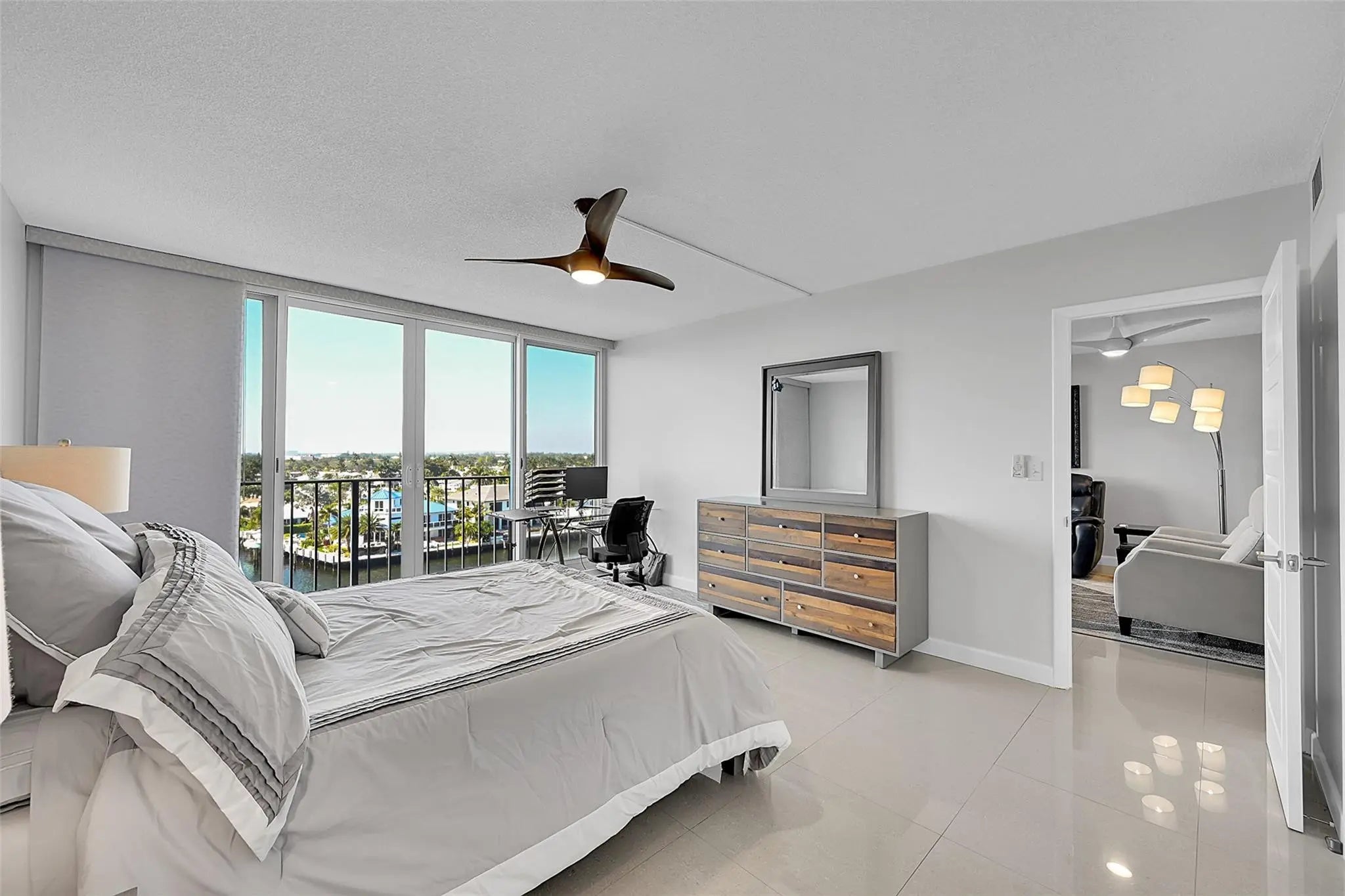 Experience coastal luxury in this fully updated Pompano Beach condo offering breathtaking Intracoastal views! This modern retreat showcases upscale finishes, elegant porcelain flooring, sleek shaker cabinetry, quartz countertops, LED Hi-hat lighting and premium SS appliances. Enjoy upgraded comforts including a stack washer/dryer, wine cooler, impact windows, and efficient 2016 A/C. Step onto your private balcony to watch boats glide by or embrace resort-style living with a heated pool on the Intracoastal, fitness center, sauna, billiards and social room with kitchen, BBQ area, and community dock. Plenty of shops, eateries, and scenic ocean views are just a short stroll away.