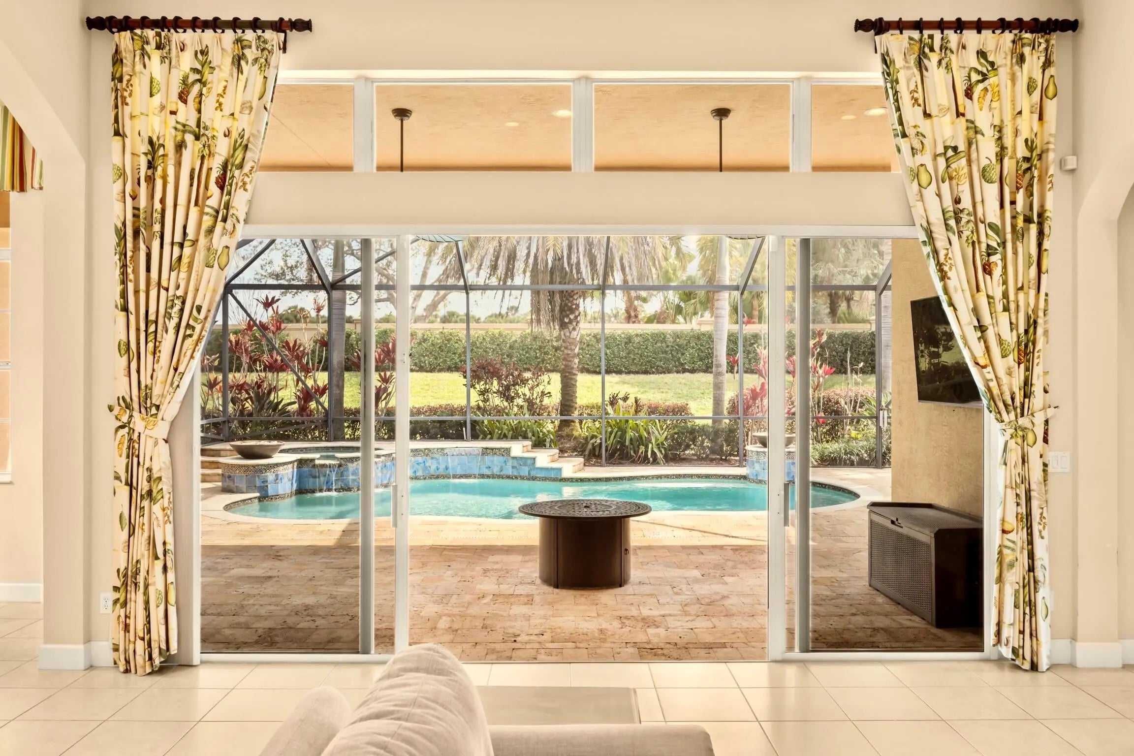 Gunite, Heated, Pool/Spa Combo, Screen Enclosure, Salt Water, Waterfall, Private