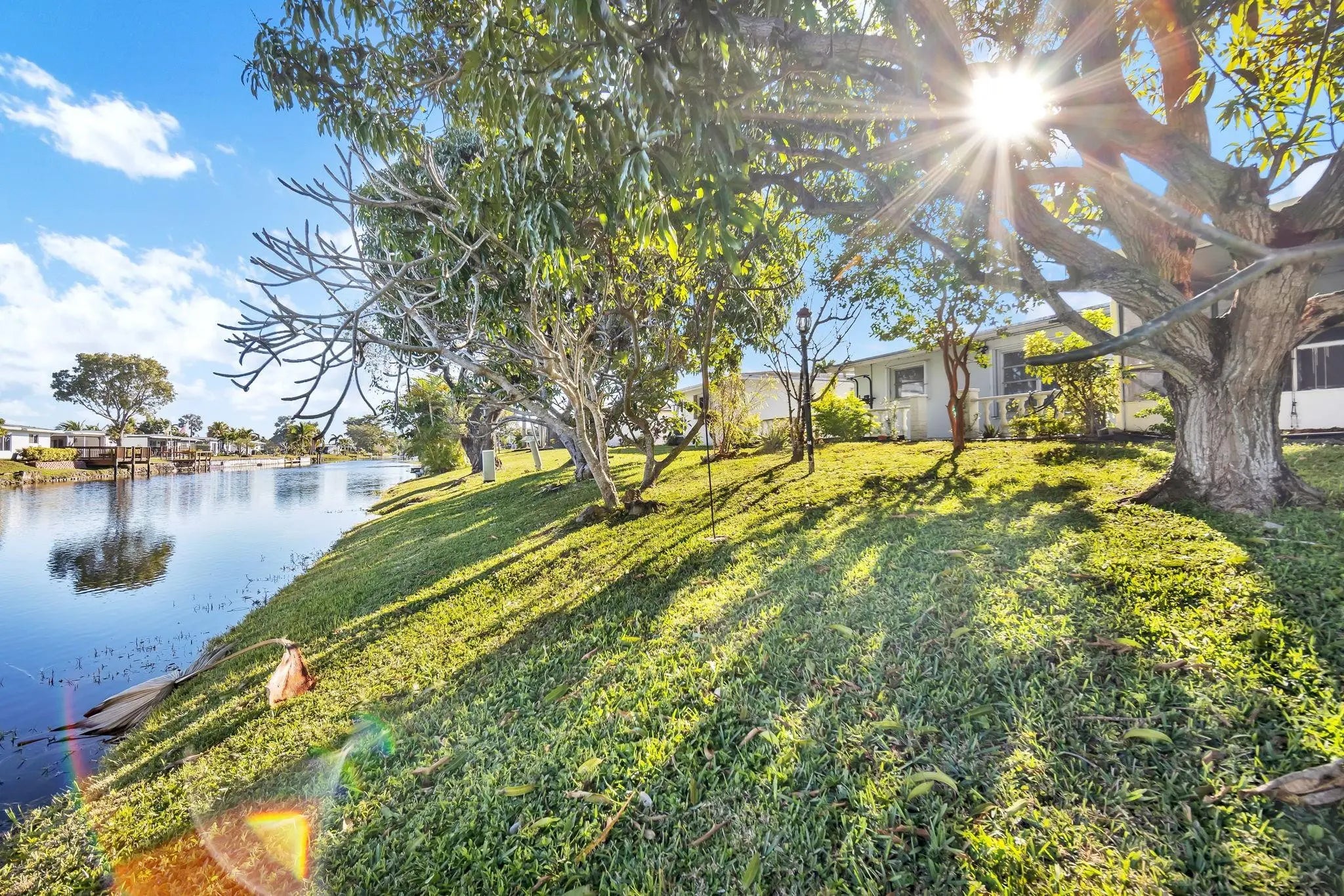 Waterfront serenity awaits in Paradise Gardens III. This impeccably maintained home sits on a wide lot directly on the Stranahan River (C-14 Canal), offering expansive water views. The backyard is a private tropical oasis with sweetsop, mango, cherry, and avocado trees. The interior boasts a bright, open floor plan with ceramic tile and a kitchen bathed in natural light from a central skylight. Recent upgrades include a newer 5-ton A/C, newer water heater, updated bathrooms, a newer washer/dryer, hurricane-rated garage door, and accordion shutters. Enjoy true Florida living with both a covered screened patio and an oversized open patio. This 55+ community offers a clubhouse, pool, and fitness center. Low HOA fees include lawn care and exterior painting. HOA requires 700+ credit score.
