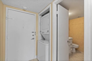 Beachfront residence located on the 16th-floor. Ocean views located just steps from the beach in a luxury beachfront building, this updated 1-bedroom, 1.5-bath unit offers top-floor living with higher ceilings and expansive views. Features include hurricane-impact windows along with accordion shutters for added protection. The interior offers ceramic tile flooring throughout, an updated bathroom, and a kitchen finished with quartz countertops. The unit also features an in-unit washer and dryer for added convenience. Building amenities include a swimming pool, fitness center, and shuffleboard courts. Secure beachfront living in a well-maintained and desirable community.