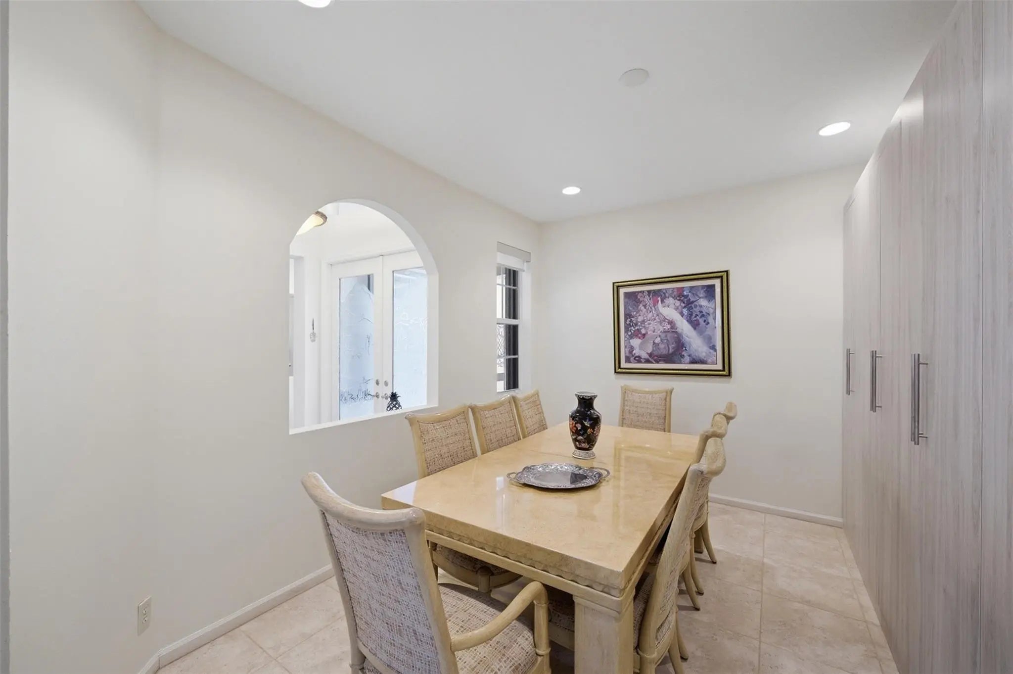Welcome home to this beautifully maintained 3-bedroom, 2-bath single-family residence located in the prestigious gated 55+ community of Bellagio. Tucked away at the end of a quiet cul-de-sac, this home offers exceptional privacy with a desirable private lot and tranquil water views to the left of the property. The very open floor plan creates a bright, airy feel and is perfect for both everyday living and entertaining. Recent improvements include custom closets throughout, wallpaper removal with fresh interior paint, and refreshed kitchen cabinetry with newly redone cabinet faces. Enjoy peaceful surroundings, thoughtful updates, and the relaxed, resort-style lifestyle Bellagio is known for, all in a prime, low-traffic location. Ideal for year-round living or seasonal enjoyment. A must see.