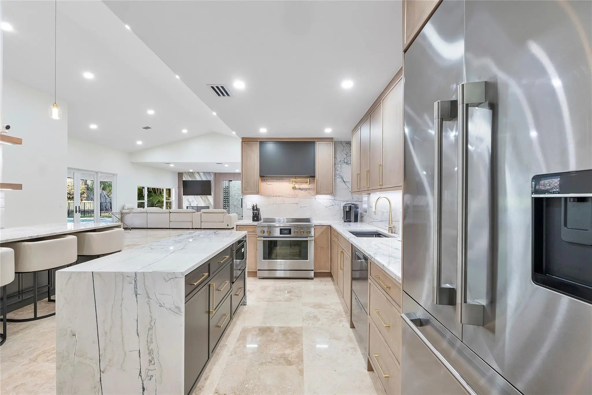Stunning home located in the highly sought-after Boca Woods community. Perfectly positioned on the golf course, this pool home offers exceptional indoor-outdoor living with peaceful views and privacy.The home features a brand-new open chef’s kitchen with a spacious island and peninsula, elegant granite countertops, custom wood cabinetry, and brand-new Fisher & Paykel appliances.Designed with a desirable split floor plan, the layout provides privacy and functionality. Additional highlights include a wine room, dedicated laundry room, dog wash station, and a newly installed A/C unit for comfort and efficiency.Step outside to your private pool overlooking the golf course—an ideal setting for relaxing or hosting guests.This is Boca Woods living at its finest.