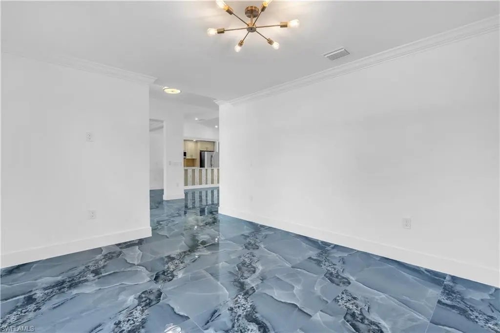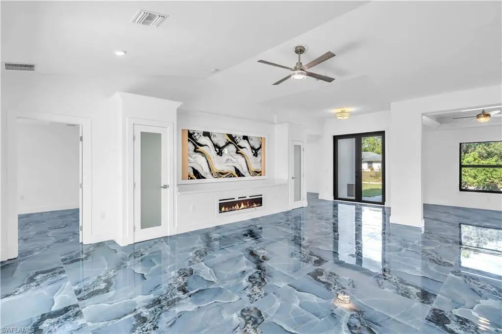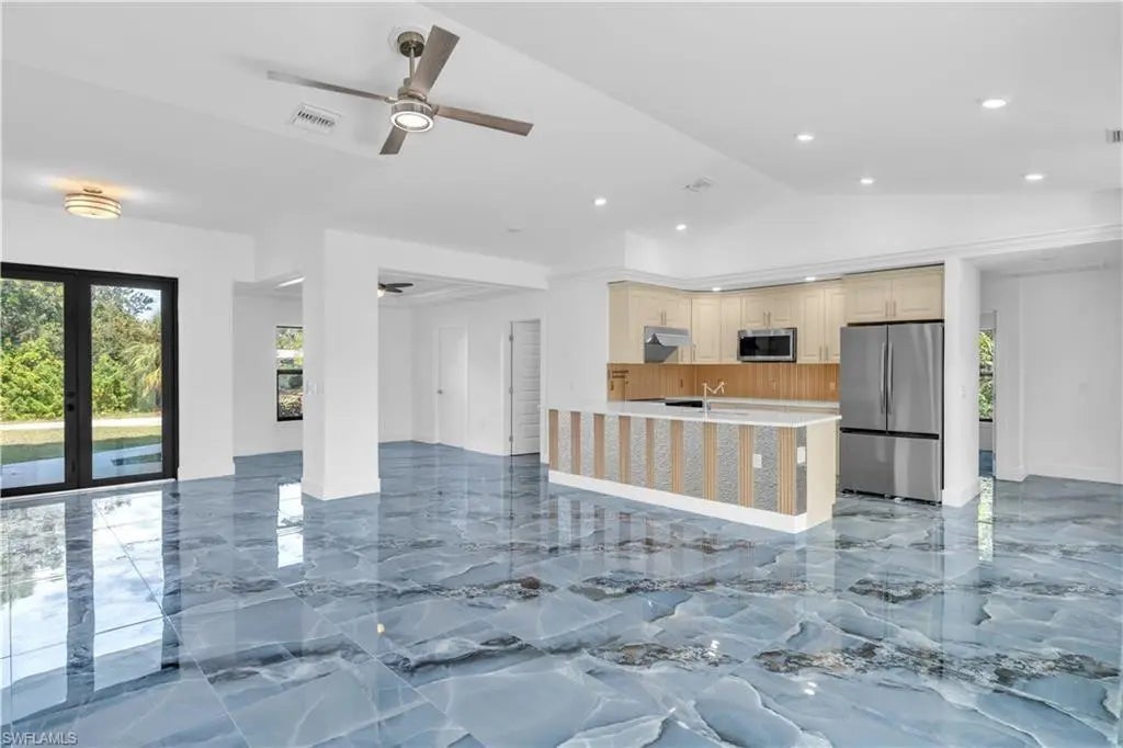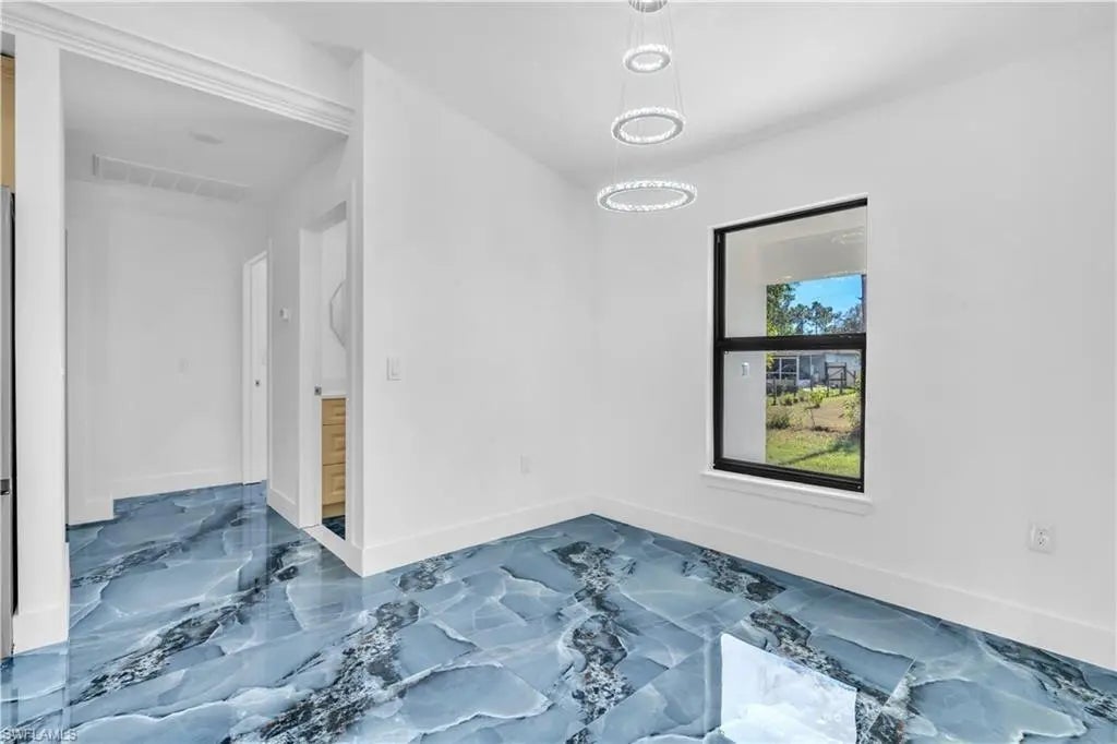 Brand-new construction with modern finishes and a smart, functional layout. This 4-bedroom + den, 2-bath home features an open-concept design with high-gloss tile flooring, designer lighting, and a clean contemporary feel. The kitchen offers custom cabinetry, quartz countertops, stainless steel appliances, and a bold backsplash, flowing into the main living area—ideal for entertaining. The primary suite includes a spa-style bath with a walk-in shower. Covered lanai, spacious yard, 2-car garage, impact windows. Adjacent lot also available to create a half-acre homesite. Move-in ready.