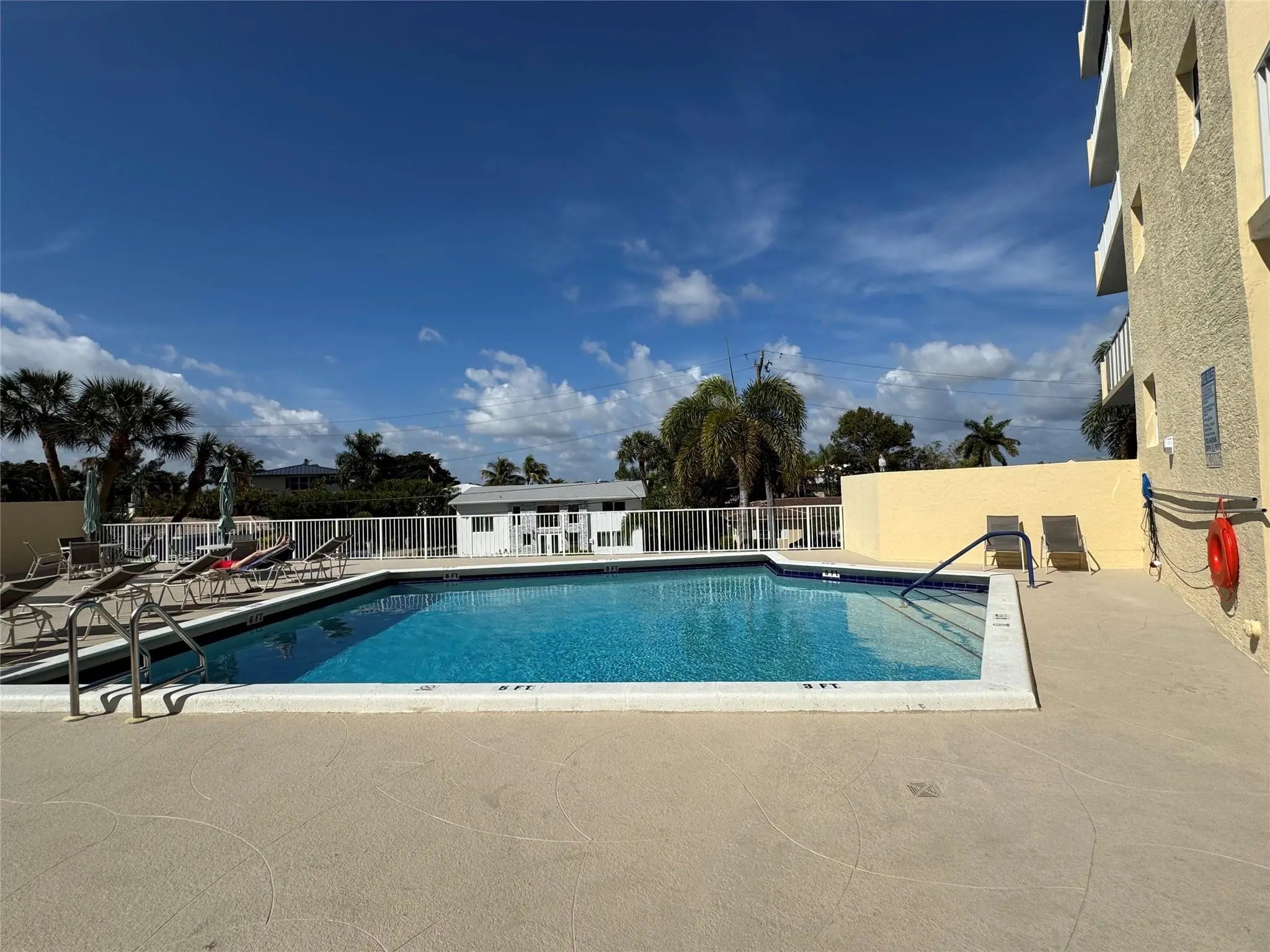 spacious one bedroom 1.5 bath penthouse condo unit. open view of the ocean and city. steps from the ocean. secure entrance to the bldg. assigned parking. heated pool. BBQ, laundry facility on each floor. shows well. NO rental 1st two years. min 90 days.. no pets. min 700 credit score required. shops behind the bldg. or take a short drive to Atlantic and A1A or Commercial and A1A offering you, lots of restaurants and entertainment, plus pier.. concrete restoration has been completed.