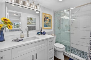NEW PRICE. Enjoy unobstructed wide Intracoastal views and a daily parade of boats from the fully renovated 1-bedroom, 1-bath residence in the heart of Pompano Beach. Open layout with abundant natural light and water views from both living area and bedroom. Designer kitchen with quartz countertops, stainless steel appliances, and 2 large pantries. Waterproof luxury vinyl throughout. Italian marble shower with frameless glass. Ample closets plus assigned storage. Laundry just outside unit. Bicycle and kayak storage. Building passed 40/50-year inspections. No special assessments and strong reserves. Sundeck, club room, and private beach access.