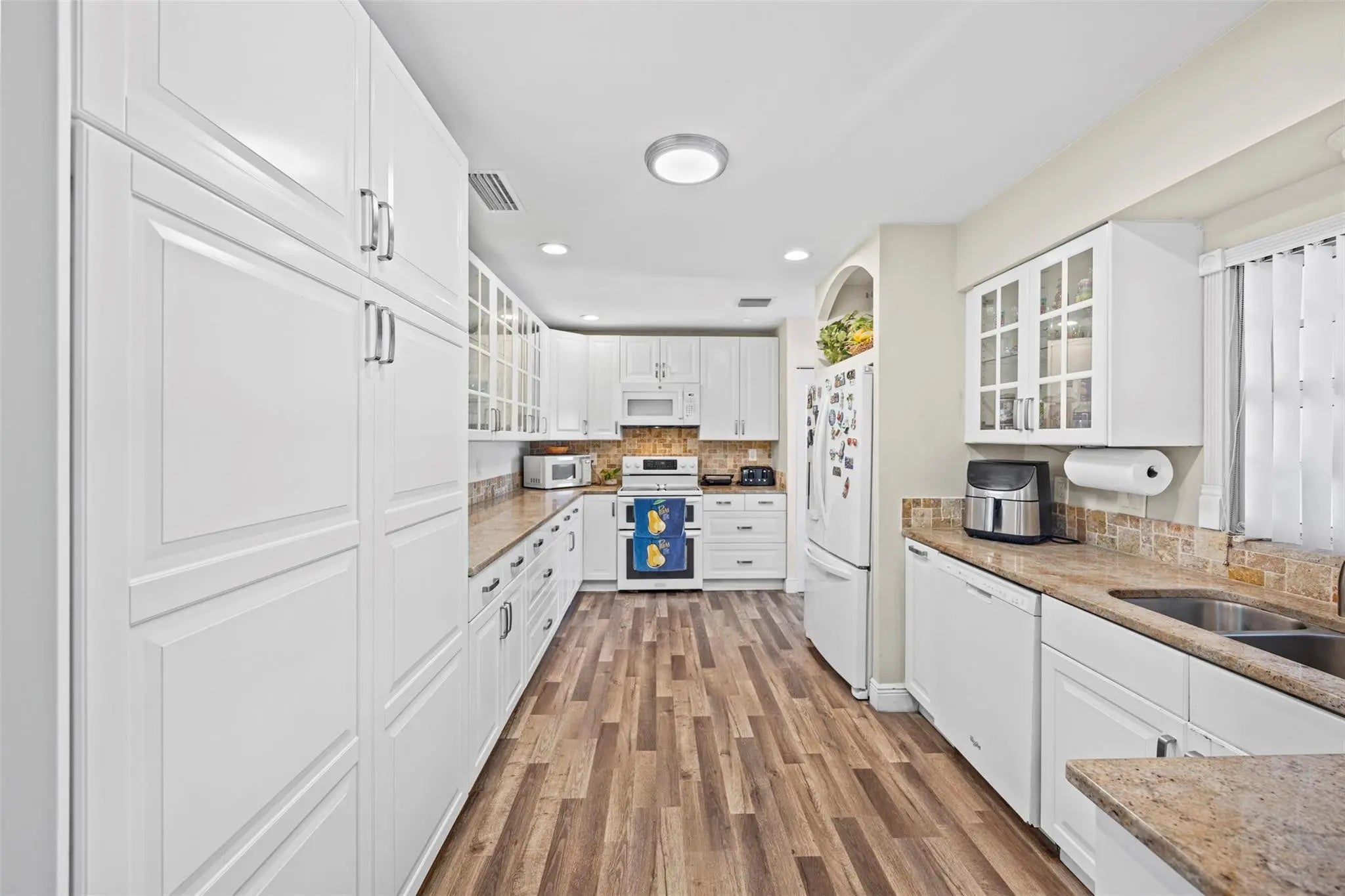 This beautiful 4-bedroom, 3-bathroom single-family house features a private pool, plenty of parking space, and no restrictions—perfect for a boat or other recreational vehicles. Located in a quiet family neighborhood, the home is close to supermarkets, restaurants, gas stations, and I-95.The interior includes wood-look vinyl flooring in living areas, tile in bathrooms, and a kitchen with white cabinetry, glass inserts, and granite countertops. The property is zoned multifamily and includes an attached mother-in-law suite with 1 bedroom, 1 bathroom, and a separate exterior entrance. Recent updates include fresh interior and exterior paint, new sod, a new A/C unit, a new water heater, and a new flat roof.