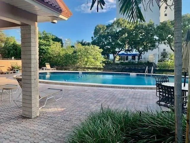 One bedroom, one bath located in Manor Grove. Screened in patio facing canal. Sunny south side. First floor with newer laminate flooring. Laundry room a few doors down the hall. Pool and clubhouse the next building over. Water, sewer and trash included. Association requires a 675 score. Complex located close to 'The Drive', beaches and highways. Association allows one pet under 20lbs with a pet deposit.