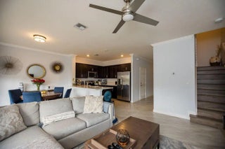 Discover the perfect blend of style, comfort, and convenience in this like-new, move-in ready townhome. Meticulously maintained and thoughtfully designed, this home welcomes you with a bright, open layout that feels spacious and inviting. The sun-filled living area flows effortlessly into a generous eat-in kitchen with stainless steel appliances and endless wraparound quartz counters. Step outside to your private, fenced patio with custom pavers and tranquil lake views. Gorgeous wood-style floors upstairs lead to oversized bedroom suites, each with its own bath and walk-in custom closets. The spacious garage offers ample storage and a Tesla charging station. Set in a walkable, pet-friendly community with a sparkling pool and tot lot, this home delivers the resort-style living you deserve.