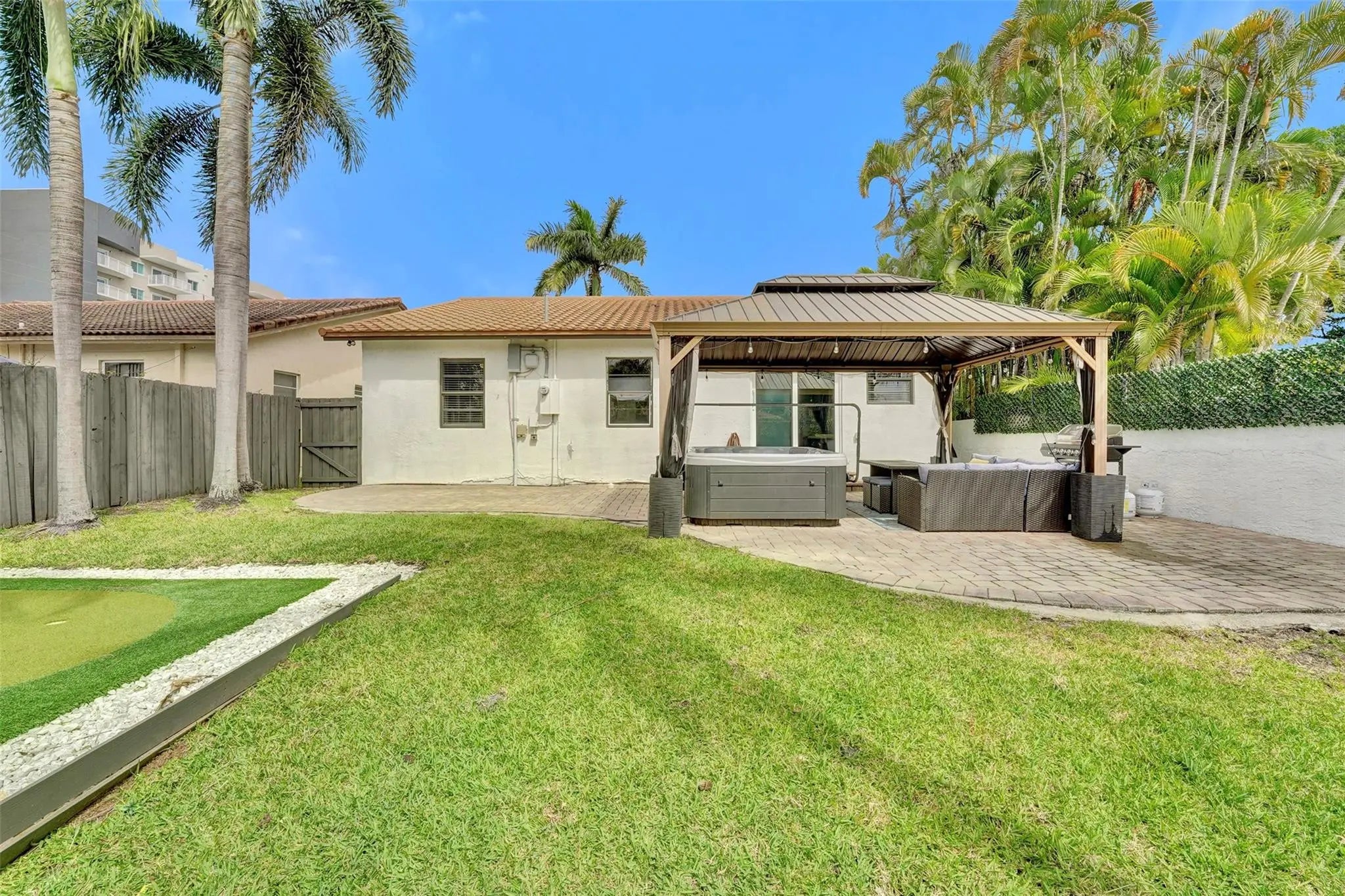 This house is fabulous! With 3 bedrooms, 2 baths, and a 1 car garage, you are going to love the beautifully renovated interior with a bright and open floor plan. The stunning kitchen and bathrooms, waterproof vinyl flooring, and 2022 metal roof add both style and long term value! Enjoy the Florida sunshine with a private hot tub and fun mini golf setup in the backyard. Perfectly located in the heart of East Dania Beach, you are close to Jaxson’s, My Mama’s Cafe, Dania Casino, Dania Pointe, as well as plenty of other restaurants and grocery shopping. Not to mention being only 2 miles to both the beach and FLL airport! This property is perfect for a primary residence, second home, or an investor seeking short or long term rental opportunities.