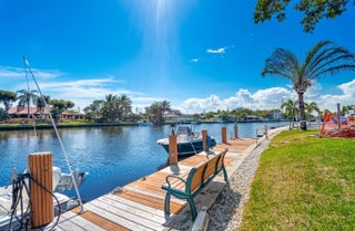 Beautiful 2/2 corner unit offers water views from every room & screened in balcony. Located on canal with fixed bridges and ocean access. Open concept design features include ample kitchen cabinets, countertop space and snack bar. Updated laminate flooring and bedroom carpeting, fixtures and plantation shutters. Neutral palette throughout. A/C replaced 2021, Water Heater 2021 washer/dryer 2022. Small pets allowed. Assessments have been paid by seller. Association requires minimum credit score of 700.