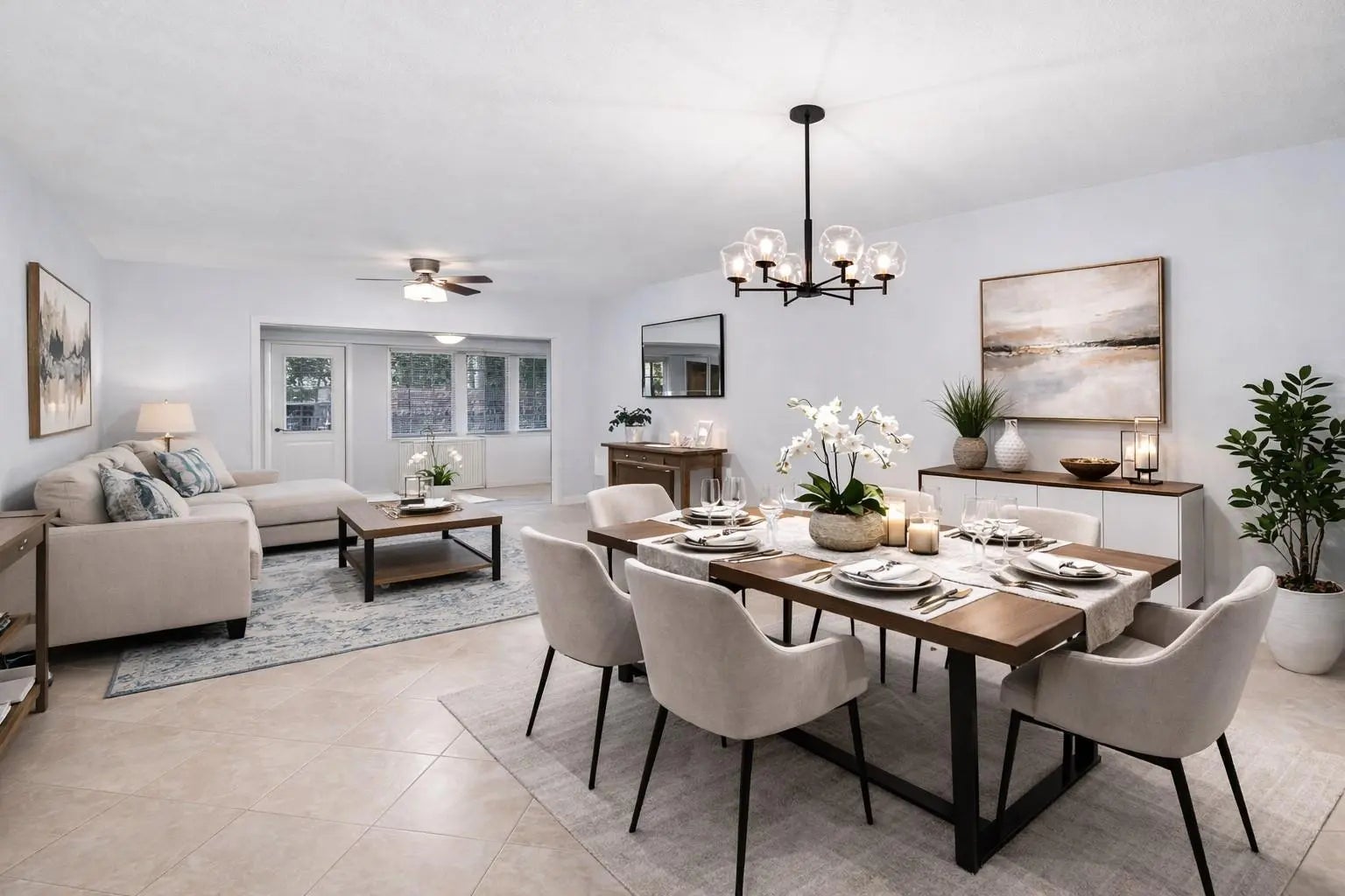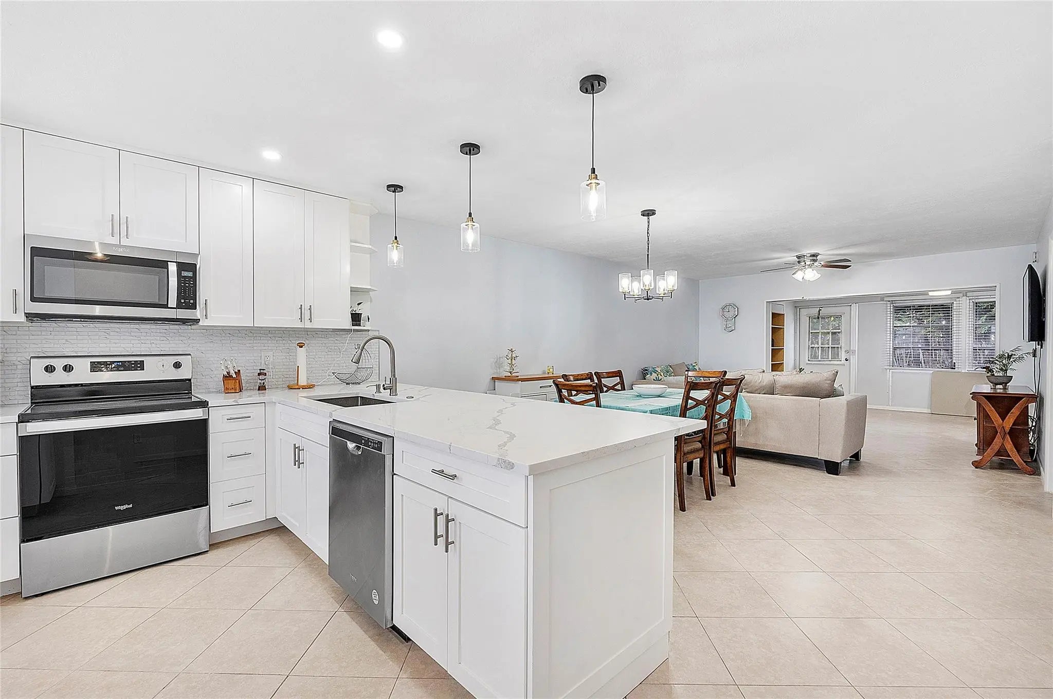Welcome to your dream home! Fully remodeled 2/2 villa, in the desired 55+ community of Covered Bridge. Upgrades include large Kitchen island with quartz countertops, new stainless steel appliances, soft closing cabinets, recess lighting and new light fixtures. New front and back doors, fully repainted and new electrical panel. Remodeled bathrooms with new vanities, quartz countertops, accent backsplash, luxury vinyl floors. Washer and dryer in the unit. AC 2012 and Water Heater 2010. Additional 168 sq. ft with enclosed patio. Enjoy a tranquil back yard with shady trees. The Clubhouse includes two heated pools, social space for events, bocce ball, shuffleboard, tennis, pickleball courts, and a serene pond with a fountain. Cable and water included in the HOA. Furniture negotiable.