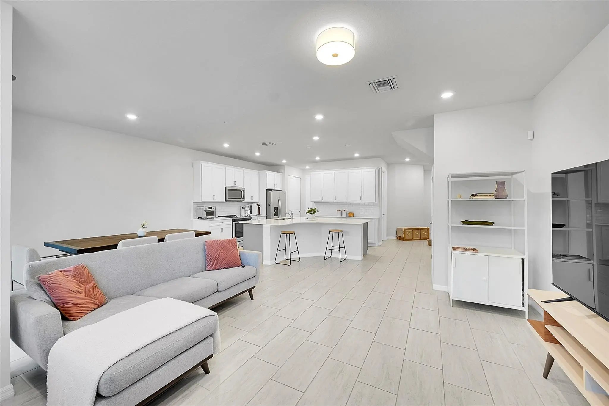 Beautiful like new 2021 Townhome in the All Ages/Gated community of The Fields. Freshly painted throughout, Shaker wood cabinets, large pantries, Quartz countertops, with subway tile backsplash that compliments the plank tile flooring. 2nd floor has split floor plan, dedicated laundry room, and newer carpet and upgraded padding in all the good-sized bedrooms. Big Master suite has a large walk-in closet and double Quartz vanity. Impact windows & doors. Family oriented community with two resort style community pools, workout facilities, Tennis & Pickleball, basketball, child playground. Great Schools within a half-mile, plenty of shopping, easy access to turnpike. Pets OK. Available May 16th