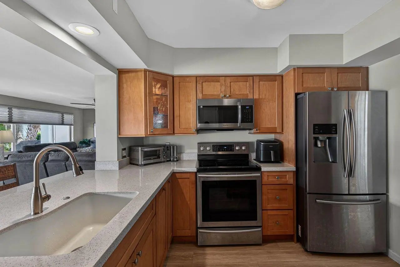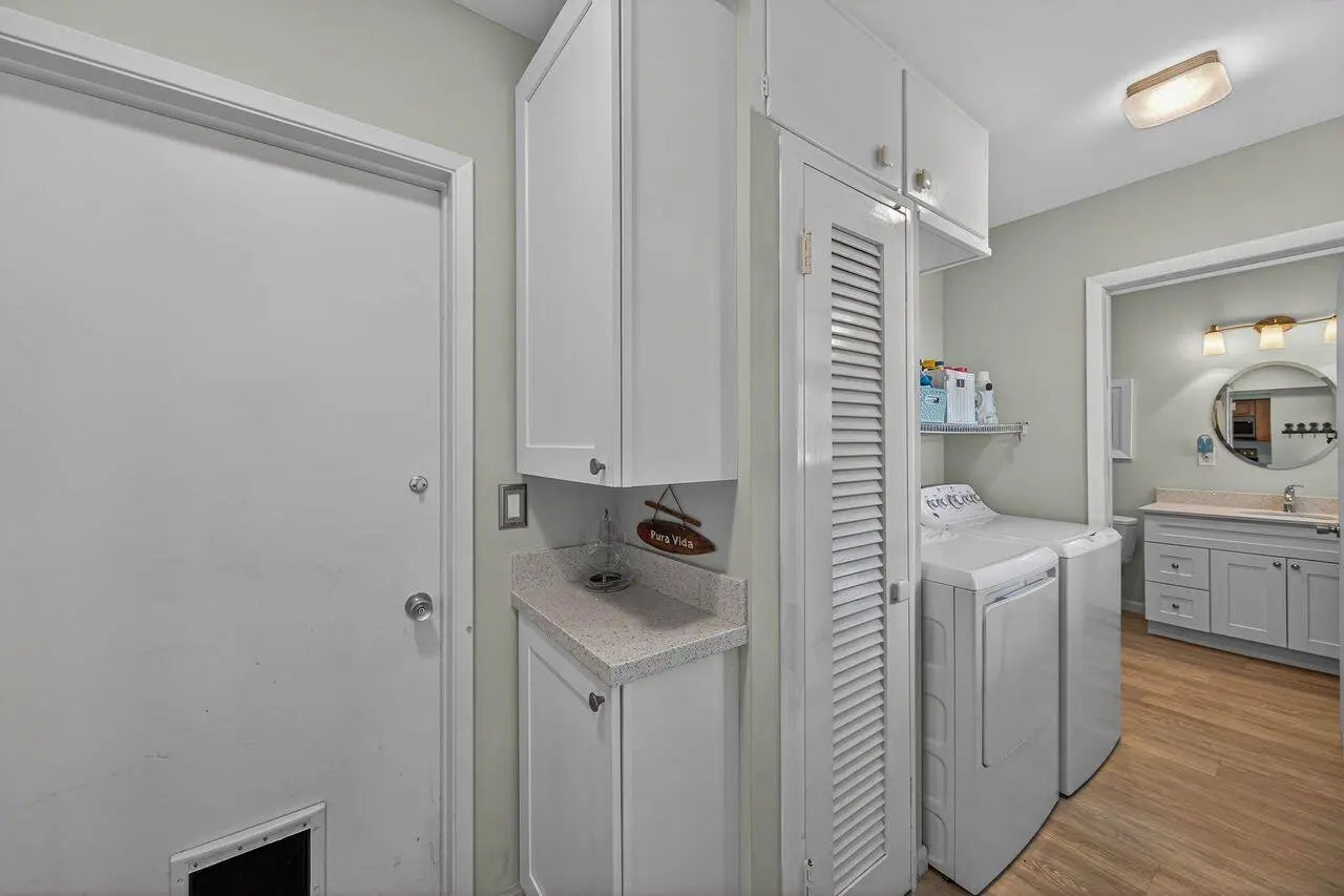 BEACH LOVERS and BOATERS, this private, gated Palm Yacht & Beach Club home is your "Hang Loose" retreat! A 3-bed, 3-bath corner lot, coastal community gem, featuring a 2015-updated kitchen, newer underground plumbing, and an expanded paver patio with peekaboo Intracoastal views. Enjoy 100’ of deeded beach, a beachfront clubhouse & heated pool, and a 16 slip private marina to dock your 50' boat (waitlisted). With newer AC, all impact windows/doors, and attentive Palm Club staff, your cares will melt away. This 55+ coastal paradise spans 27 acres from the Atlantic Ocean to the Intracoastal, with maintenance covering insurance, grounds, pool, clubhouse, marina, home painting, roof maintenance and more. Modified into the garage is the 3rd bedroom. Plans avail. to return to 2 car garage.