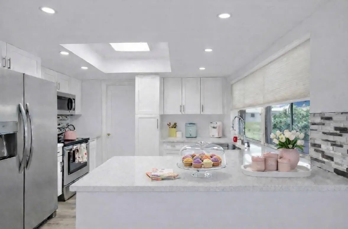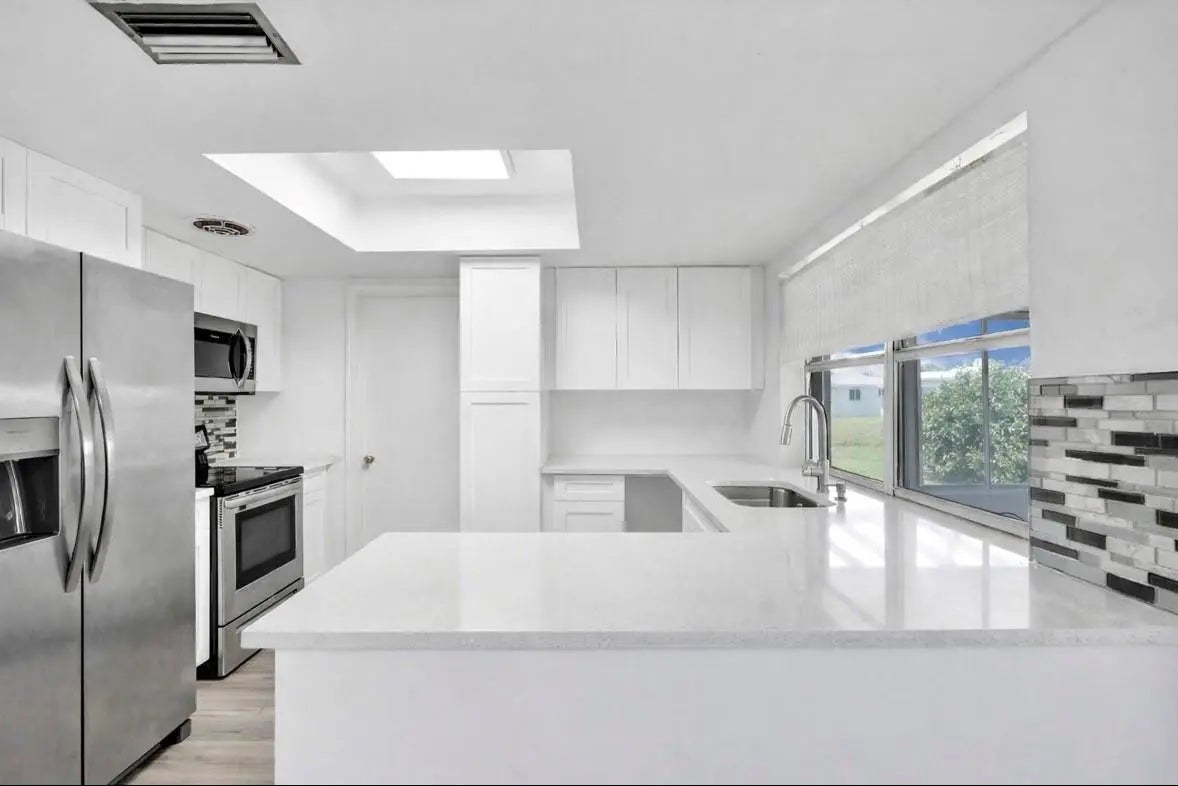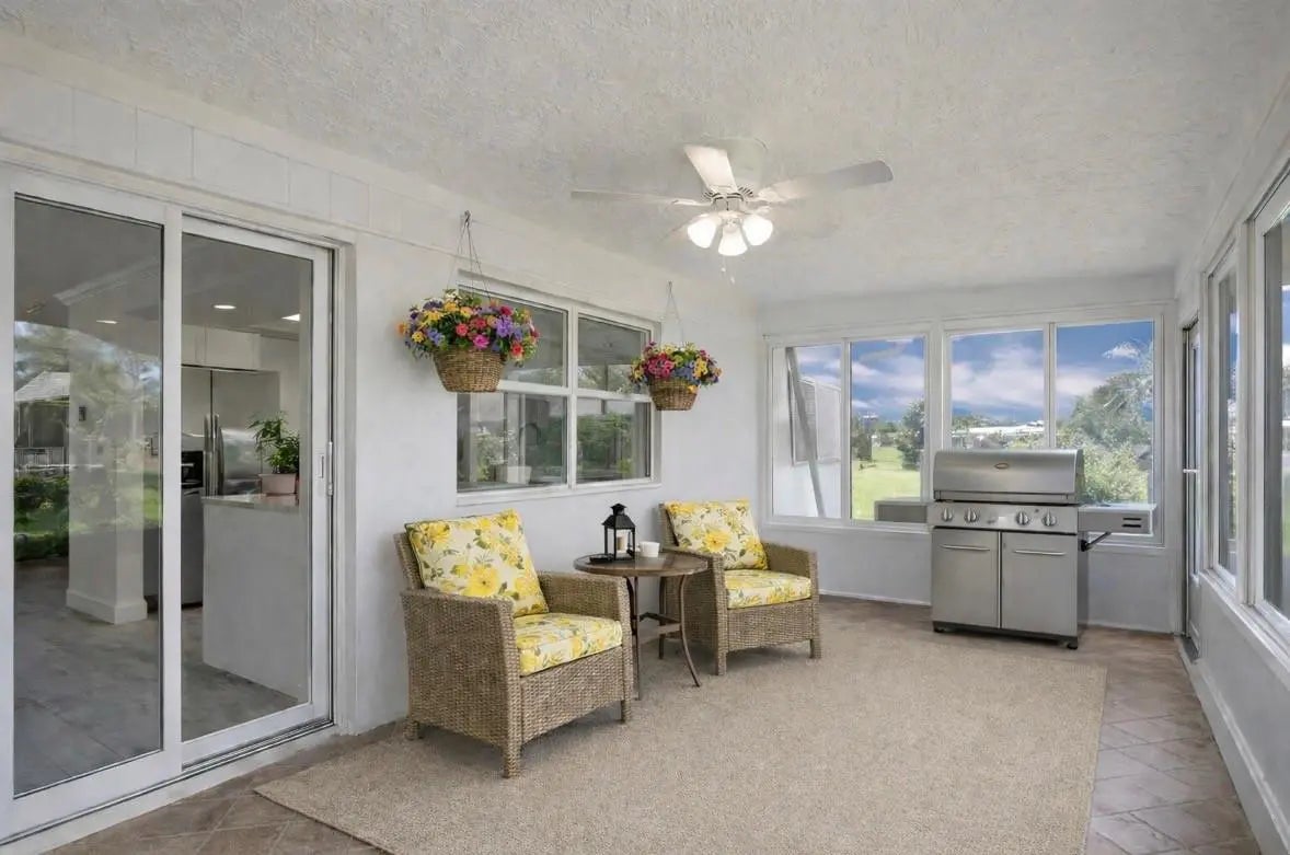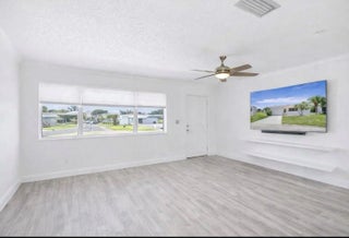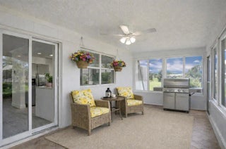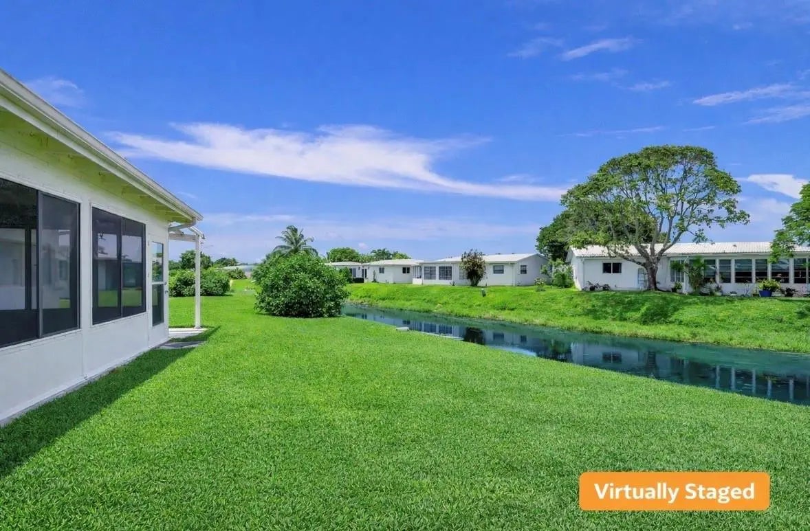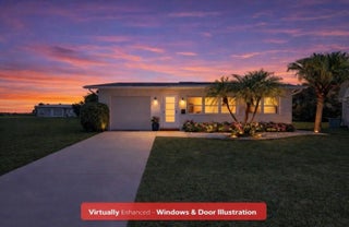 MOVE-IN-READY, WATERFRONT HOME priced at just $299K! Located on a LARGE, PIE-SHAPED, WATERFRONT LOT, this well-maintained 2BR home features NEWER WATERPROOF WOOD FLOORS, freshly painted interior, and UPDATED BATHROOM. The MODERN KITCHEN offers white shaker cabinets, quartz countertops, and matching stainless steel appliances. Enjoy PEACEFUL WATER VIEWS from the kitchen, living area, primary bedroom, and ENCLOSED FLORIDA ROOM with WINDOWS. Energy-efficient solar panels keep electric bills under $100/month. NEW 2023 WATER HEATER & NEW 2020 A/C. Located in an active 55+ community with low HOA covering lawn care, exterior painting every few years, and amenities. WATERFRONT LIVING FOR UNDER $300K!