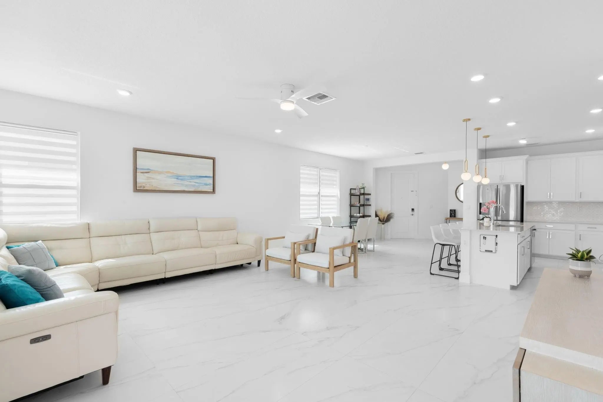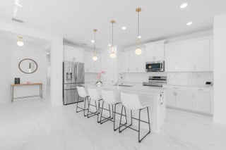 Spectacular Hidden Gem in gated Veleiros at Crystal Lake! Stunning 4 Bedroom, 3 Full Bath home with triple split layout and 2 Primary Suites. Upstairs primary suite is ideal for multi generational living, guests or office. Open concept floor plan with 24x48 porcelain tile on the 1st floor and LV on the 2nd floor, no carpet! Chefs kitchen dazzles w/ quartz counters and SS appliances, perfect for entertaining. Constructed in 2021, the CISNE model offers elegant architecture, impact windows, doors and garage doors. Enjoy the fully fenced yard with travertine patio under shaded pergola with dual fans, artificial turf, water and electric hookups for a future summer kitchen. Paver driveway for 3 vehicles (incl trucks). Resort style perks: clubhouse, beach entry pool, fitness center, playground.