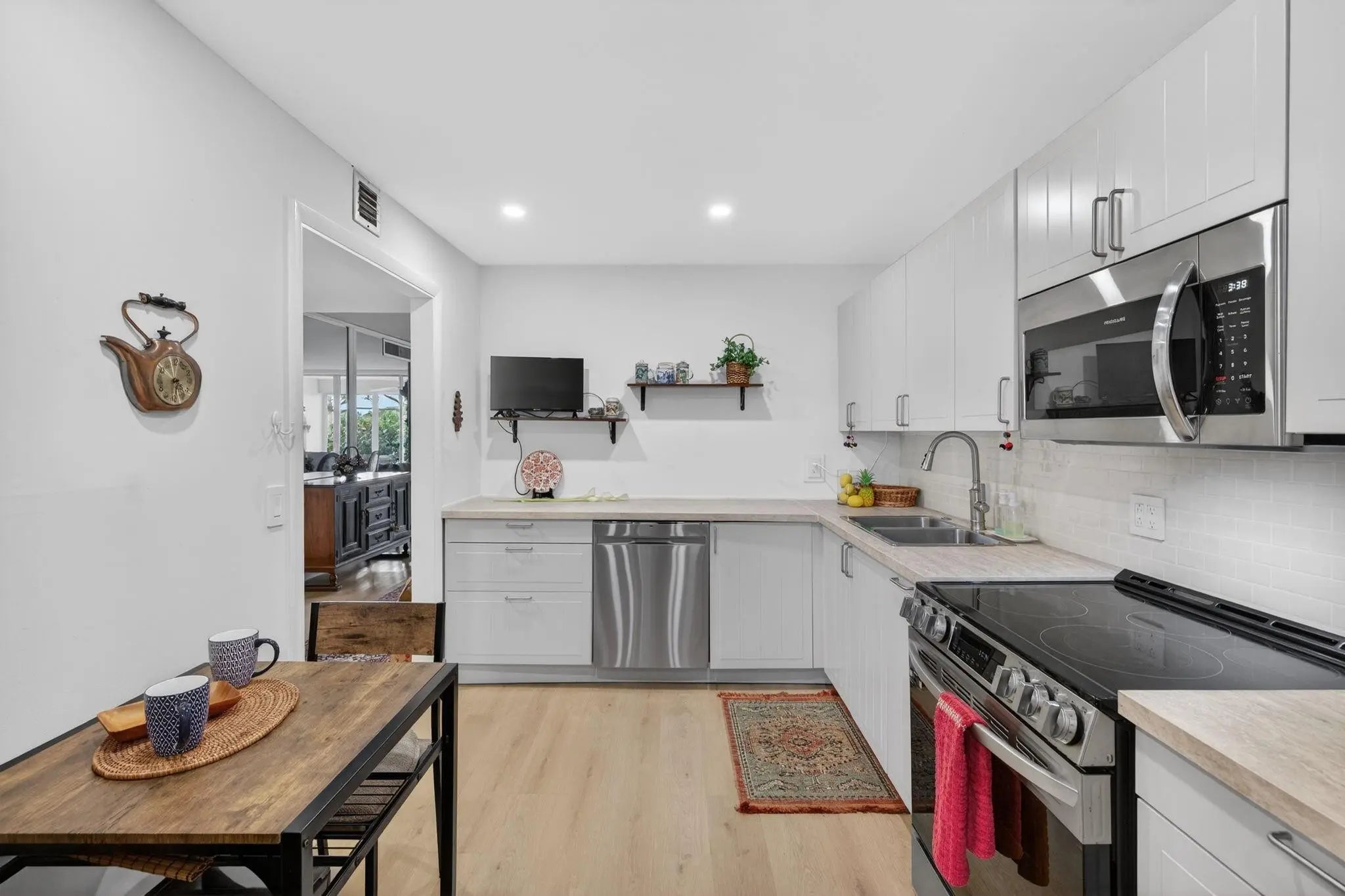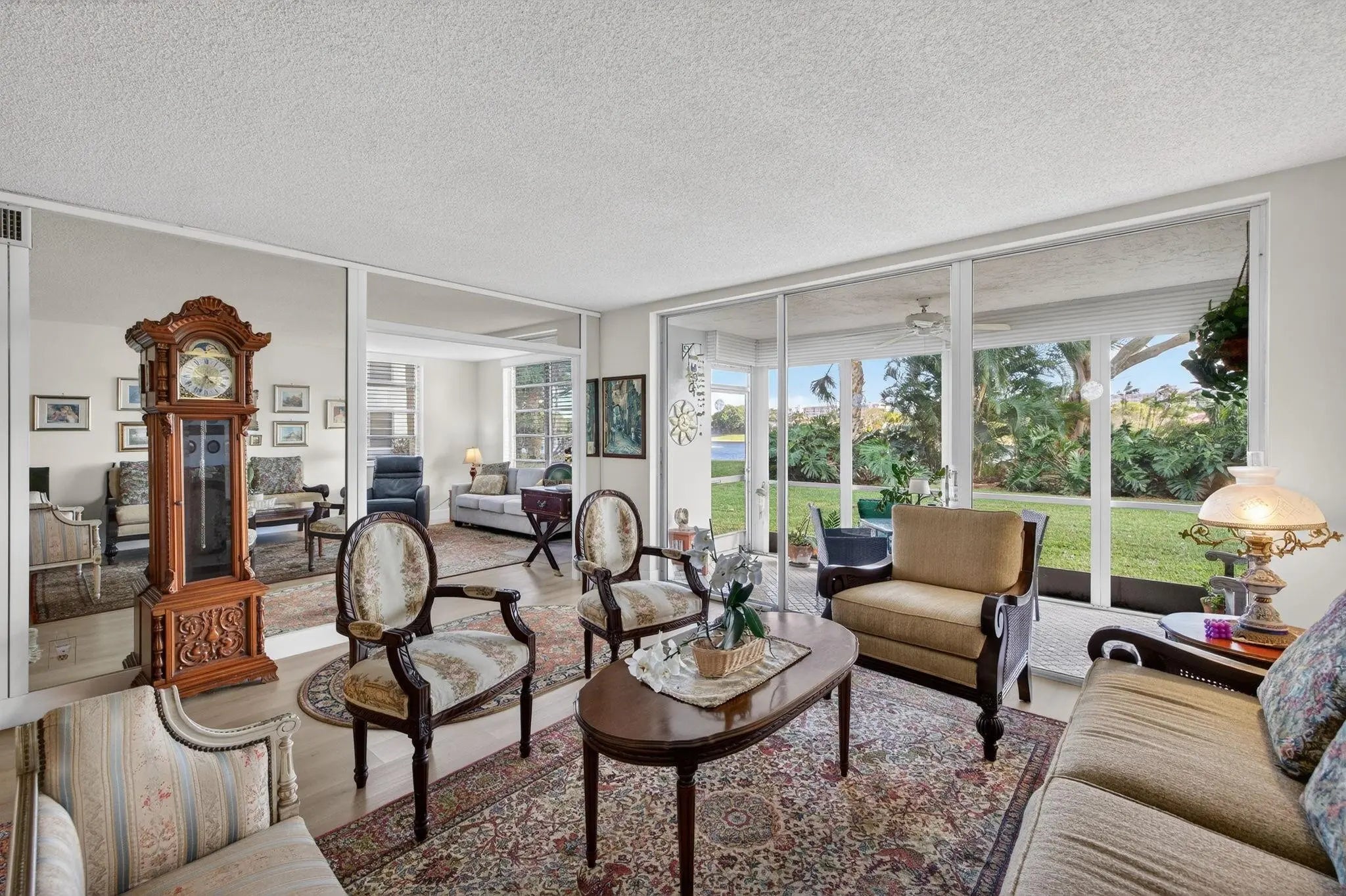 Enjoy relaxed golf community living in this beautifully maintained 2-bedroom, 2-bath corner unit, offering 1,444 Sqft of space in the desirable Palm Aire area. Peaceful lake views can be enjoyed year-round from the enclosed patio, perfect for morning coffee. The updated kitchen offers both style and function and includes the convenience of an in-unit washer and dryer. The spacious primary suite features a refreshed en-suite bathroom and a large walk-in closet for easy organization. A thoughtful layout and tasteful updates make this home feel welcoming and move-in ready. Laminated wood flooring throughout. HOA amenities include Wi-Fi, a heated community pool, and a clubhouse ideal for social gatherings and leisure. Located near shopping, restaurants, and everyday conveniences