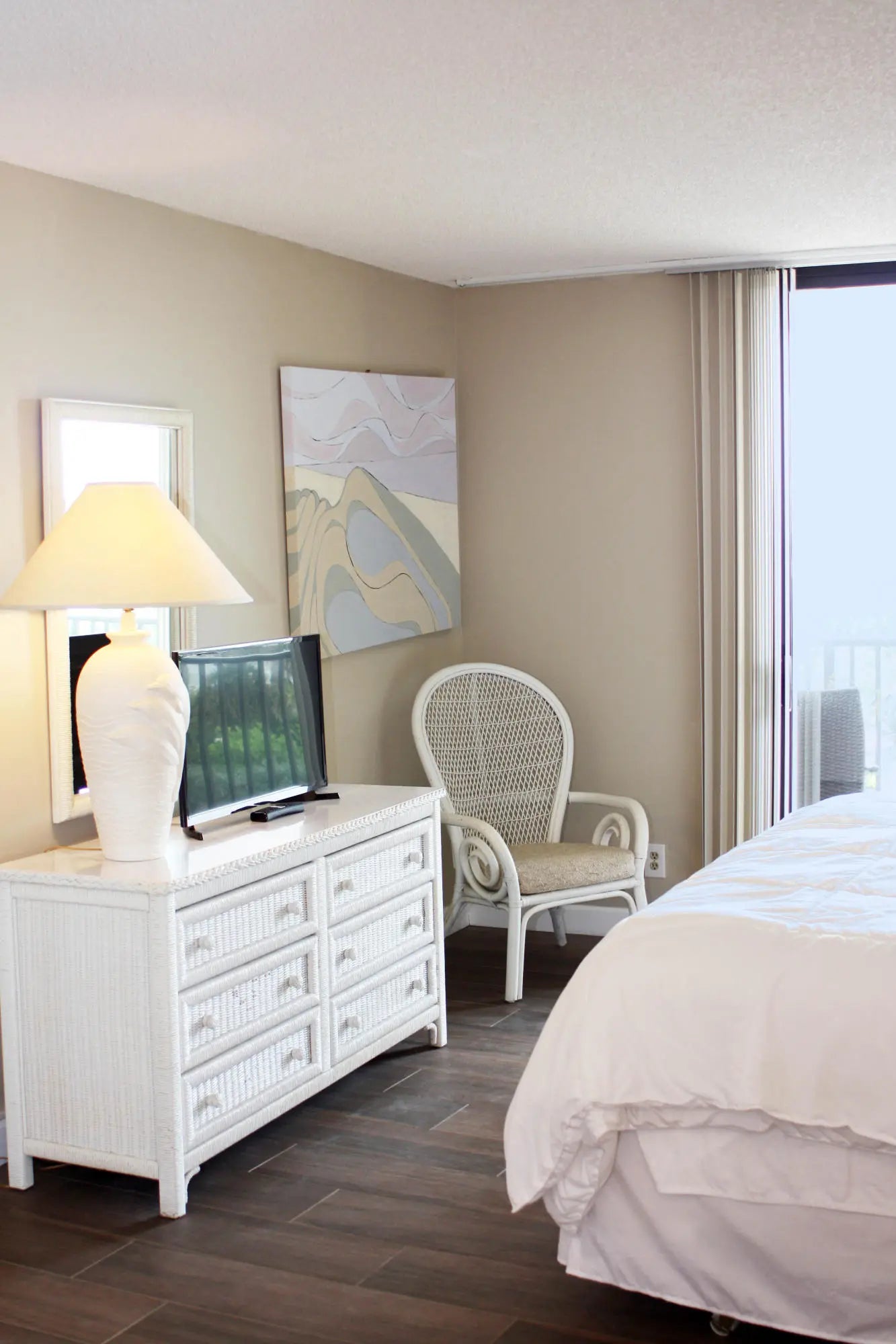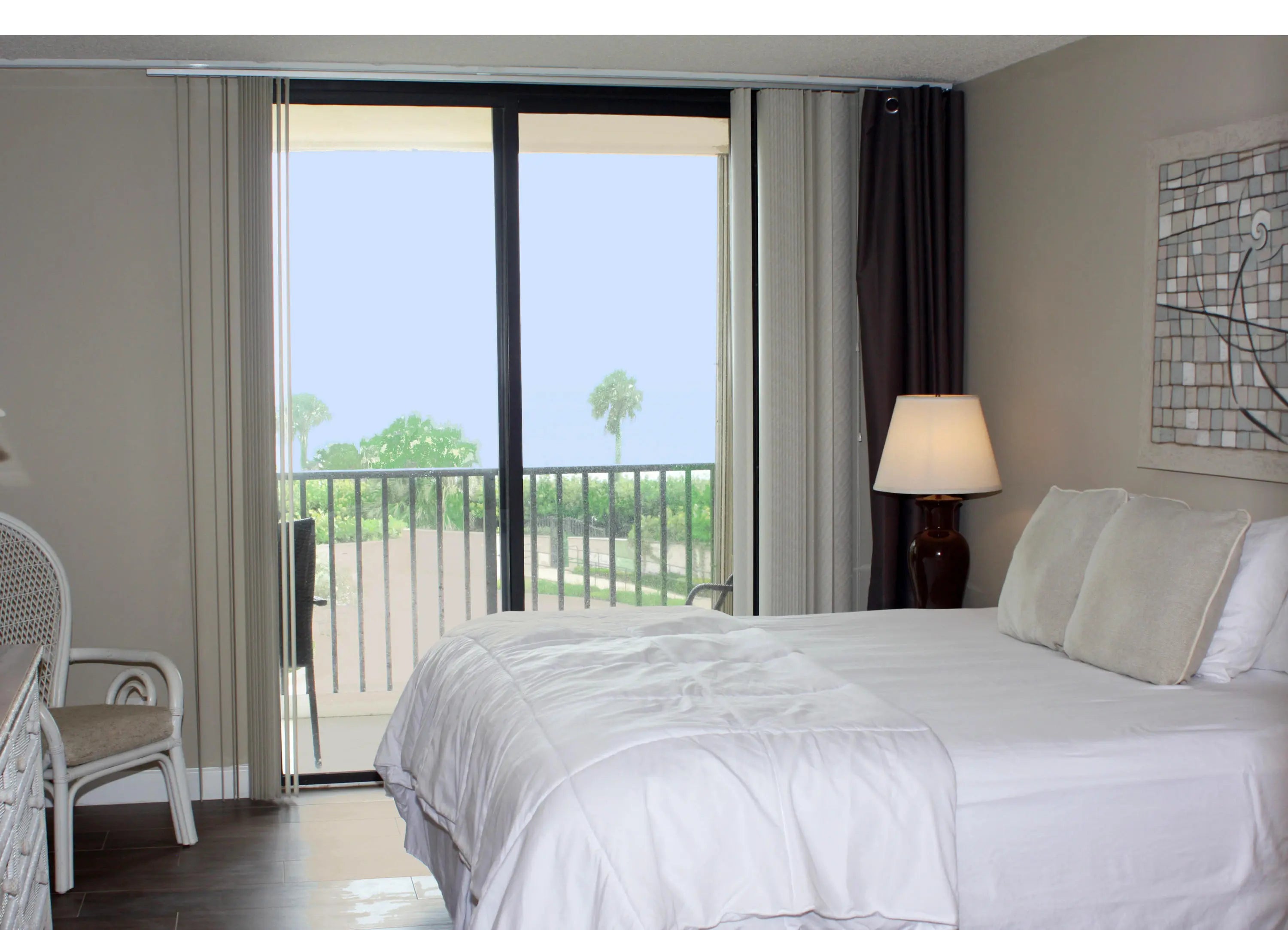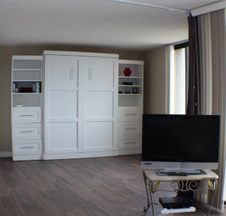 On the beach...newly updated, immaculate,fresh linens,new flooring,freshly painted, Queen Murphy Bed in guest room. sleep sofa in LR.King in master..new kitchen, 2 flat screen TV's...glass sliders overlooking pool deck,and ocean..under building parking, 9 tennis courts, pickle ball court.Gas grills on pool deck,fitness center,gathering room for fun parties,sauna,spa,heated pool..photos on the listing show you what you will enjoy..did I mention Immaculate.Cable and Wi-Fy yes! close to shopping, fine dinning, walking trail and entertainment ..yes.