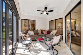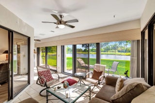 Don't miss showing this rarely available Model. PLEASE NOTE. The HOA fee has been significantly reduced. The LOWEST HOA $ in Aberdeen East. Bring your fussiest Buyer to this meticulously maintained home. This home is also available TURNKEY! The Villa features a lovely courtyard entrance, beautiful landscaping and serene lake views..This home features 2 bedrooms plus a den/office area and 2 full baths. As a bonus to add to your living space, a glass and screen enclosed air-conditioned Lanai adds extra living space with spectacular lake views (the lanai is not included in the square footage). The gourmet kitchen is a chef's delight with tons of cabinet space, stainless appliances and quartz counters. Both baths have been totally remodeled with high end finishes. The vaulted ceilings make this unit light and bright. clubhouse amenities are all included in your HOA fee. Enjoy this resort style living with an active clubhouse, live entertainment in the ballroom, resort pool area, 3 satellite pools, gym, card rooms, tennis courts, pickle ball courts, shuffleboard, serene walking trails and too many clubs and activities to mention. Aberdeen East is a beautifully landscaped community in a great location convenient to shopping, restaurants, golf courses and beaches. PLEASE NOTE that the HOA fee includes COMCAST TRIPLE PLAY (home phone, upgraded Cable and INTERNET). It is not mandatory to subscribe to COMCAST TRIPLE PLAY. Without that package the HOA would be $787. A one time, $1000 Capital Contribution is due from the Buyer at closing. All measurements are approximate. Information herein deemed reliable and subject to errors, omissions or changes without notice.