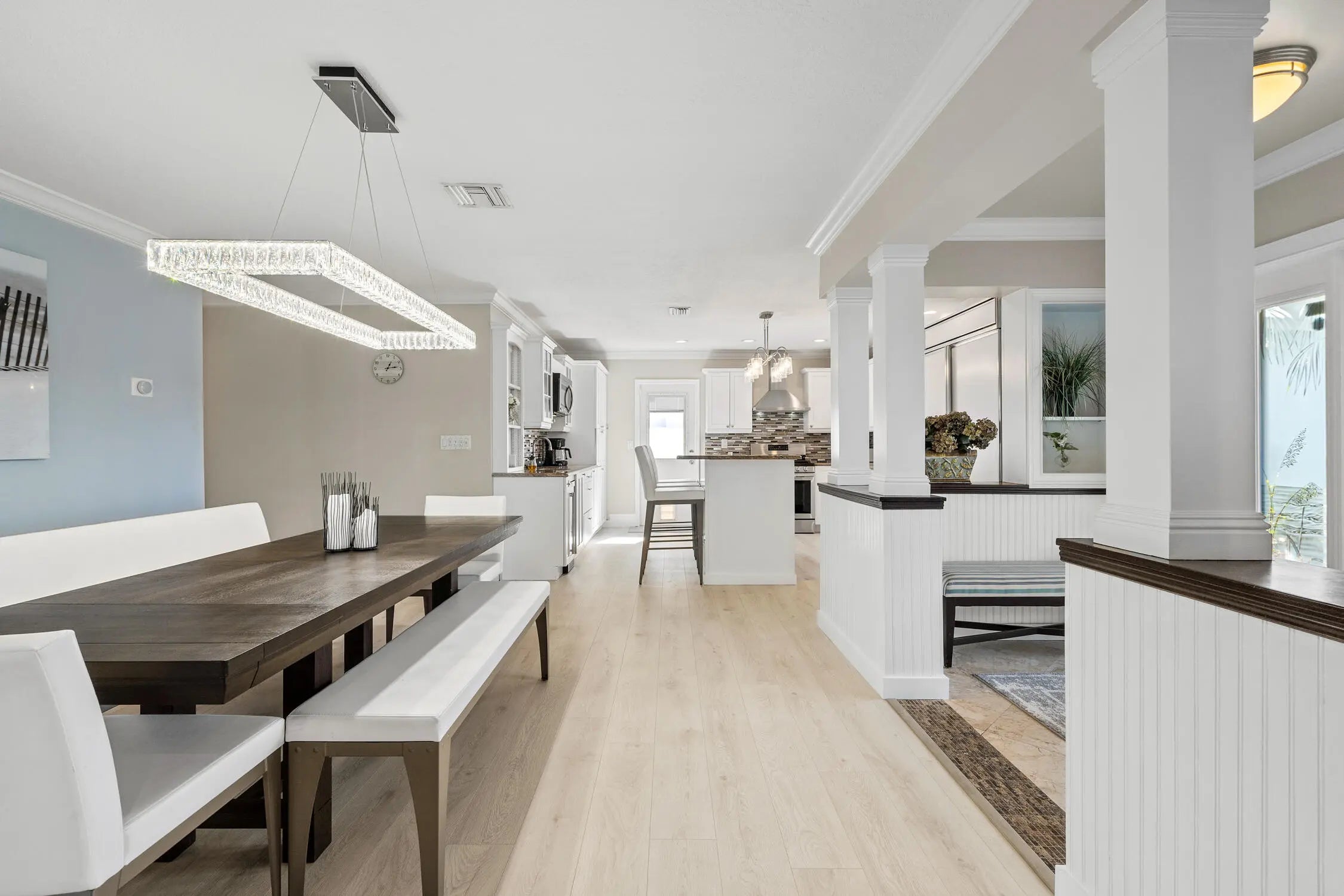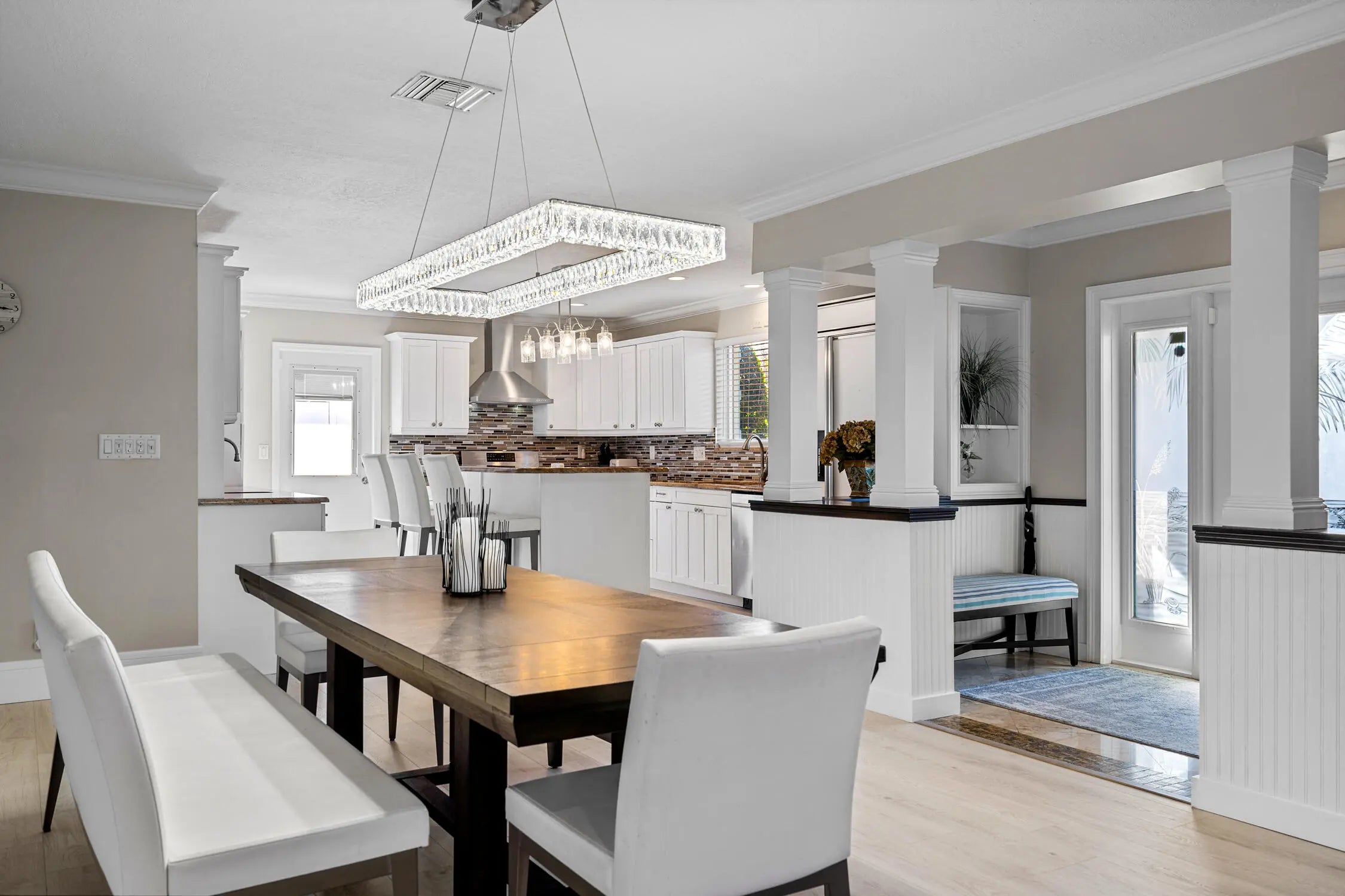 Envision a serene retreat nestled on 80 ft of waterfront with excellent boat dockage and No fixed bridges which offers unobstructed access to the open sea. This stunning residence boasts an open floor plan, seamlessly integrating the living spaces with the natural surroundings. The home is equipped with modern amenities such as a natural gas supply and a tankless water heater, ensuring efficiency and comfort. Three elegantly appointed bedrooms and three well-designed bathrooms provide ample space for relaxation. The exterior is just as impressive, featuring a circular driveway as you enter, and out back a beautiful saltwater pool invites you to bask in the sun, and a charming gazebo offers a shaded sanctuary. This home offers a blend of luxury, tranquility & a waterfront boating lifesty