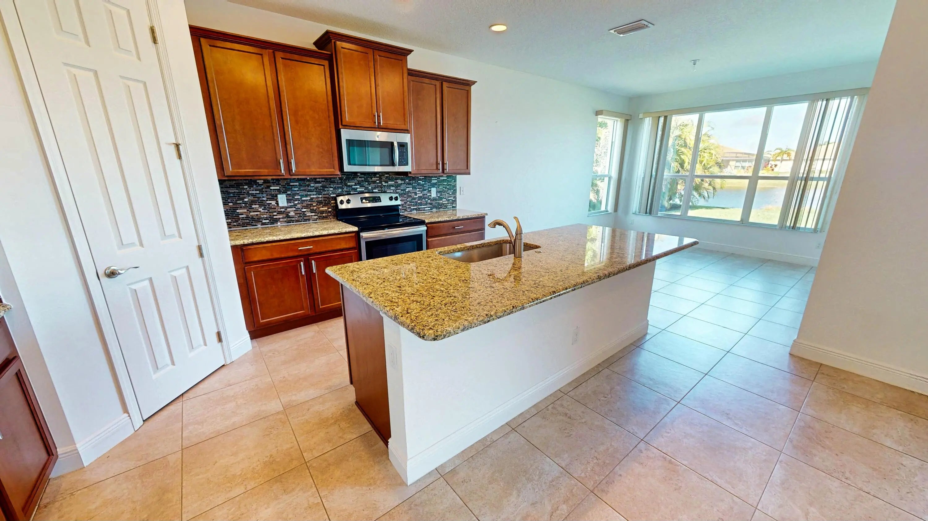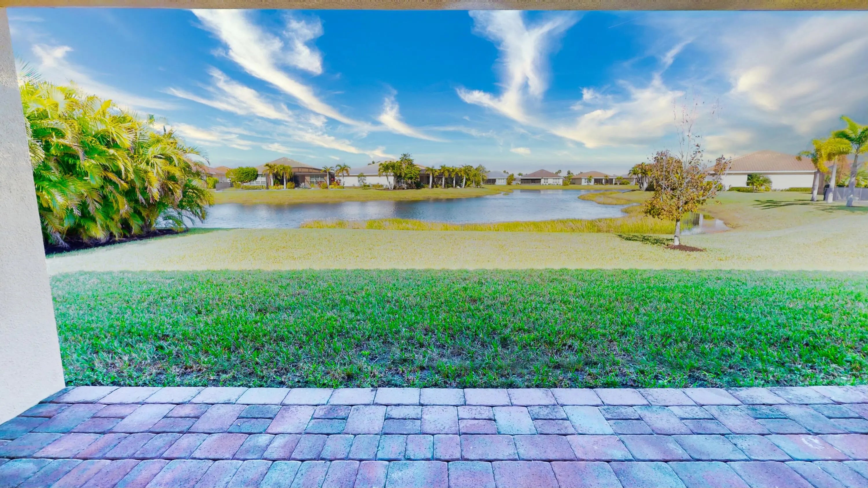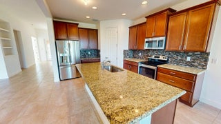 This elegant 4-bedroom, 3-bathroom home with a dedicated den offers over 2,400 square feet of luxurious living space, perfectly designed for comfort and style. From the moment you step inside, you're greeted by breathtaking long lake views that serve as the backdrop to the open family room and stunning kitchen. The kitchen, designed with entertaining in mind, features premium finishes, a large center island, and seamless sightlines to the main living areas. The expansive master suite offers a private retreat, complete with serene lake views, an oversized walk-in closet, dual sinks, and a spa-like stand-up shower. Three spacious guest rooms are strategically positioned for privacy, making them ideal for family or visitors. The den, located at the front of the home, provides a flexible space for an office or creative pursuits. Additional features include impact windows, a durable tile roof, and a brand-new AC unit for peace of mind. The large covered lanai is the perfect spot to relax and take in the stunning lake views, offering a serene outdoor living space. This home is a true gem, blending modern elegance with thoughtful functionality.