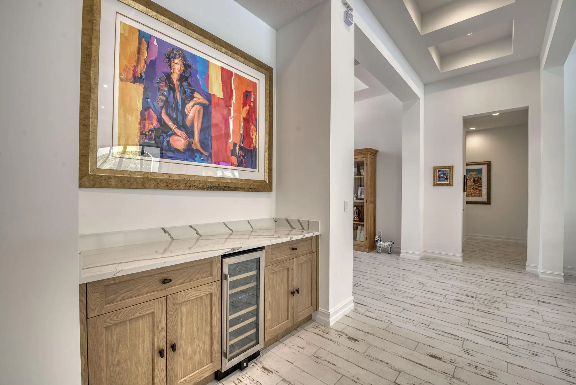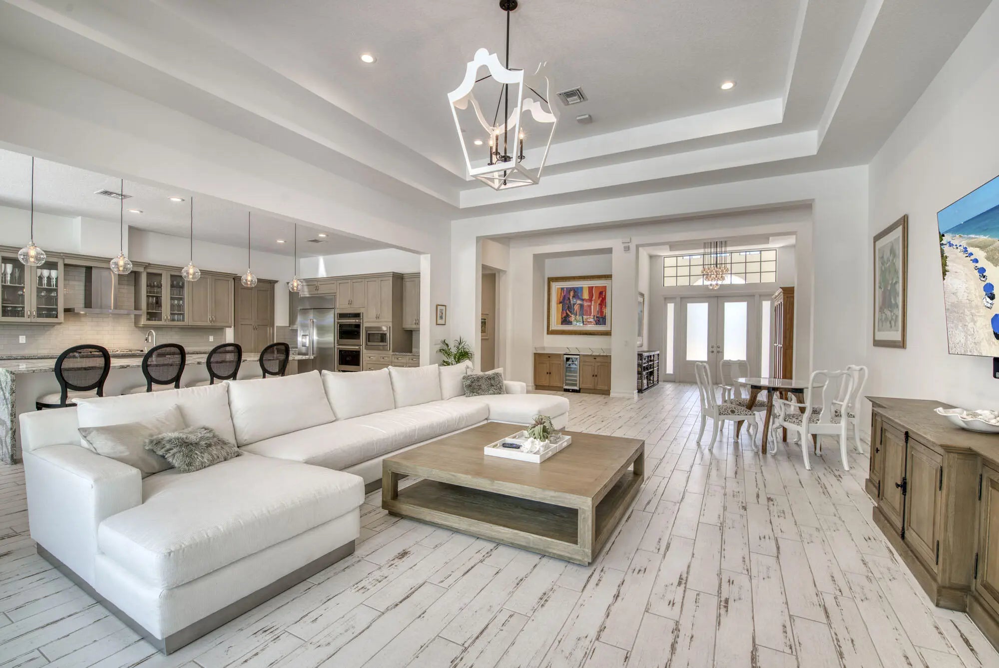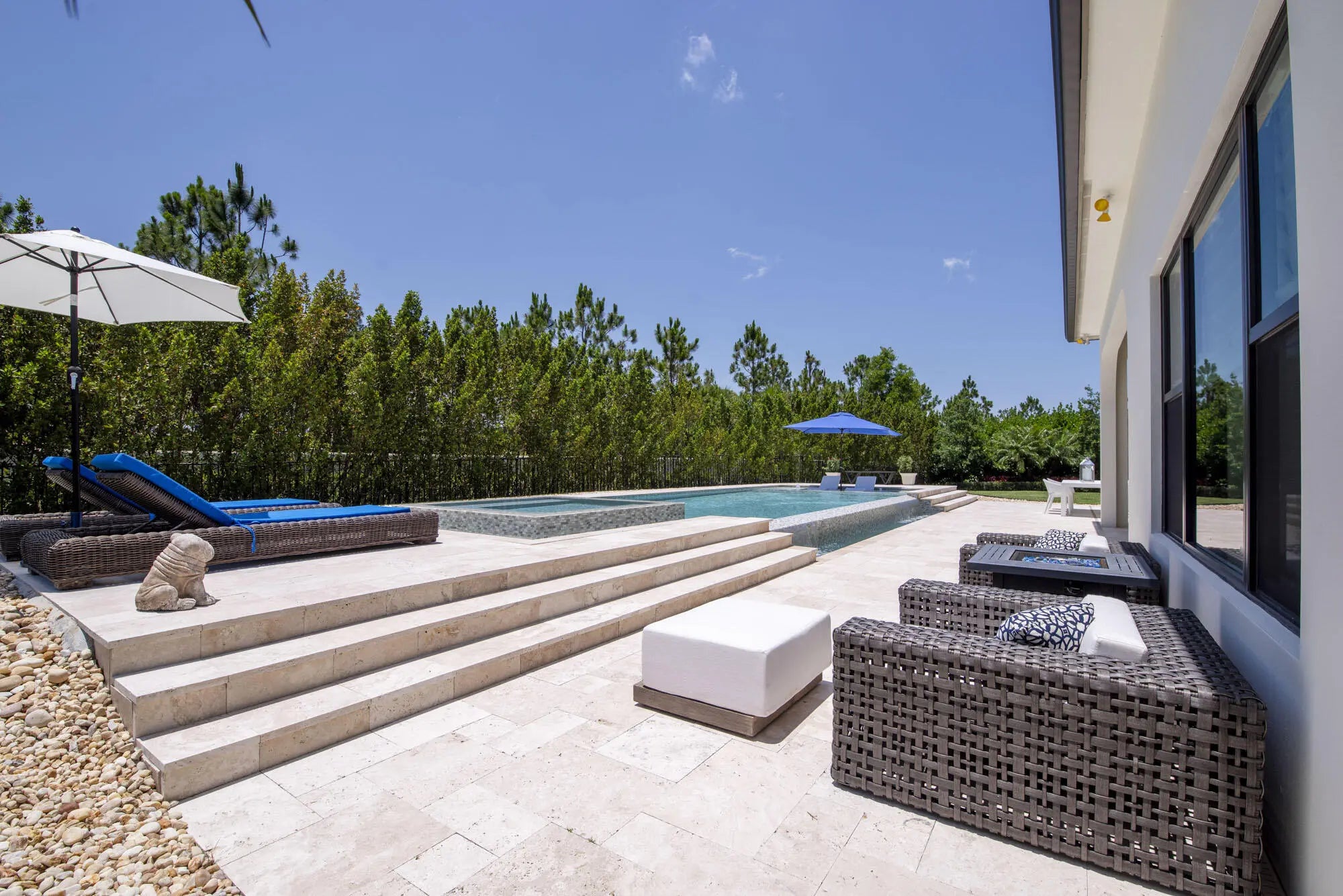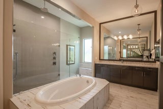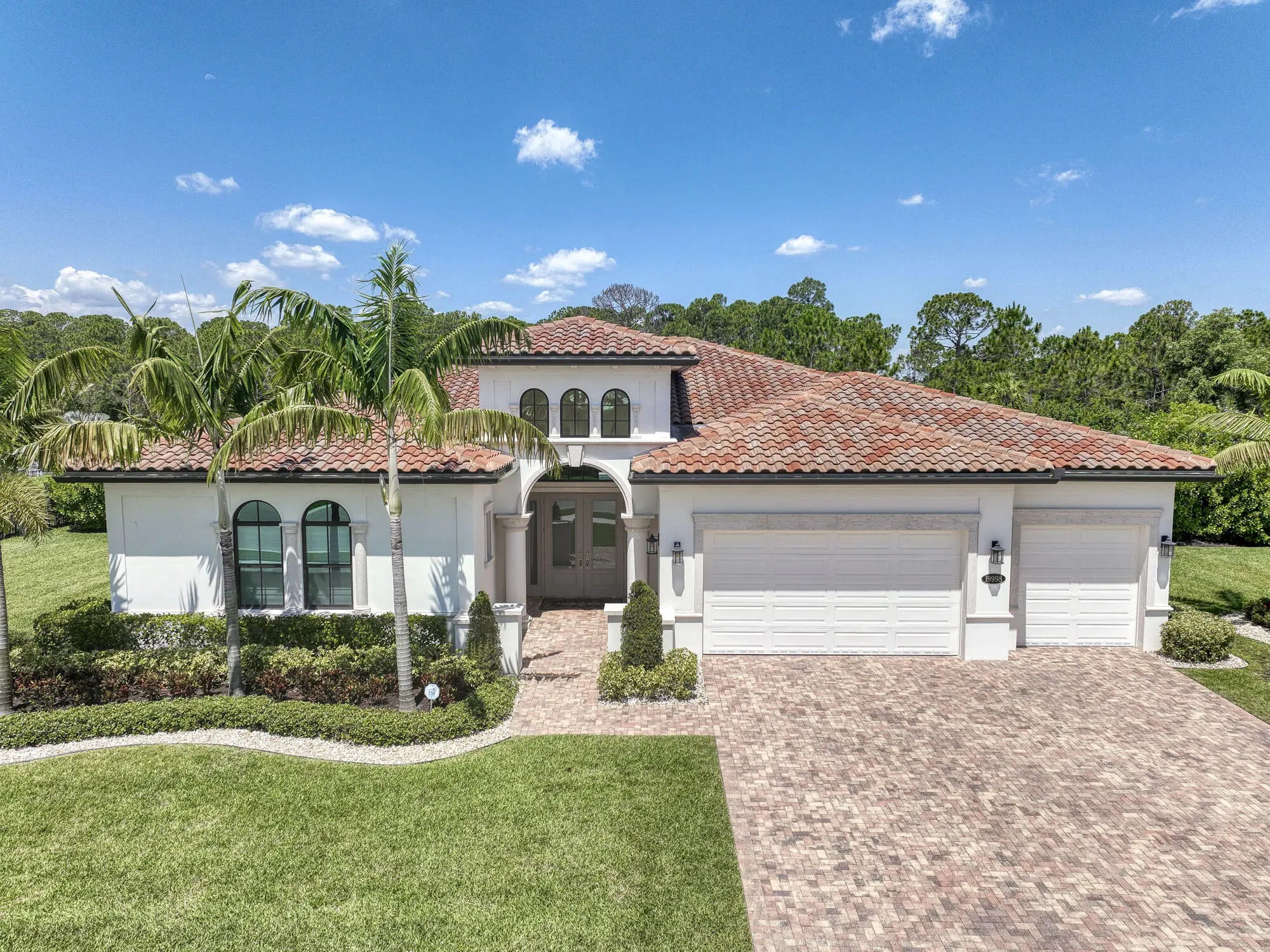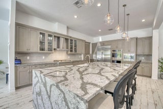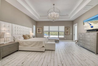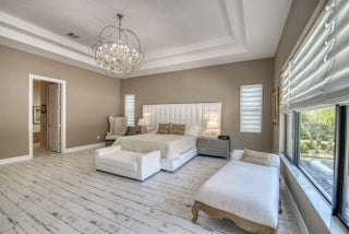 A private resort-style backyard oasis with pool, spa, sun shelf, and waterfall sets the tone for this pristine 2020-built Prado estate on over half an acre. Offering 4 bedrooms and 3,570 sq ft, this contemporary Mediterranean home features soaring 12-14 ft ceilings, reclaimed wood-look tile, an enormous great room and dining area framed by 10 sliders opening to the lanai, and a gourmet kitchen with quartz countertops, an oversized island, Café appliances, a Bosch dishwasher, Restoration Hardware pendants, and an incredible 8x12 walk-in pantry. The primary suite is a true retreat offering direct lanai access, two walk-in closets, and a luxurious spa bath with quartz vanities, soaking tub, and oversized spa shower. Prado is a serene gated community with lakes and preserve views, just minutes to beaches, shopping, and dining.