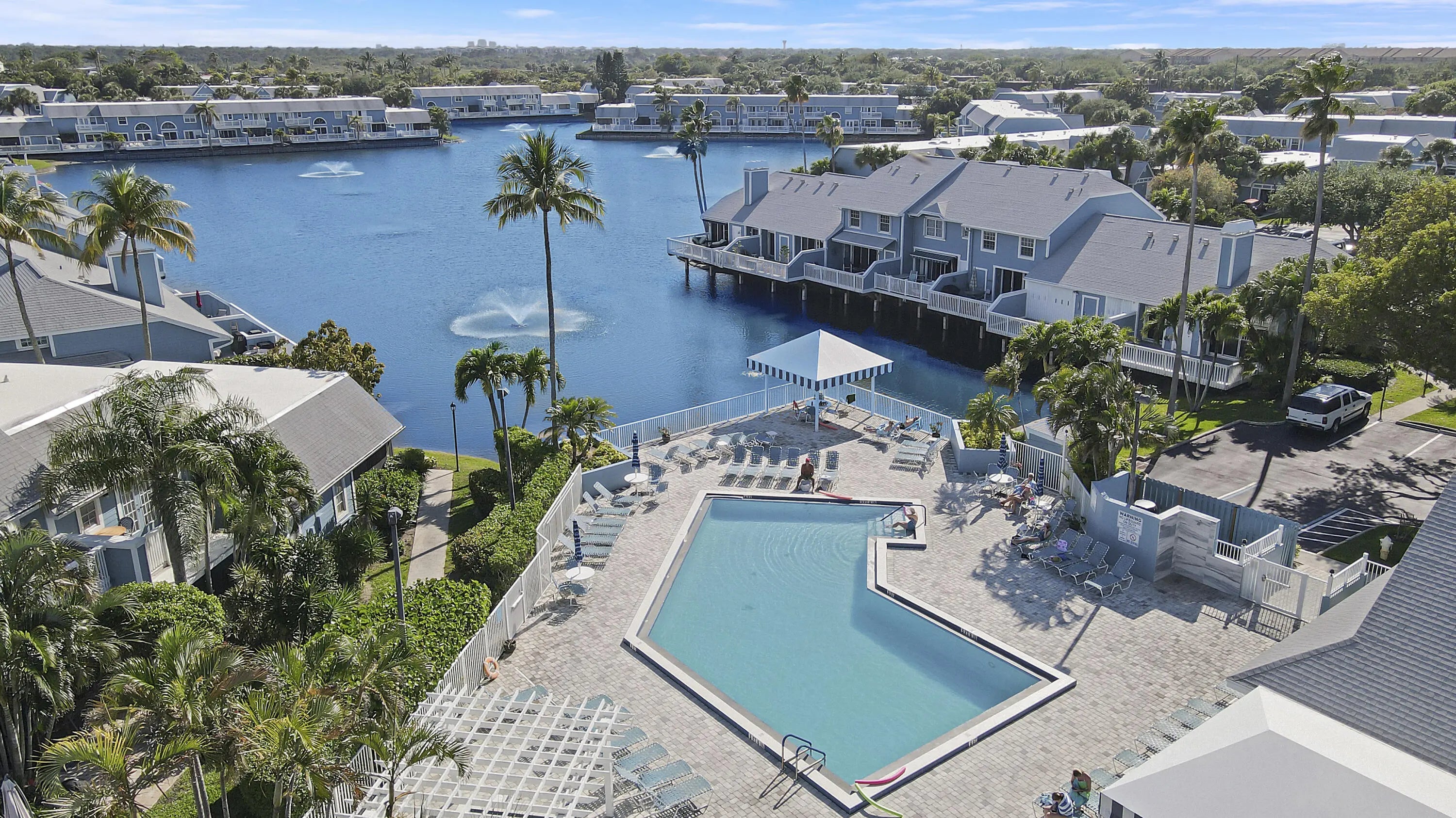 LOCATION LOCATION...WALK to the gorgeous, pristine beaches and shops. Incredible opportunity to own the best of the best in Villa of Ocean Dunes! Unit 213 features the most STUNNING WATER VIEWS in all of Ocean Dunes. This unit has fabulous water views with complete privacy —AS it's Centrally located on the LAKE .. not looking at anyone else's deck and only looking at wide water views and the beautiful white gazebo/oasis where all the beautiful birds gather Not only beautiful, but so therapeutic to have amazing views like this. and what a wonderful spot to do amazing outdoor entertaining. The beautifully updated kitchen is complete with sleek stainless steel appliances, gorgeous granite countertops, and ample cabinetry. Rich wood flooring flows throughout the main living areas. Additional upgrades include a new water heater and washer/dryer, ensuring convenience and efficiency. The private covered front porch with a gated entry adds extra charm and privacy, making this home a true waterfront retreat. The HOA allows seasonal rentals with a 3-month minimum, giving you the flexibility to maximize rental income throughout the year. Ideally located just 5 minutes from the beach and a great shopping center, and only 2 minutes from the heated pool and jacuzzi. This home includes two assigned parking spaces, and with everything so close by, you don't even need to own a car to live here! Easily walk to shops, restaurants, or the beach. Dog lovers will rejoiceOcean Dunes allows 2 dogs of any size, and USA Today voted the nearby dog beach the #1 Dog Beach in the country! It's truly a dog lover's paradise and a beach lover's dream.