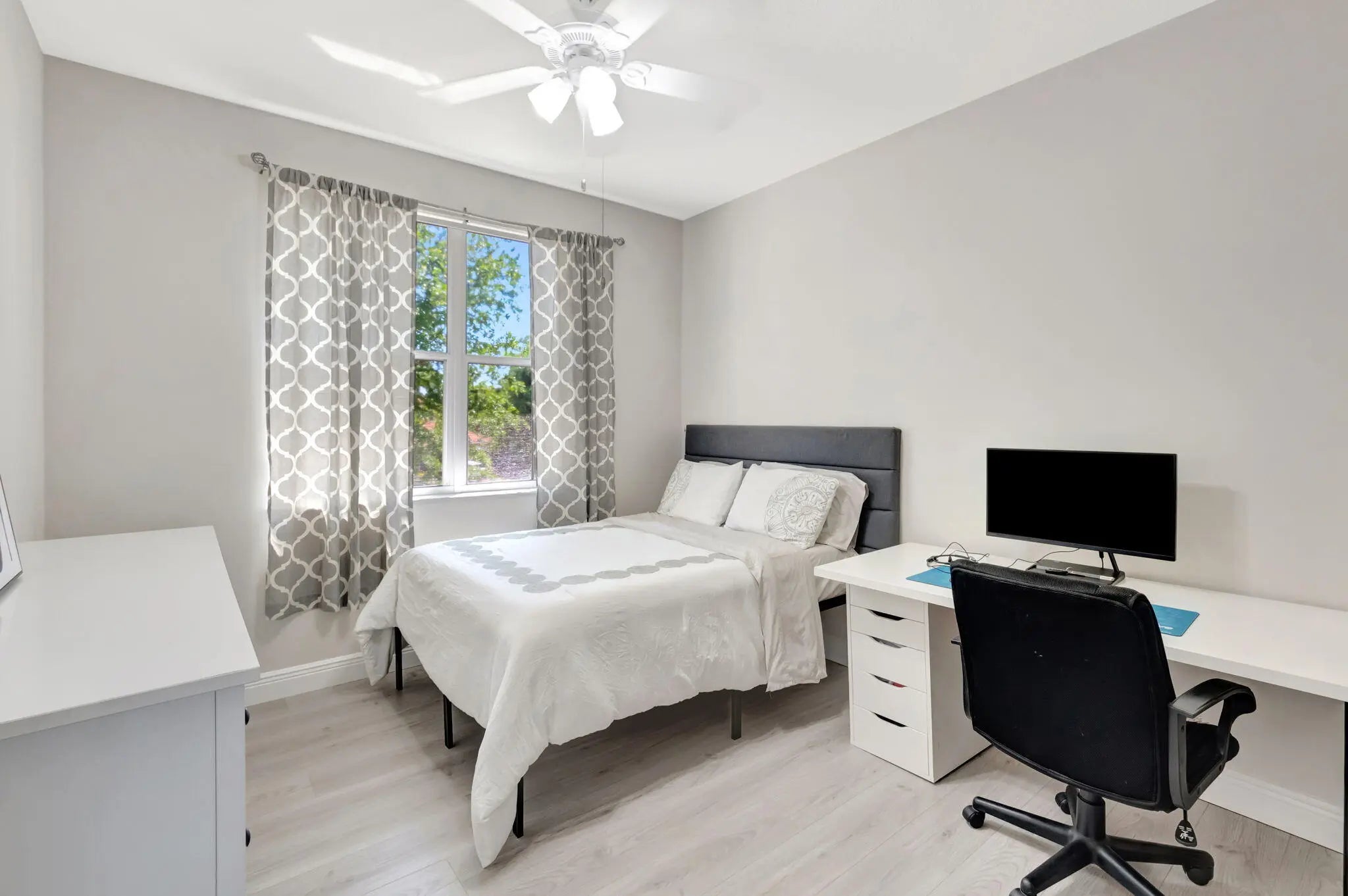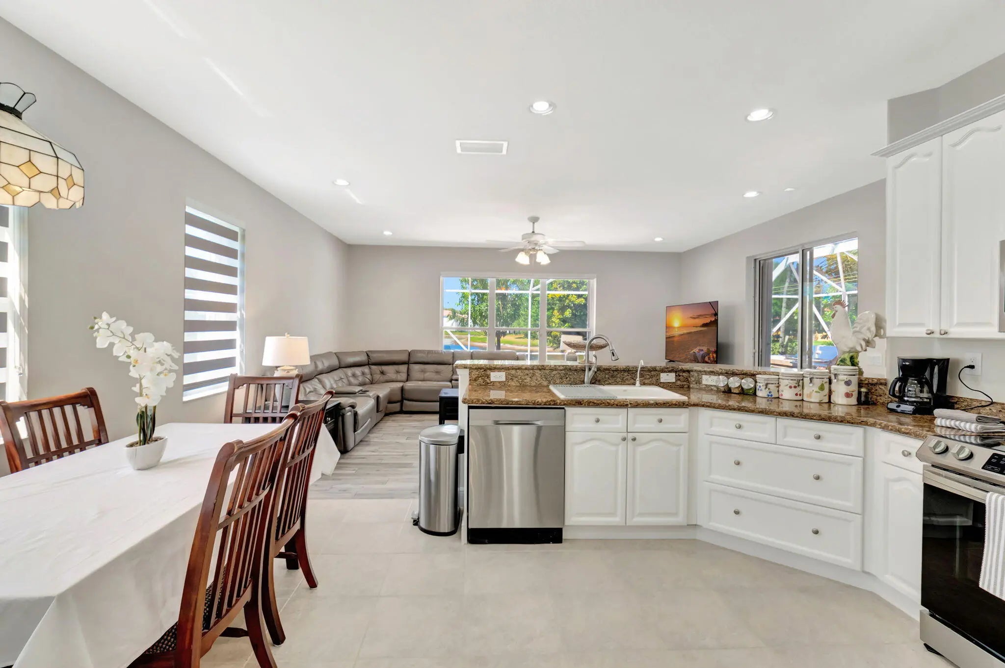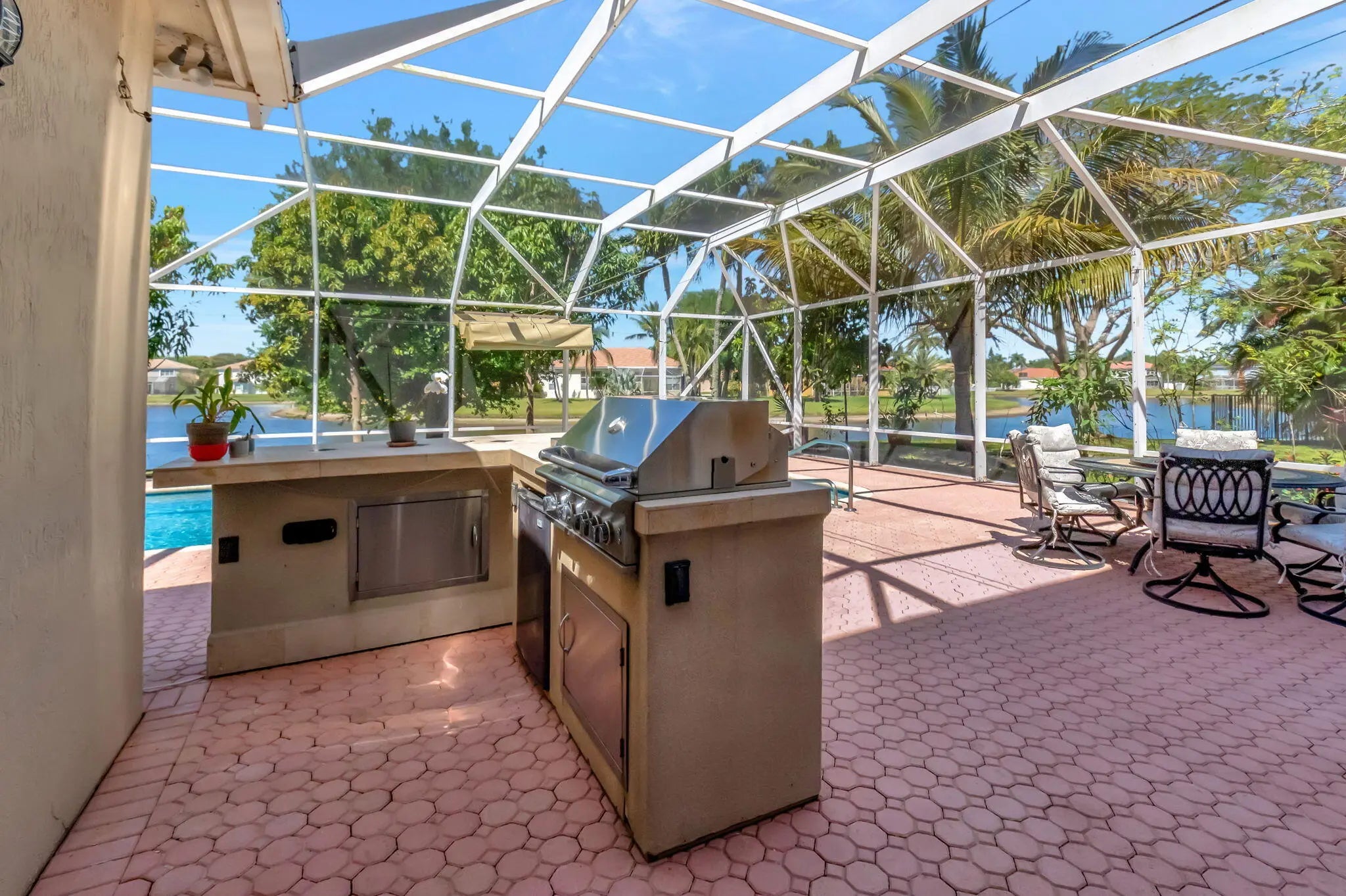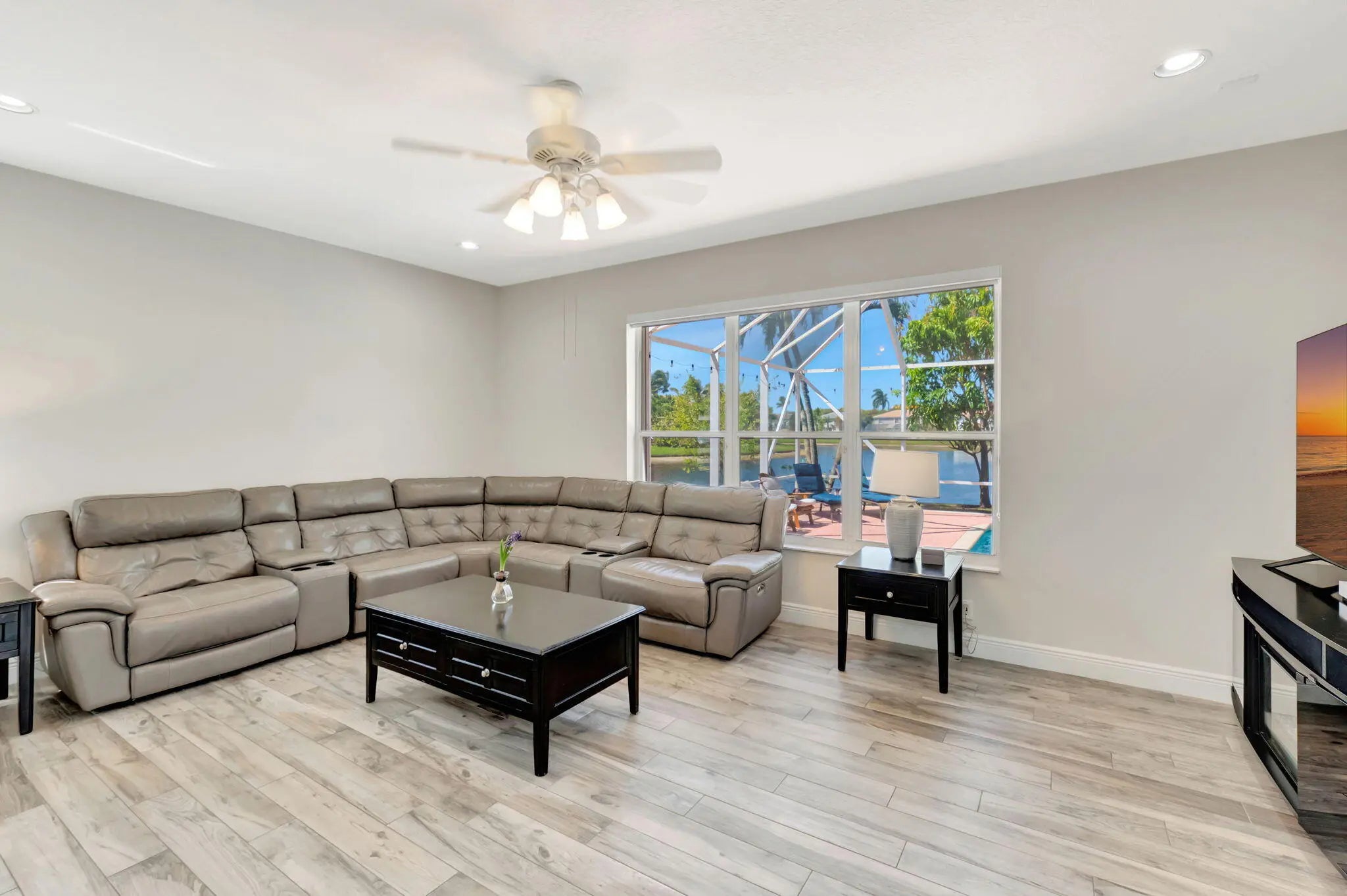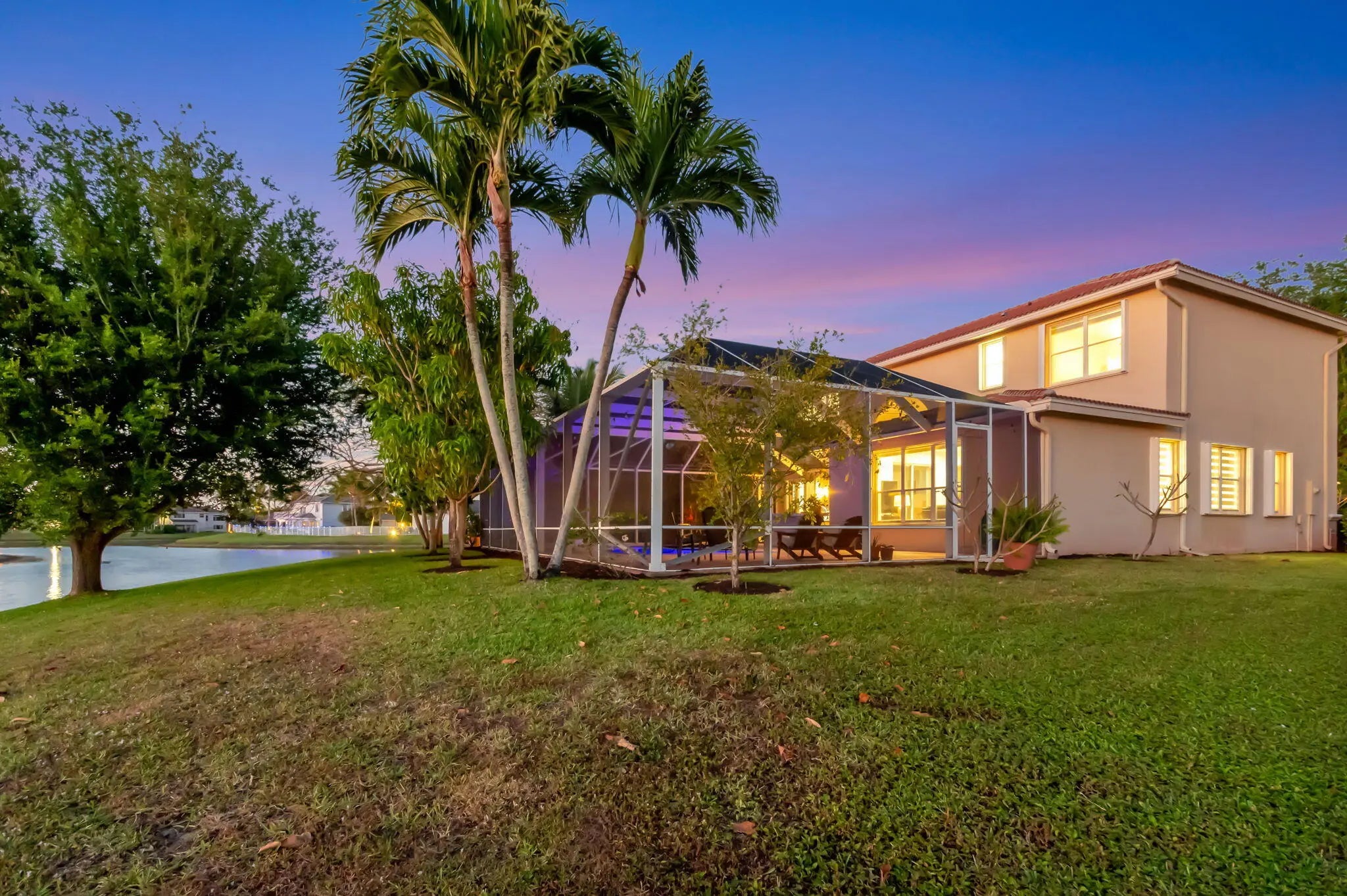 Brand-new roof, no insurance issues here! Welcome to your very own lakeside oasis with a private pool, perfectly situated on a quiet cul-de-sac. This 4-bedroom, 3-bathroom residence, plus a loft, combines comfort, style, and functionality, all with the peace of mind that comes with a brand-new roof (no insurance issues here!). Freshly painted and move-in ready, this spacious two-story home sits on an oversized, pie-shaped lot overlooking a tranquil lake. Step through elegant double doors into a soaring living room filled with natural light streaming through expansive windows. To the left, a formal dining room provides the perfect setting for special gatherings, while the thoughtfully designed kitchen features freshly painted 42" cabinetry, granite countertops, and a cozy breakfast nook for casual meals. The first floor also includes a highly desirable bedroom with a full bath, ideal for guests or multigenerational living. Upstairs, newly installed wide-plank flooring and baseboards add warmth and sophistication, complemented by beautifully maintained porcelain tile below. Step outside to your private backyard paradise, where a resurfaced pool with LED color-changing lights sets the perfect mood for evening swims or weekend entertaining. Relax under the Florida sun while enjoying serene lake views, and pick fresh avocados and mangoes right from your own trees. Additional highlights include a 3-car garage, 24/7 manned gated security, and access to resort-style community amenities: clubhouse, gym, tennis courts, and a large pool. All this, with unbeatable proximity to shopping, dining, entertainment, major highways, and Florida's world-famous beaches. This home is a must-see! Schedule your private tour today and discover lakeside living at its finest. The seller is willing to consider all offers.