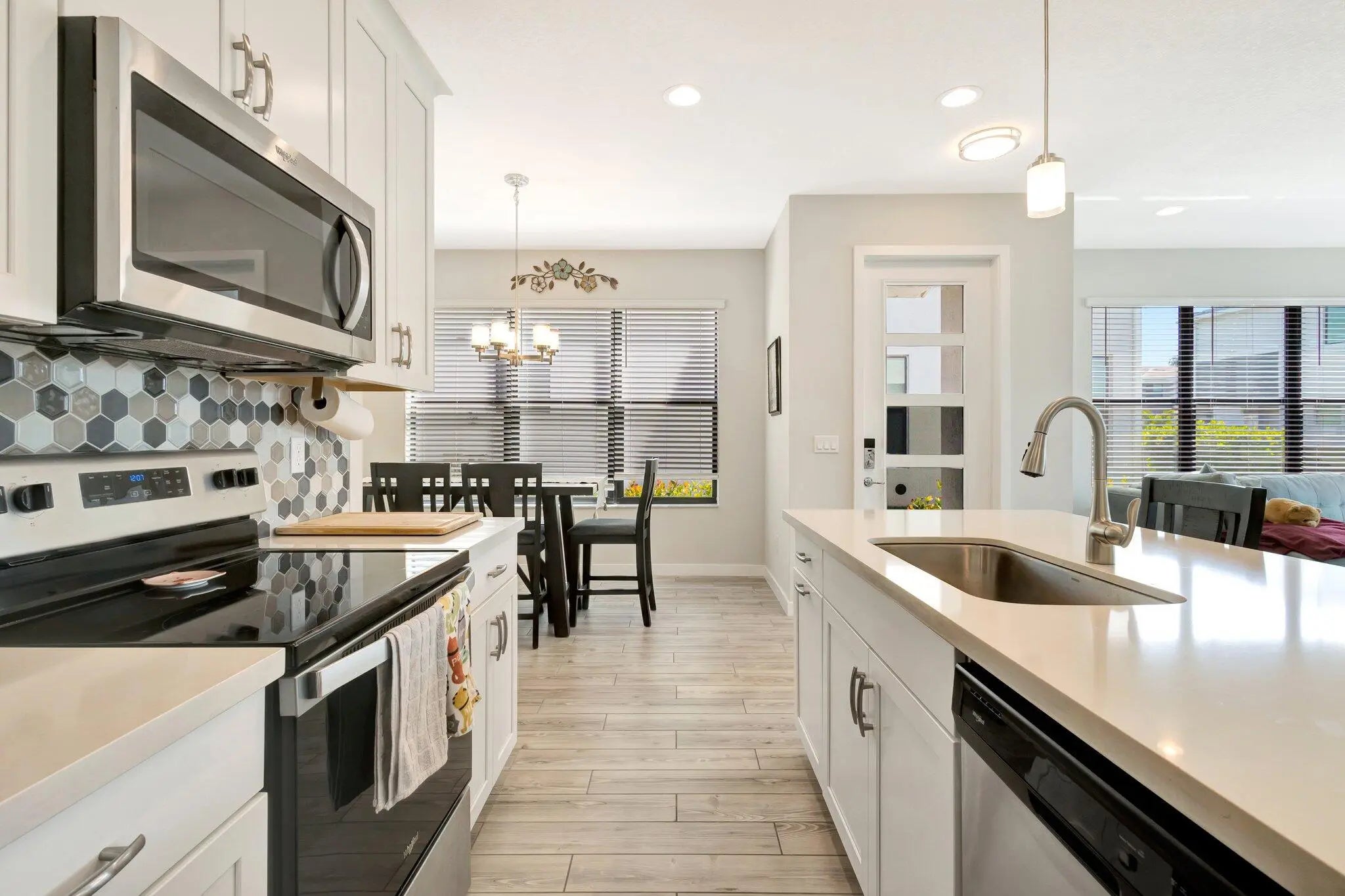 Unlock the door to a brighter tomorrow in this extraordinary 3-bedroom, 2.5-bathroom corner townhome with loft, where every detail has been carefully crafted to elevate your lifestyle. The sleek white shaker kitchen cabinets, quartz countertops, and woodgrain-look tile flooring come together in perfect harmony, creating a space that inspires confidence and joy. Plus, with low HOA fees that cover lawn maintenance, community pool access, and more, you'll have the freedom to pursue your passions. Imagine waking up each day in a community that's perfectly positioned near shopping, dining, and equestrian activities, with the added peace of mind that comes with complete glass impact windows and doors. And with ample parking space in the 2-car garage and driveway, the possibilities are endless!