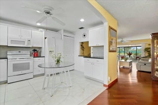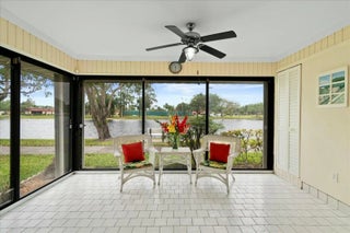 MOTIVATED SELLERS! Will entertain all offers! Welcome to your serene waterfront retreat in the 55+ community of Covered Bridge Condominiums! This 2 Bedroom, 2 bathroom serene waterfront retreat offers breathtaking direct lake views and unparalleled privacy as a desirable end-unit villa. Featuring two spacious bedrooms and two bathrooms, this single-story home is designed for comfort and convenience.The thoughtfully designed layout boasts a large, open kitchen, in-unit washer and dryer, and accordion storm protection on all windows. Step onto the enclosed patio and take in the panoramic water views, creating a perfect setting for relaxation. Recent updates include a brand-new roof (2023), along with a newer A/C and water heater, ensuring peace of mind for years to come. Covered Bridge is an active and pet-friendly community offering an impressive array of resort-style amenities, including two heated pools, tennis and pickleball courts, a clubhouse with a library and billiards, bocce ball, shuffleboard, an exercise room, and scenic walking paths. The monthly HOA covers cable, internet, water, lawn care, and exterior maintenance, making for effortless living. Conveniently located just minutes from PBI Airport, major highways, fine shopping, dining, and the beach, this home provides the perfect blend of tranquility and accessibility. With a private parking spot and ample guest parking, this is an opportunity not to be missed. Experience the best of Palm Beach County living in this beautifully maintained lakeside retreat.