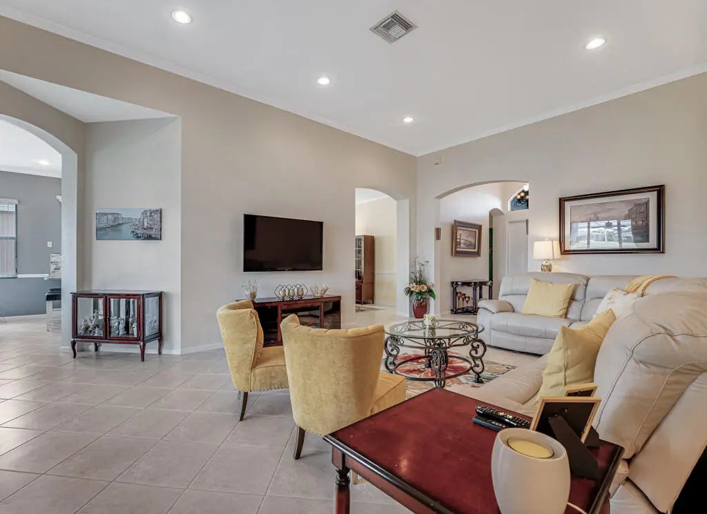 Stunning lakview, and gorgeous landscaping on a private cul de sac location!! Beautiful and Pristine Venetian Floor Plan offers 3 FULL BEDROOMS (TWO OF WHICH HAVE PRIVATE BATHS) PLUS DEN/OFFICE! Beautiful new kitchen has an extra large eating area that can double as another den. The large great room looks onto oversized screened patio. No Carpet! The primary suite offers a lovely bay window that overlooks a panoramic lakeview. Crown molding newer washer and dryer, hunter douglas window treatments, attic stairs, automatic door locks, and so many more perks to this immaculate home. Venetian Isles is the latest rage! Resort living at its finest! Brand New & exquisite clubhouse is not only stunningly gorgeous but truly has it all! First you have an elegant lobby with an elevator that brings you to an upper level lounge and rooftop bar that leads out to a fabulous rooftop patio. The entire indoor and outdoor upper level overlooks the pools, lake cabanas and veranda. Then on the main level you'll find the restaurant, card rooms, library, billiards, arts and crafts center, fabulous new social hall with brand new stage and sound booth and more. New state-of-the-art Clubhouse w/restaurant, Mezz/rooftop bar, card rooms, arts & crafts, billiards, library, social hall w/shows/parties/entertainment all year round. Gym & Yoga Studio offer fitness classes, personal trainers & workout eqpt. Pickle Ball, Tennis, Bocce, Putting Green, resistance pool & large pool