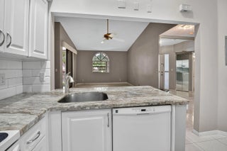 This second-floor condo offers a spacious and modern living experience with three bedrooms, two full bathrooms, and a multitude of updates that make it truly move-in ready. Every aspect of this home has been thoughtfully designed for comfort, style, and functionality. Just a few steps away from a satellite pool! It's just like having your own private pool! Ceramic tile flooring spans the living areas, offering a clean look. All three bedrooms feature durable and attractive laminate flooring. Both bathrooms boast luxury vinyl flooring for a contemporary finish. The master bathroom has been beautifully renovated with granite countertops, ample storage, and a frameless walk-in shower. The second bathroom features an updated granite-top vanity and glass-enclosed bathtub. The eat-in kitchen has been thoughtfully opened, showcasing spacious white cabinets, granite countertops, and a stylish white tile backsplash, perfect for cooking and entertaining! After a long day, you will enjoy relaxing on the glass-enclosed balcony with luxury vinyl flooring. All windows in the bedrooms and the balcony come equipped with hurricane shutters, offering peace of mind during storm season. A one-year-old hot water heater and a four-year-old AC unit ensure efficient and reliable operation. Platina offers care-free, resort-style living at its very best! AT&T FIBER OPTIC HIGH SPEED INTERNET is INCLUDED IN THE CONDO FEES along with DIRECT TV, PEST CONTROL, ROOF MAINTENANCE and WATER. All you pay for is electricity! The active 20,000 square foot clubhouse is stunning! Cafe open for breakfast and lunch now offering take-out meals, card rooms, fitness center with stationary bicycles in a solarium overlooking the pool area. Relax in one of the satellite pools or at the enormous free-form main pool and spacious sundeck. Tennis, handball and pickleball courts. There is also an art room with a kiln! With shows, bingo, and an array of clubs, you will not be bored! 24-hour guard gated community. Convenient access to I-95 and the Florida Turnpike. Close to shopping and wonderful restaurants. DON'T FORGET TO VISIT THE CLUBHOUSE.