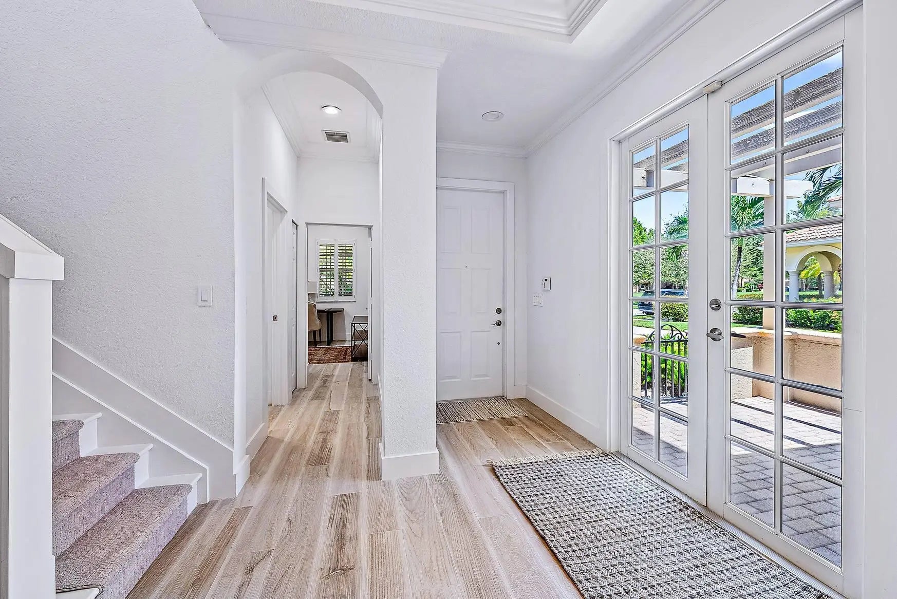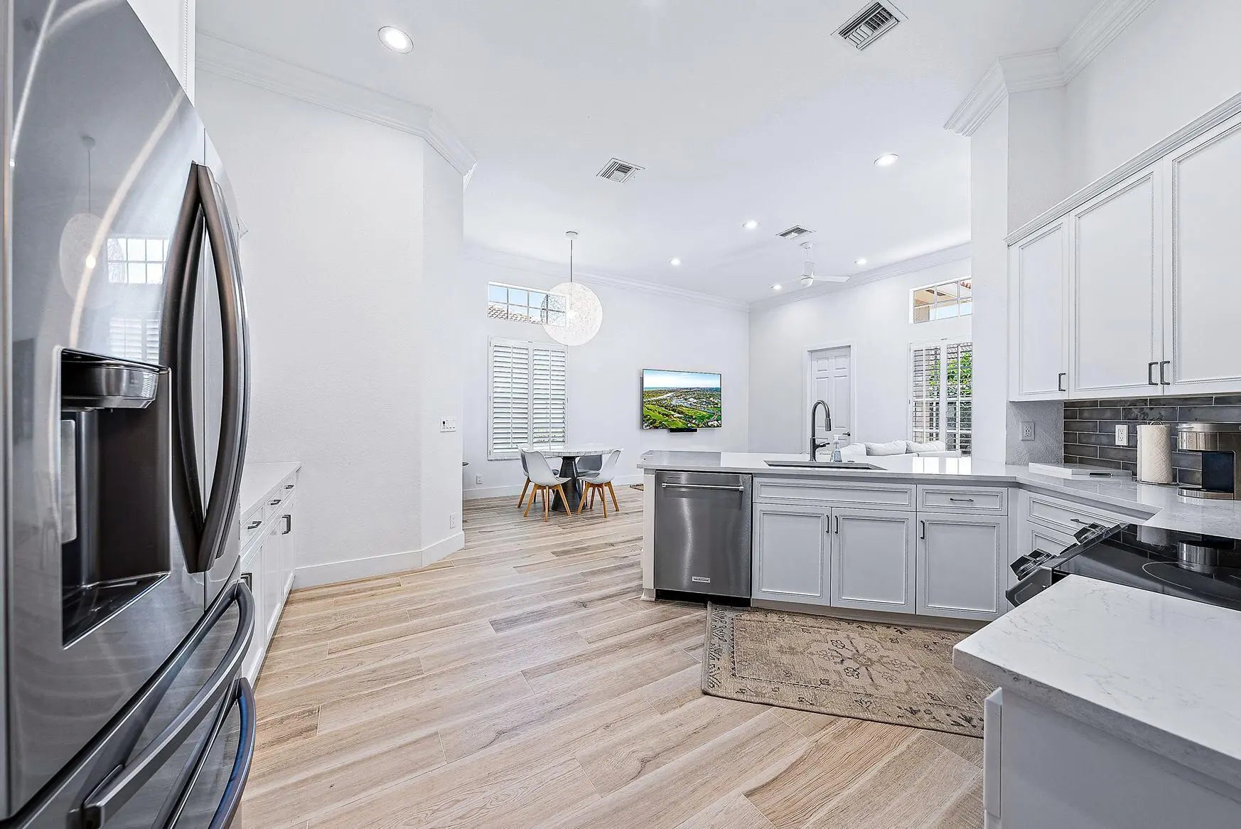BEAUTIFULLY UPDATED AND FURNISHED TWO STORY HOME WITH THE MASTER SUITE ON THE GROUND FLOOR. SPACIOUS OPEN KITCHEN WITH BREAKFAST AREA AND LARGE FAMILY ROOM WHICH OPENS TO THE EXPANDED COVERED LANAI AND INVITING FENCED YARD WITH PRIVACY HEDGES. CABANA BATH WITH SHOWER. BEAUTIFUL LIVING ROOM AND DINING AREA OFF THE KITCHEN PERFECT FOR DINNER PARTIES. FIRST FLOOR GUEST SUITE OR GREAT HOME OFFICE WITH 2 ADDITIONAL GUEST SUITES UPSTAIRS. LUXURIOUS MASTER SUITE WITH DUAL CLOSETS AND SPACIOUS SPA LIKE BATHROOM. FULL LAUNDRY AND AN EXPANSIVE GARAGE AND DRIVEWAY. WONDERFUL CORNER LOCATION WITH NO HOMES ACROSS AND A HUGE GREEN SPACE. COMMUNITY HAS TENNIS AND POOL ALL MINUTES TO ABACOA AND ALTON PLUS THE BEACH.