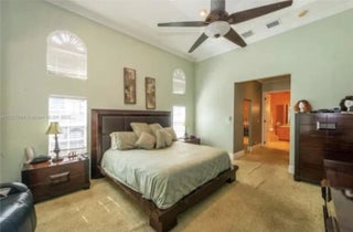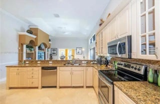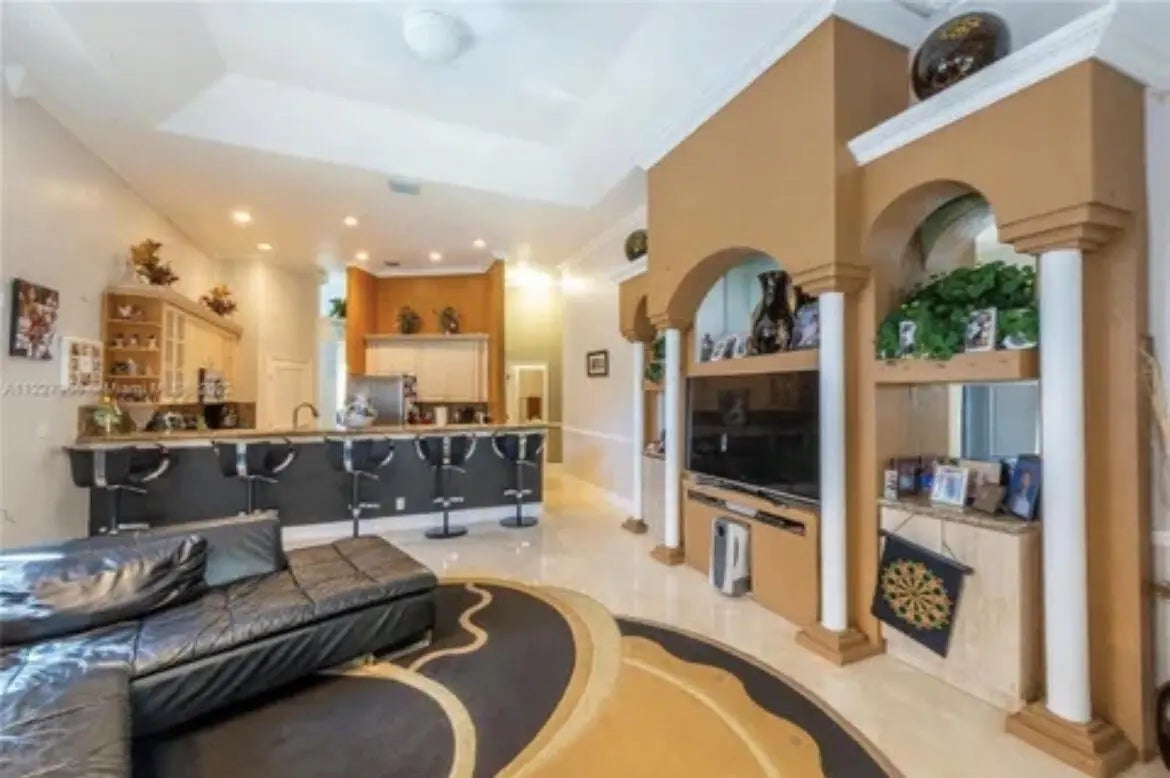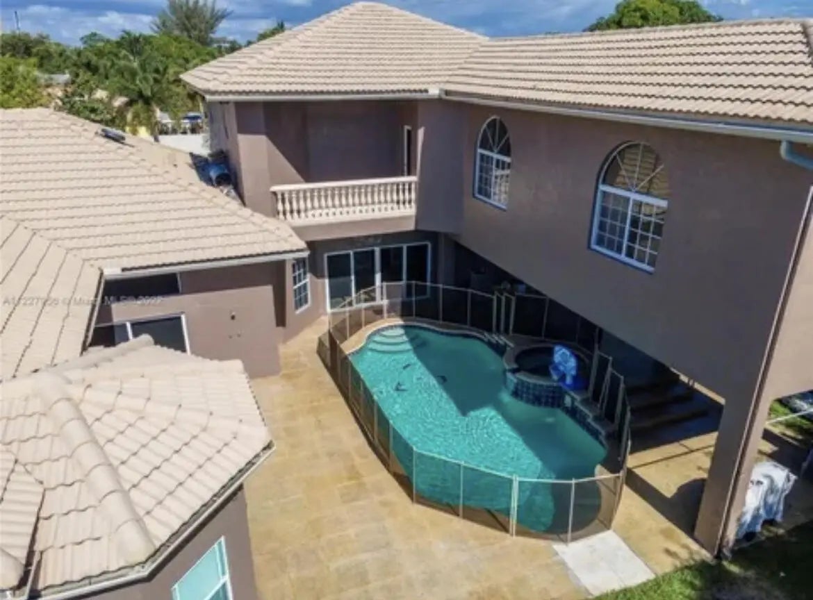 Welcome to this stunning luxury home! This home offers 5 spacious bedrooms and 4 tastefully designed bathrooms. Step inside to find luxurious marble floors that flow seamlessly throughout. The custom kitchen is a chef's dream, featuring granite countertops, stainless steel appliances and a stainless steel sink with a convenient bar area. For your entertainment needs, the home has a luxurious movie theater with signature reclining seating and a large movie screen. The impact glass windows provide both comfort and security. Step out into the backyard and be greeted by an inviting pool with a heated spa, perfect for relaxing or hosting gatherings. Enjoy the ultimate outdoor experience with a full Basketball court. The home also has a double car garage, and plenty of room for more parking.