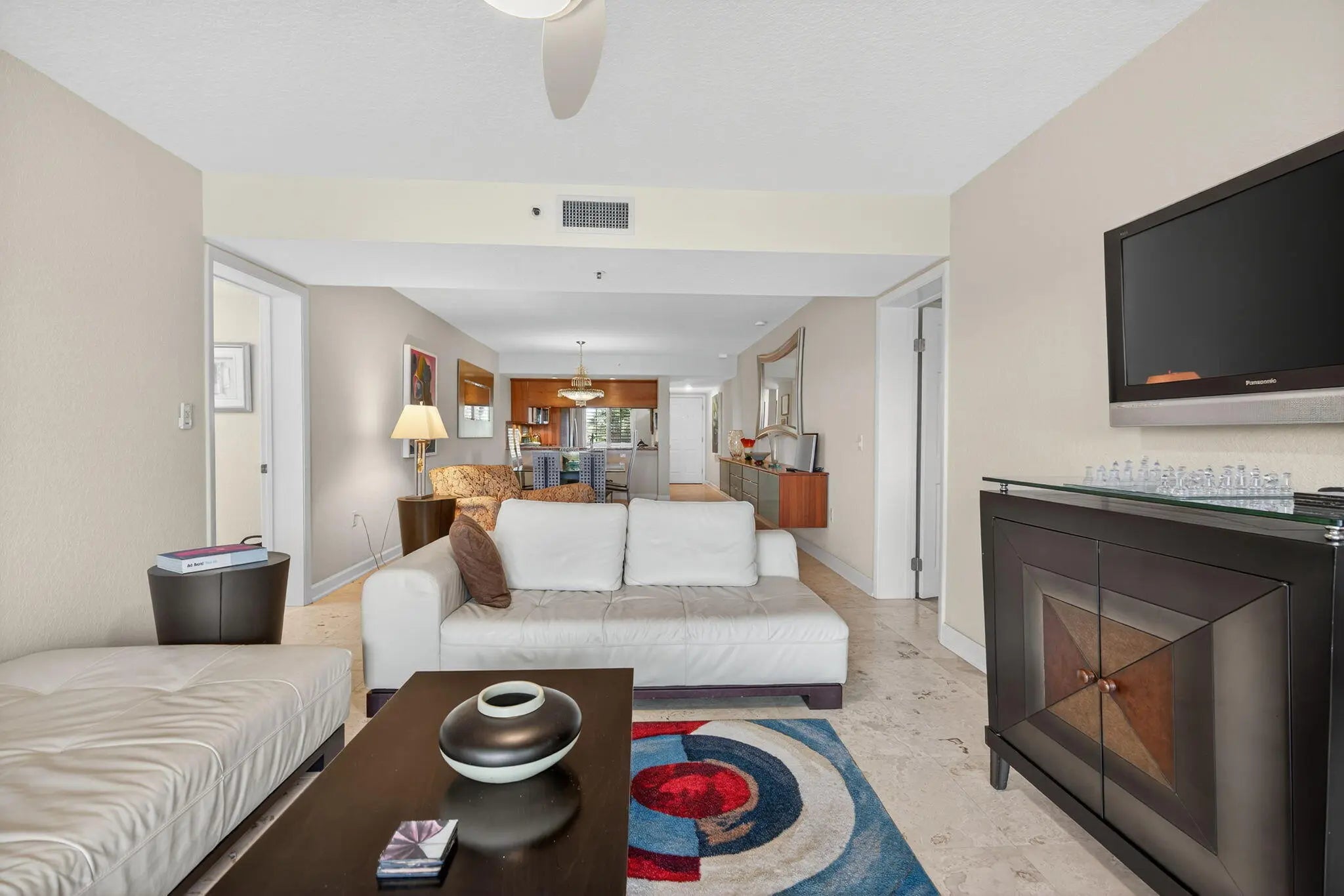 A beautifully updated and decorated 2-bedroom, 2-bath condo plus a flex room located Seaside in desirable Ocean Bluffs North community. With a Brand New HVAC unit, this light-filled residence features elegant filled Travertine marble flooring throughout and a spacious open porch offering tranquil views. Ocean Bluffs North is a gated (non-manned) community where residents enjoy access to a community pool and tennis courts. For beach lovers, a community gate provides access to the beach/ocean. Located in an elevator building for added convenience, this home is perfect for those seeking a relaxed coastal lifestyle. Whether you're looking for a permanent residence or a vacation getaway, this property is a must-see - you won't be disappointed