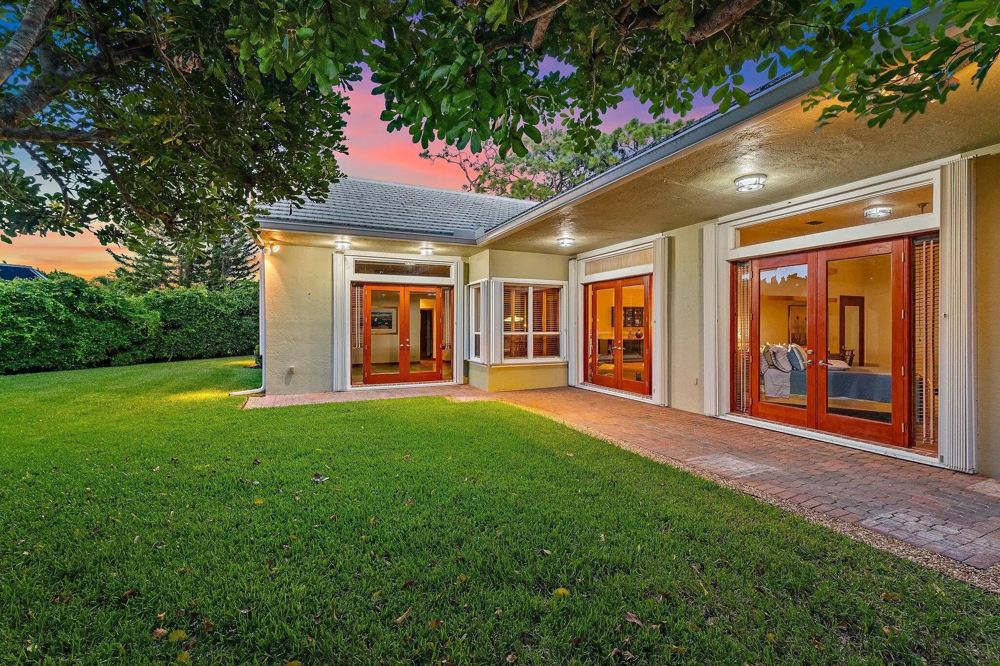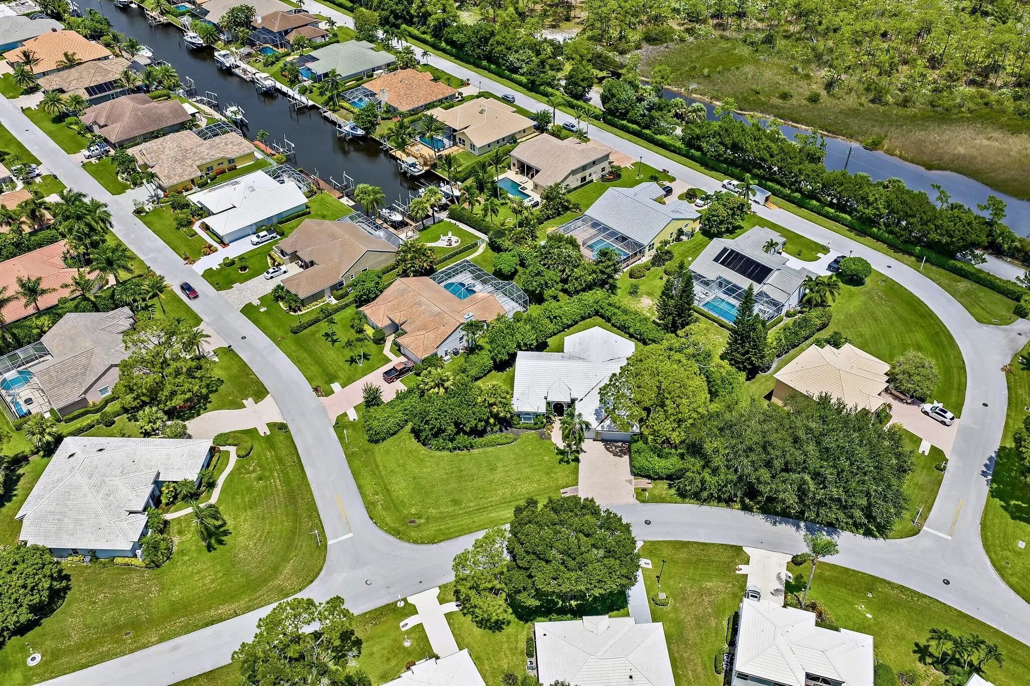 The largest non-waterfront home and lot in all of North Passage is now available, offering an expansive and ultra-private .43 acre corner setting that stands apart in the community. This move in ready residence delivers an exceptional blend of comfort, elegance, and room to grow within one of Tequesta's most desirable 24 hour manned gated neighborhoods. With generous space to design a custom pool and lush tropical landscaping surrounding the property, this rare opportunity invites you to elevate your South Florida lifestyle in a truly special way. Lovingly maintained by the original owner, this four bedroom, three bathroom home with a three car garage is enriched with meaningful upgrades and outstanding care. Recent improvements include 2024 exterior and interior paint, rich wood flooring, beautifully updated bathrooms, a 2023 tile roof, 2023 water heater, 2021 air conditioning system, 2024 ductwork, 2024 garage door and side door, and 2010 accordion hurricane shutters for peace of mind. The thoughtful three way split floor plan provides exceptional privacy while maintaining an open and inviting flow for everyday living and entertaining. The open concept kitchen overlooks the family room and breakfast nook and features wood cabinetry, marble countertops, stainless steel appliances, pantry storage, and a snack bar that is ideal for casual dining. Custom built in bookcases and shelving elevate the family room and provide warmth and character. Volume ceilings rise to eleven feet in the main living areas and nine feet in the bedrooms, laundry room, and garage creating an airy and spacious feel throughout. The primary suite is a true sanctuary designed for relaxation with two walk in closets enhanced by custom built in dressers and a luxurious bathroom offering dual vanities, soaking tub, separate shower, and a private water closet with bidet. A cabana bath offers excellent convenience for future outdoor living enhancements. Surrounding the home, beautifully designed paved walkways, patios, and a decorative driveway add to the property's appeal. The private well fed sprinkler system provides cost effective and eco friendly irrigation. Located in Martin County, residents enjoy lower property taxes along with exceptional access to the best of Tequesta living. Optional golf membership is available at the private Riverbend Country Club, placing world class golf only moments from home. The North Passage lifestyle also includes a clubhouse, pool, fitness center, tennis and pickleball courts, playground, library, and more. For those seeking space, privacy, serenity, and true South Florida luxury, this residence checks every box and stands out as a rare opportunity in North Passage.