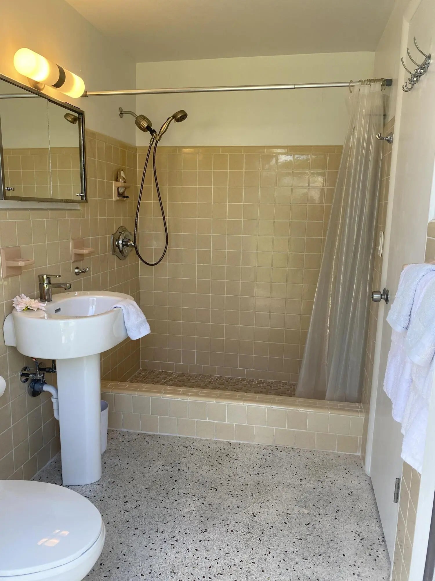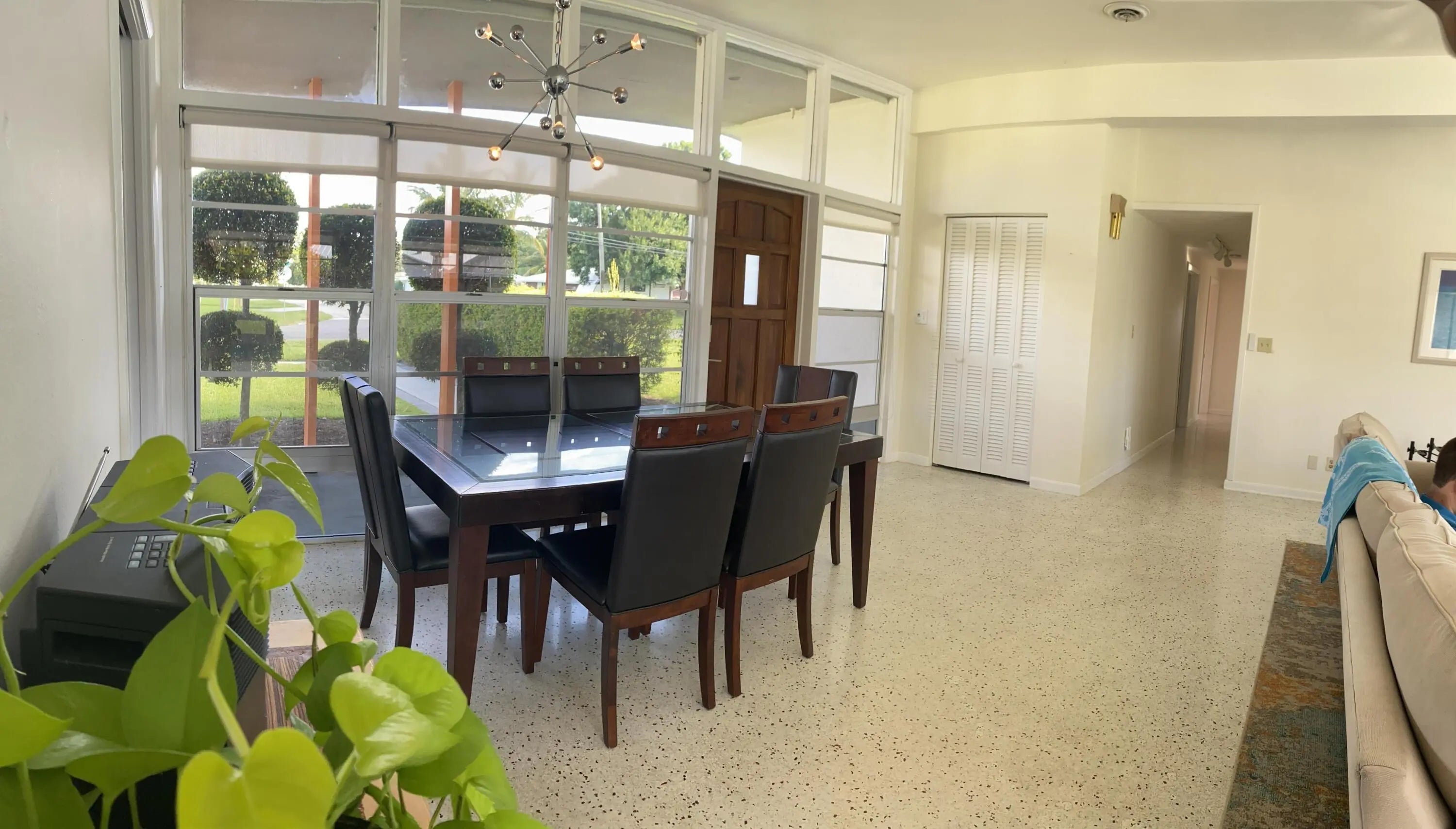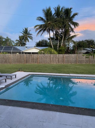 Mid-Century CBS modern home in desirable Vero Shores neighborhood with 21st-century enhancements back on the market. No HOA, no restrictions. Full hurricane protection includes shutters and custom hurricane double car garage doors.15X30 heated saltwater pool (2020heat pump, 2018energy-efficient V/S pool pump, 2024 saltwater system) Screened porch with ceiling fan overlooking large private fenced backyard. Terrazzo floors throughout, renovated kitchen: gas range, SS appliances, custom cabinets, r/o filtration, pantry, laundry room. Features high ceilings-bright airy interiors. Safe and friendly neighborhood, only five miles from the beach.(Electric updated:200amps/2020, insulated 2-car garage, 2018 Main H20 line repiped w/new shut-off valve) Located close to shopping, pharmacy, gas, and groceries. MOVE-IN ready! Rmsizeapprox.