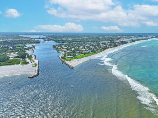 Jupiter is 12 miles north of Palm Beach Shores via I-95 and Rte. 706. Jupiter is one of the few little towns in the region not fronted by an island. Beaches here are part of the mainland, and Route A1A runs for almost 4 miles along the beachfront dunes and beautiful estates.