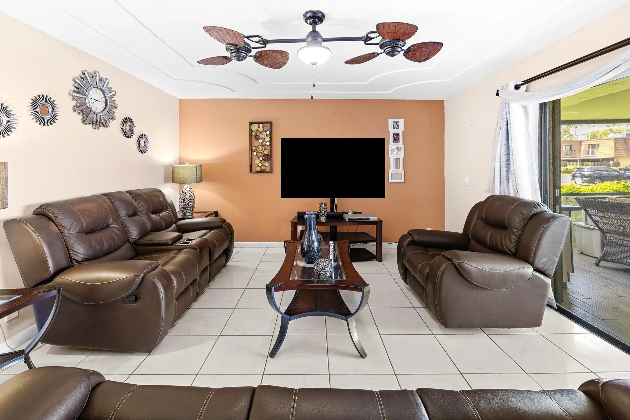 Welcome home to this beautifully designed 3-bedroom, 2.5-bath builder's model townhouse in the desirable Villages of Turnberry community. The spacious open floor plan features tile flooring throughout the main living areas, with one bedroom and a guest half bath conveniently located on the first floor. Upstairs, you'll find two generous primary suites, each with its own private bath and walk-in closet. Additional highlights include a full-size washer and dryer, extra storage, a private deck, and a screened patio perfect for relaxing outdoors. Accordion shutters provide peace of mind, while the community pool is just steps from your back door. The Villages of Turnberry is a well-maintained community in Lake Worth, FL, offering a serene neighborhood feel with low HOA fees. Ideally located just minutes from the Florida Turnpike, residents enjoy easy access to shopping, dining, parks, golf courses, and the area's beautiful beaches.