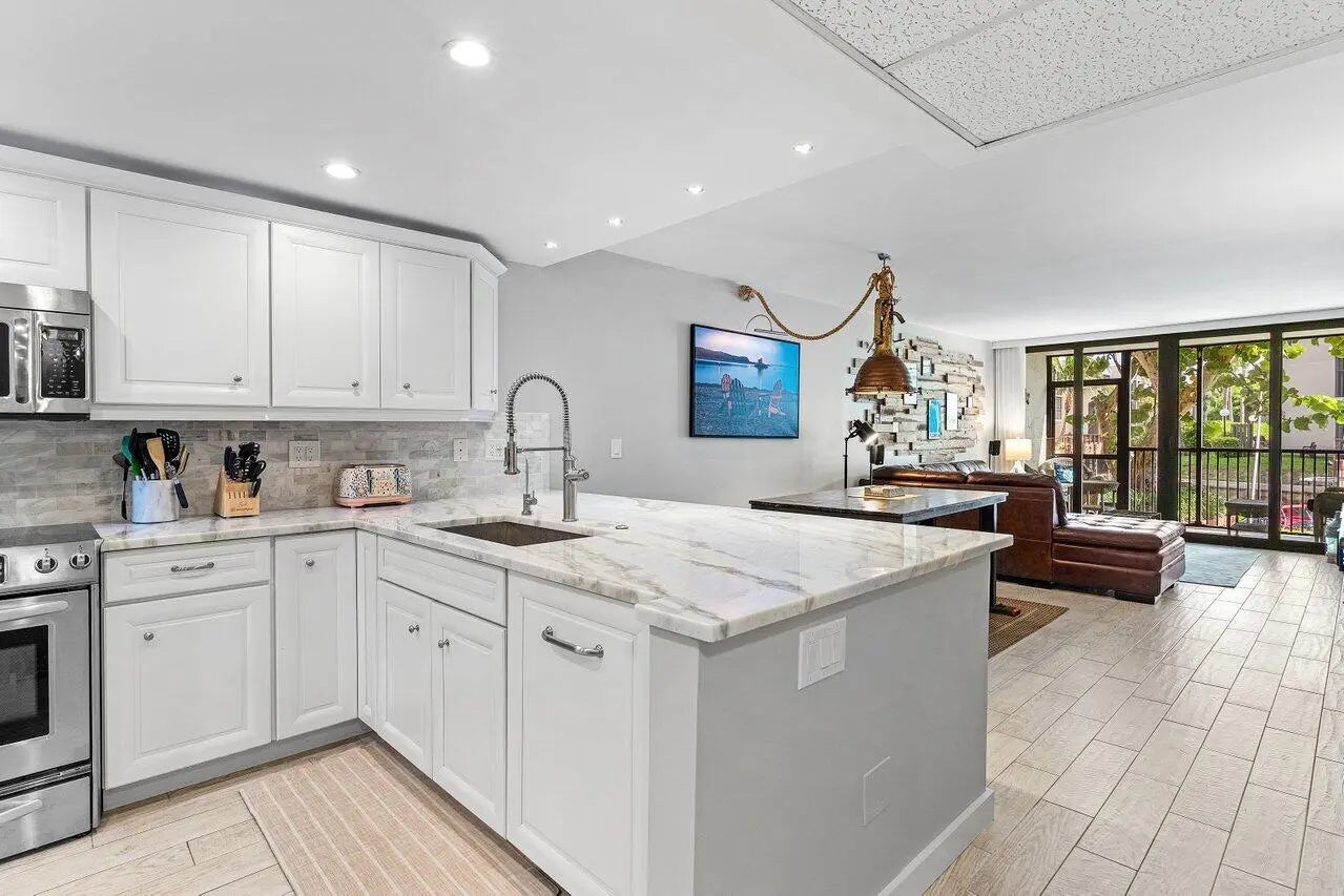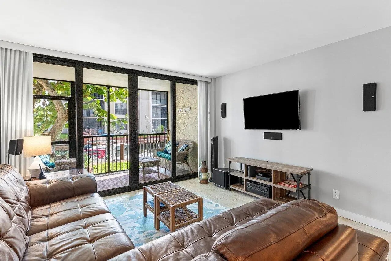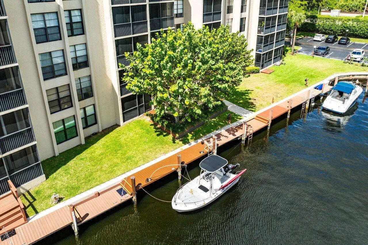 Experience luxury waterfront living at Boca Bayou, a premier gated community. Set on 46 acres of beautifully landscaped grounds, Boca Bayou offers a true resort experience with 5 heated pools, tennis, pickleball, fitness centers, saunas, bocce, shuffleboard, billiards, grilling stations, a new clubhouse underway, and even car wash stations, all secured by 24-hour manned gates. Boaters enjoy private canals with direct ocean access, making this community a true paradise for waterfront living.This completely renovated first-floor unit combines modern luxury with the ease of direct water access. From your private screened-in patio, enjoy tranquil canal views framed by lush greenery and a private 26-ft dock, ready for your ocean adventures. The newly renovated dock features durable composite decking, installed just one year ago. It also includes mooring whips to help protect your boat. Inside, enjoy a sleek open-concept design featuring high-end kitchen with integrated appliances, custom cabinetry, and ample counter space with seating for guests. The spacious living and dining areas flow seamlessly to the patio, creating the perfect indoor-outdoor connection. The split bedroom floor plan ensures privacy, with the primary suite offering dual vanities, abundant storage, and a spa-style shower with body sprays. The versatile second bedroom includes a custom Murphy bed, making it ideal as a guest suite or home office. Built-in closet systems and brand-new impact windows and doors add both style and peace of mind. With assigned parking directly in front of the unit and plenty of guest parking, convenience matches comfort. All assessments are paid, 30-year concrete recertification complete, and new clubhouse renovations underway. Monthly fees cover building insurance, water, cable with HBO, and reserves. Just minutes from Boca Raton's finest beaches, Mizner Park, Royal Palm Plaza, and the vibrant downtown scene, this property captures the essence of South Florida living. Whether boating, entertaining, or simply unwinding in serene surroundings, this home is an exclusive waterfront sanctuary that won't last.