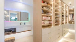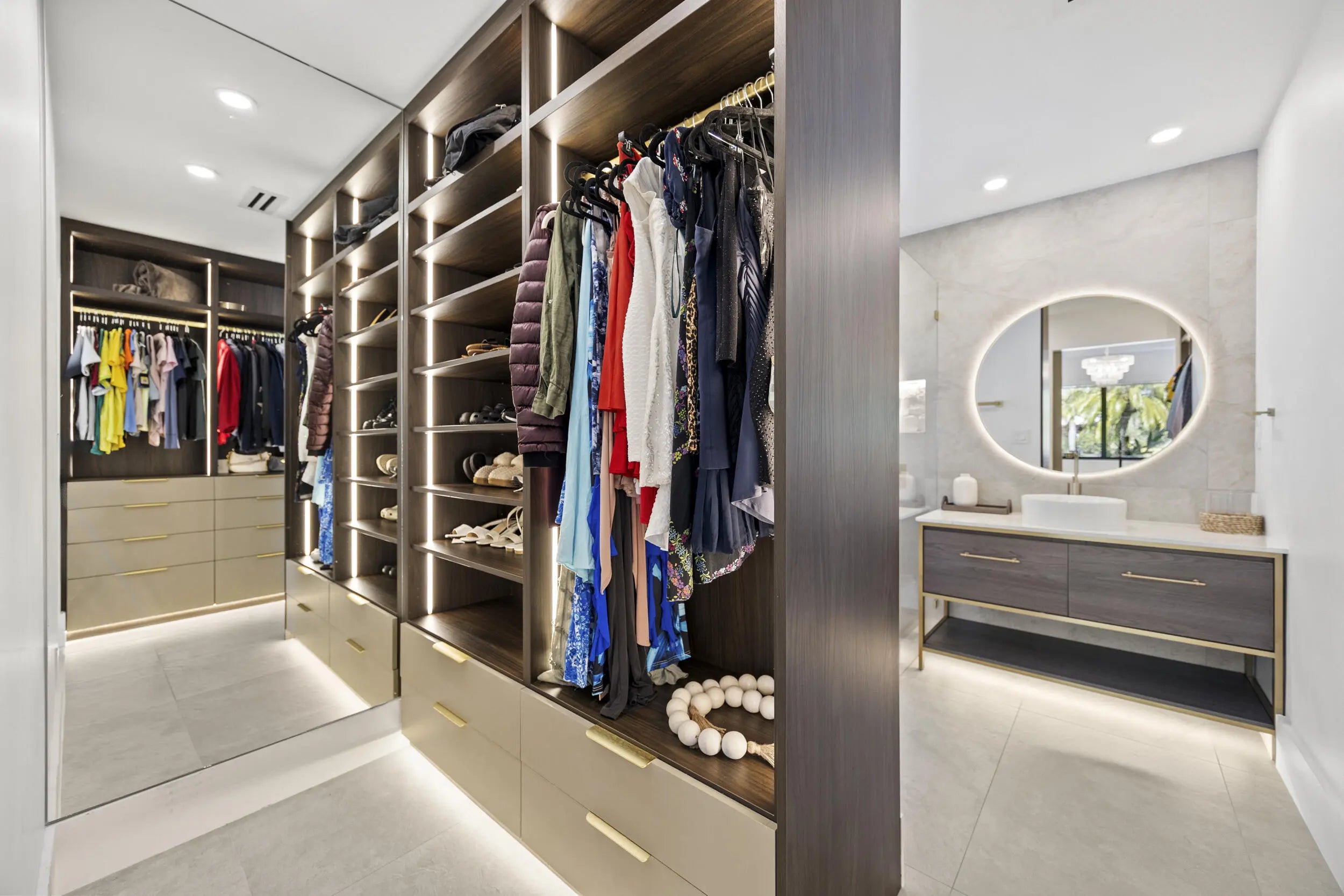 Cathedral Ceiling(s), Vaulted Ceiling(s), Walk-In Closet(s), Bedroom Layout - Split, Closet Cabinetry, Custom Mirrors, Cabana Bath