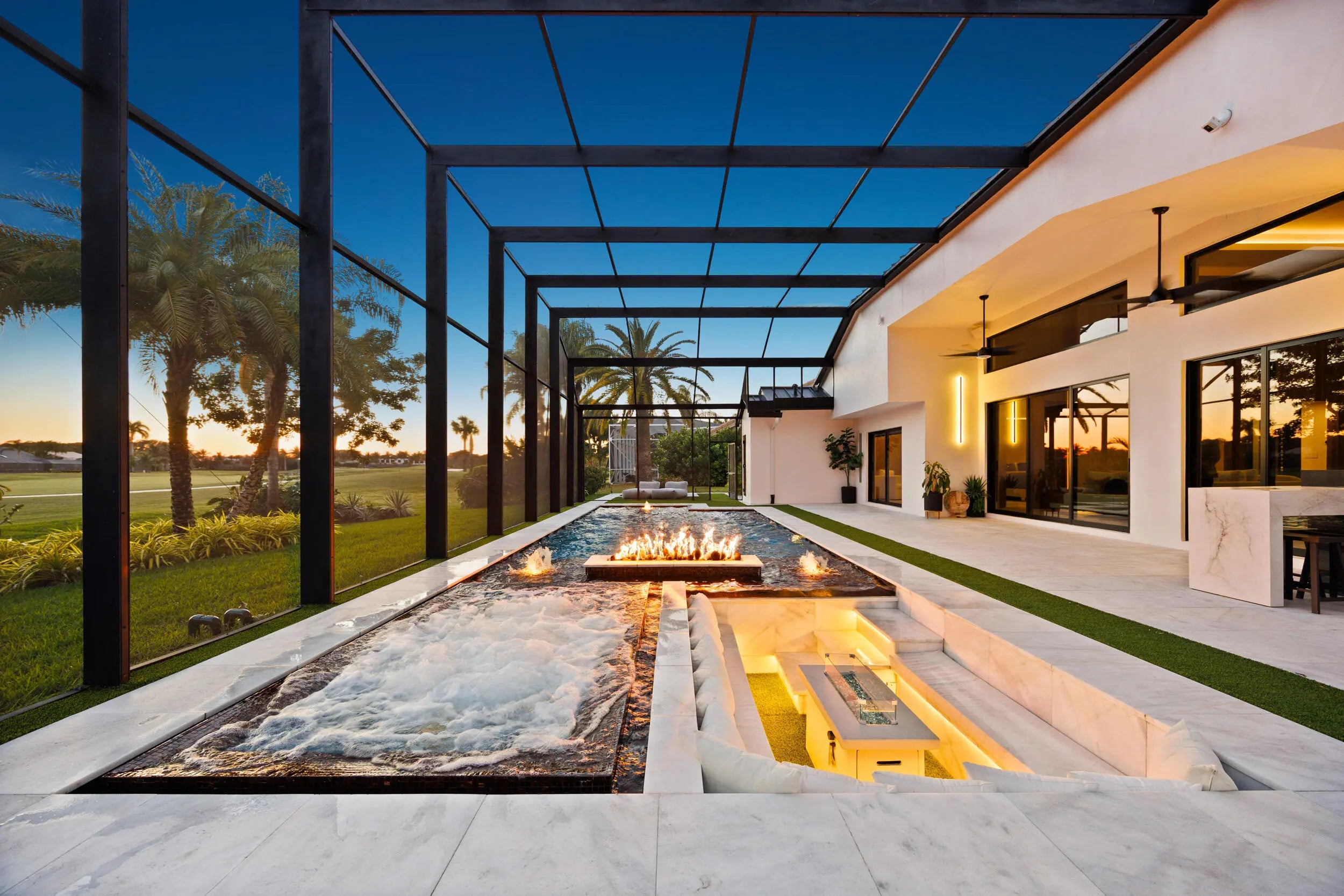 From the moment you arrive, this fully renovated home captivates with a floating water walkway and front glass pivot door. Inside, soaring 19-foot ceilings, open-concept living, and impeccable high-end finishes set the stage for sophisticated living. The residence features 4 en-suite bedrooms with custom closets, a spacious primary bedroom with wet-room and dream closet, a chef's kitchen with Wolf appliances, bespoke cabinetry, and quartzite island, a modern Taj Mahal stone fireplace, as well as a 300-bottle wine cellar and man cave garage that elevate lifestyle and entertainment. Step outside to your private resort oasis with a saltwater pool, sunken lounge, in-pool fire pit, swim jets,10-person spa, and cabana steam bath, all framed by lush tropical landscaping and golf course views. This stunning Fully Renovated Home with No Detail Overlooked can be yours. Exterior & Structural "' 'New Standing Seam Metal Roof - Installed 2024 (50+ year life expectancy, energy-efficient, hurricane-rated) "' 'Complete Foam Insulation System - Installed 2024 for maximum energy efficiency "' 'Smooth Stucco Finish - Entire exterior refinished 2024 "' 'Freshly Painted Interior & Exterior - 2024 "' 'Hurricane Impact Protection - Installed 2024 "' 'High-performance impact windows & doors (energy-efficient & noise reducing) "' 'Insulated hurricane-rated garage doors (2-car + golf cart garage) "' 'Expanded Circular Driveway - New paver driveway & walkway with modern hardscaping (2024) Mechanical, Electrical & Plumbing "' 'Dual High-Efficiency HVAC Systems - 2 new units with condensers (2024) "' 'Complete HVAC Ductwork Replacement - Optimized for air quality and comfort (2024) "' 'Smart Control Thermostats - Multi-zone management (2024) "' 'HVAC UV Light Protection "' 'Upgraded 200-Amp Electrical Panel - Installed 2024 "' 'Whole-House Surge & Lightning Protection System - 2024 "' 'Smart Hybrid Electric Water Heater - Energy-efficient with intelligent controls (2024) "' 'Full Repiping Throughout Entire House - Installed 2024 (all new plumbing supply lines) "' '500-Gallon Underground Propane Tank - Installed 2024 (dedicated to range & generator-ready) "' 'Tesla EV Charger - Installed 2025 "' 'Dedicated Irrigation Well - Installed 2025 with rust-prevention system "' 'Smart Irrigation System - Wi-Fi controlled (2025) "' 'Smart Smoke & Carbon Monoxide Detectors - Throughout Lighting & Home Automation "' 'Fully Integrated Smart Home System - Lighting, security, sound, and climate control "' 'Smart Switches & Dimmers - Throughout "' 'LED Recessed High-Hat Lighting - Energy-efficient & modern design "' 'Motorized Window Treatments - Programmable for privacy & efficiency "' 'Smart Sonos Whole-House Audio System - Interior & exterior zones Pool & Outdoor Living "' 'Modern Pool Resurfacing & Custom Tile Design - 2024 "' 'Smart Automated Pool System - Jets, bubbles, LED lighting, automated controls (2024) "' 'Electric Pool Heater & Saltwater System - 2024 "' 'Champagne Spa / Hot Tub - Built-in with dual temperature zones, foot massage pump, and targeted hydrotherapy blowers "' 'Integrated Sunken Lounge - With built-in gas fireplace & modern seating "' '20' High Screen Enclosure - With UV protection (new) "' 'Modern Cabana Bathroom & Steam Room Shower "' 'Outdoor Wet Bar - Built-in with modern finishes "' 'Professionally Designed Landscaping - With LED low-voltage lighting "' 'Ring Security System - Exterior cameras & smart doorbell Interior Features "' 'Modern Custom Walk-In Wine Cellar - Insulated glass, floating racks, capacity ~300 bottles "' 'Custom European-Style MDF Panels & Hidden Doors - For a sleek, modern aesthetic "' 'Custom Kitchen Cabinetry & Bar Pantry - With integrated panel-ready appliances "' 'Luxury Appliance Package: Wolf 60" Professional Fuel Range, Wolf 24" Built-In Microwave Drawer, Signature 60" Refrigerator & Freezer (60" built-in), Asko Dishwasher, LG Tower Washer & Dryer "' 'Modern Custom Closets - Designer MDF-built with integrated lighting "' 'Porcelain Tile Flooring - Oversized 24" x 48" slabs throughout "' 'Smart Toilets - Multiple units with bidet features & ambient lighting "' 'Designer Bathrooms - LED backlit mirrors, premium fixtures, and modern spa-style finishes "' 'Smart Frame TVs - Flush-mounted, integrated entertainment "' 'Interior Fireplaces - Contemporary electric fireplaces with LED accent lighting A Private Club Lifestyle- Golf Paradise!!! Boca Woods Country Club is nestled in the heart of Boca Raton and just minutes from two miles of beautiful white sandy Boca Raton Beaches. Located in Palm Beach County, Boca Raton offers residents an assortment of casual and fine dining, world-class shopping and entertainment venues. Boca Woods Country Club welcomes members to Palm Beach living, in an upscale community, to enjoy an active lifestyle that is set in a relaxed and comfortable golf and country club private residential community. It's a family friendly community where neighbors become friends and friends are like family. Members embrace a complete lifestyle with an array of resort-style amenities including 36-holes of spectacular golf, 7 Har Tru tennis courts, pickleball, modern Fitness Center, card rooms and an elegant-contemporary clubhouse for dining and socializing. Lifelong friendships are made while enjoying a life well lived. Championship Golf in Boca Raton Boca Woods Country Club is home to two of the best golf courses in Southeast coast of Florida. Boca Woods is a golfer's paradise with two of the lowest density courses in the Boca Raton area. Golfers have five sets of tees to choose from, plus recently installed family tees. At Boca Woods, you are sure to enjoy easy golf access to tee times and frequent games. New and seasoned golfers benefit from Boca Woods resources. Newly renovated practice facilities include chipping, putting and driving range facilities, and a newly installed range hood providing plenty of space for golfers to practice in the shade. The Woods Course, d