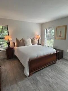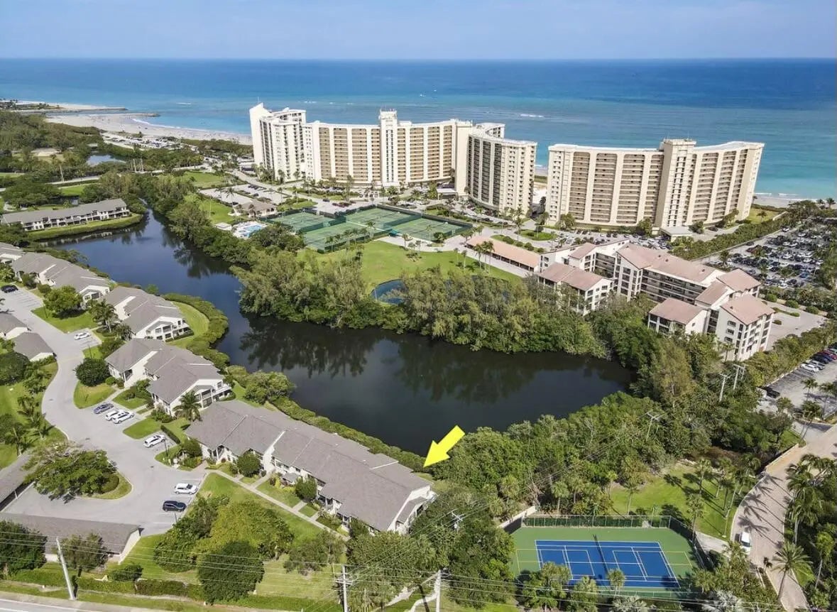 Available for 2026 season $7,500/mo January 1, 2026-April 30, 2026 in Jupiter Dunes. Presenting an exquisite first-floor end unit at Jupiter Dunes, fully renovated to meet modern standards and aesthetics. This home features a wide-open and spacious floor plan, highlighted by a wrap-around patio that offers stunning water views, allowing you to immerse yourself in the true beach lifestyle. Just a short walk away, you can enjoy the sandy shores of the beach and the scenic Inlet Park, perfect for outdoor adventures and relaxation. The property boasts an expansive private patio, providing ample space for entertaining guests or enjoying peaceful moments in the sun. Inside, the large living area is designed with a thoughtful 2-bedroom, 2-bathroom split floor plan, ensuring both comfort and privacy. Additionally, a screened-in covered patio extends from the kitchenette and dining area, creating an inviting space for meals and gatherings while enjoying the gentle ocean breeze. Convenience is paramount, with an in-unit washer and dryer for effortless laundry days. The community enhances your lifestyle with a welcoming clubhouse, 2 refreshing pools, and a host of other amenities to enjoy. Located in close proximity to the Maltz Theatre, Dubois Park, a variety of restaurants, and much more, this unit offers not just a home, but a vibrant lifestyle filled with entertainment and leisure. Experience the perfect blend of luxury, comfort, and beachside living in this remarkable property.
