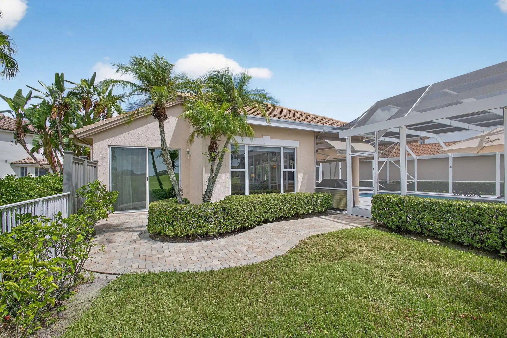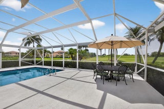 Don't miss this beautifully appointed, clean, & bright home located in the desirable gated community of Augusta Pointe in PGA National. Overlooking the famed Champion Course where the Cognizant Classic is played, you can watch players walk from the 17th green to the 18th tee right from your patio. The property features a large heated pool & a spacious screened-in patio with oversized awnings for shade—ideal for entertaining or relaxing, Impact Windows & Doors, & a full house gas generator. Inside, the home is tastefully furnished, comfortable, and move-in ready, offering everything needed to enjoy Florida's warm winter weather & beautiful sunsets. Augusta Pointe combines a prime, location with the luxury lifestyle of PGA National. RENTED THROUGH MARCH 31 2026, AVAILABLE MARCH 2027